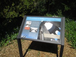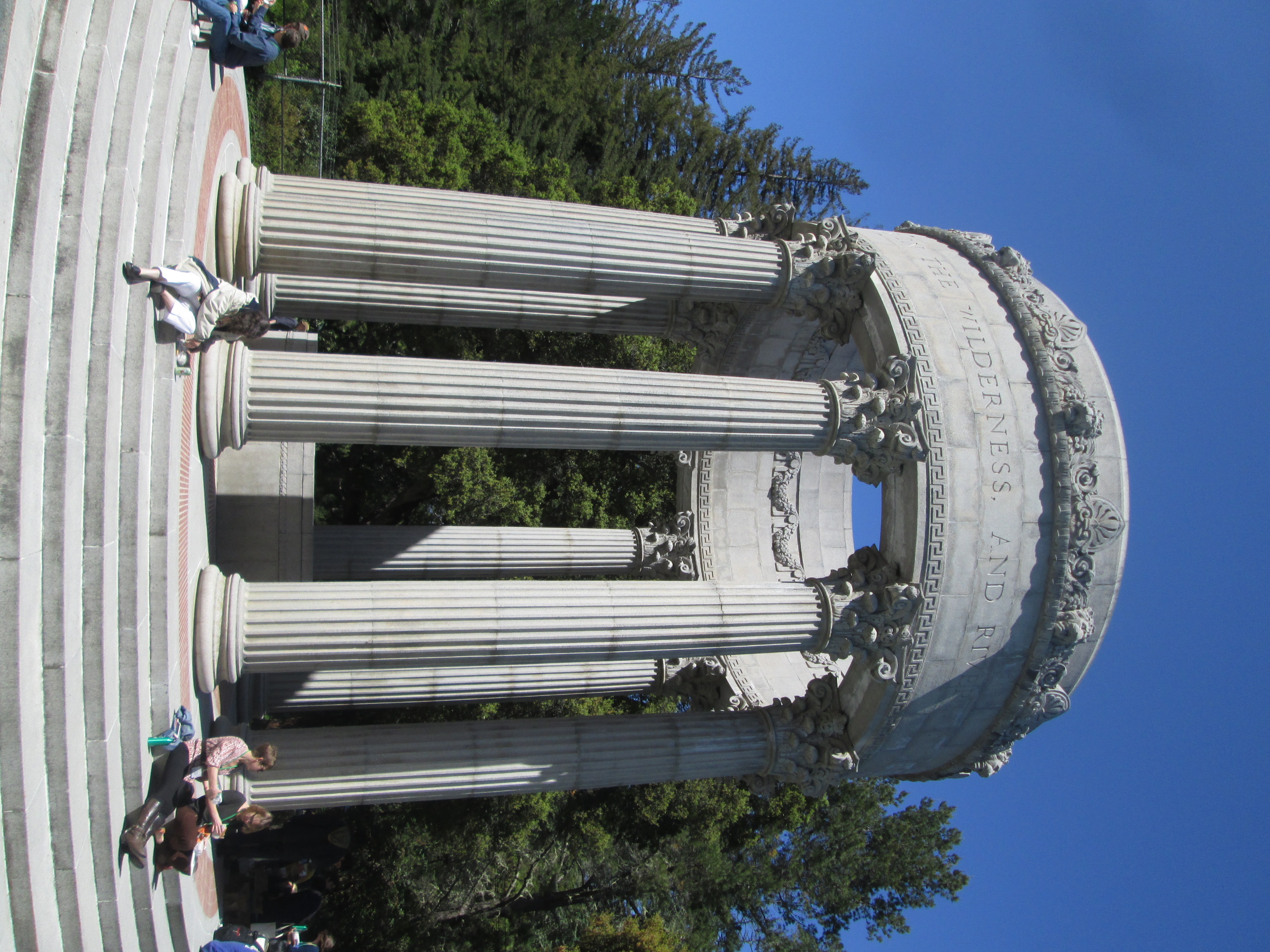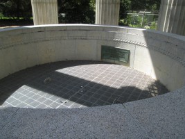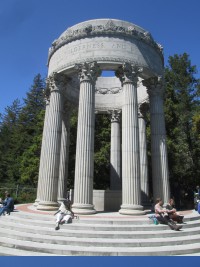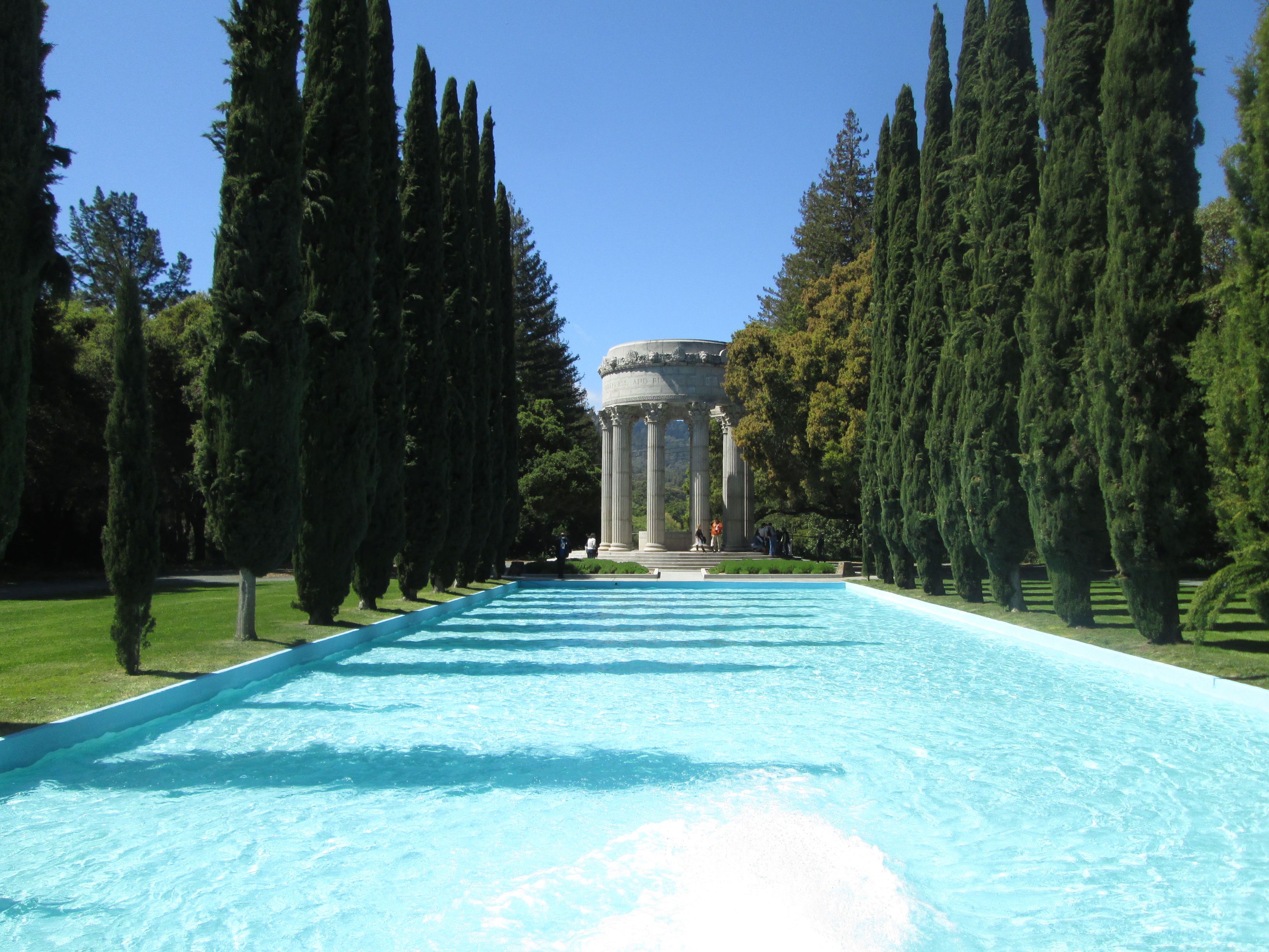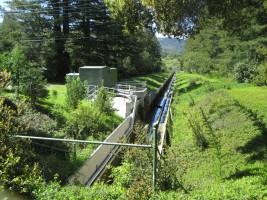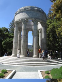 The Pulgas Water Temple was built by the San Francisco Water Department at the terminus of the Hetch Hetchy Acqueduct. Water originally flowed over a waterfall under the temple into a canal that flowed west into the Upper Crystal Springs Reservoir, but the water was diverted in 2004 to a treatment plant.