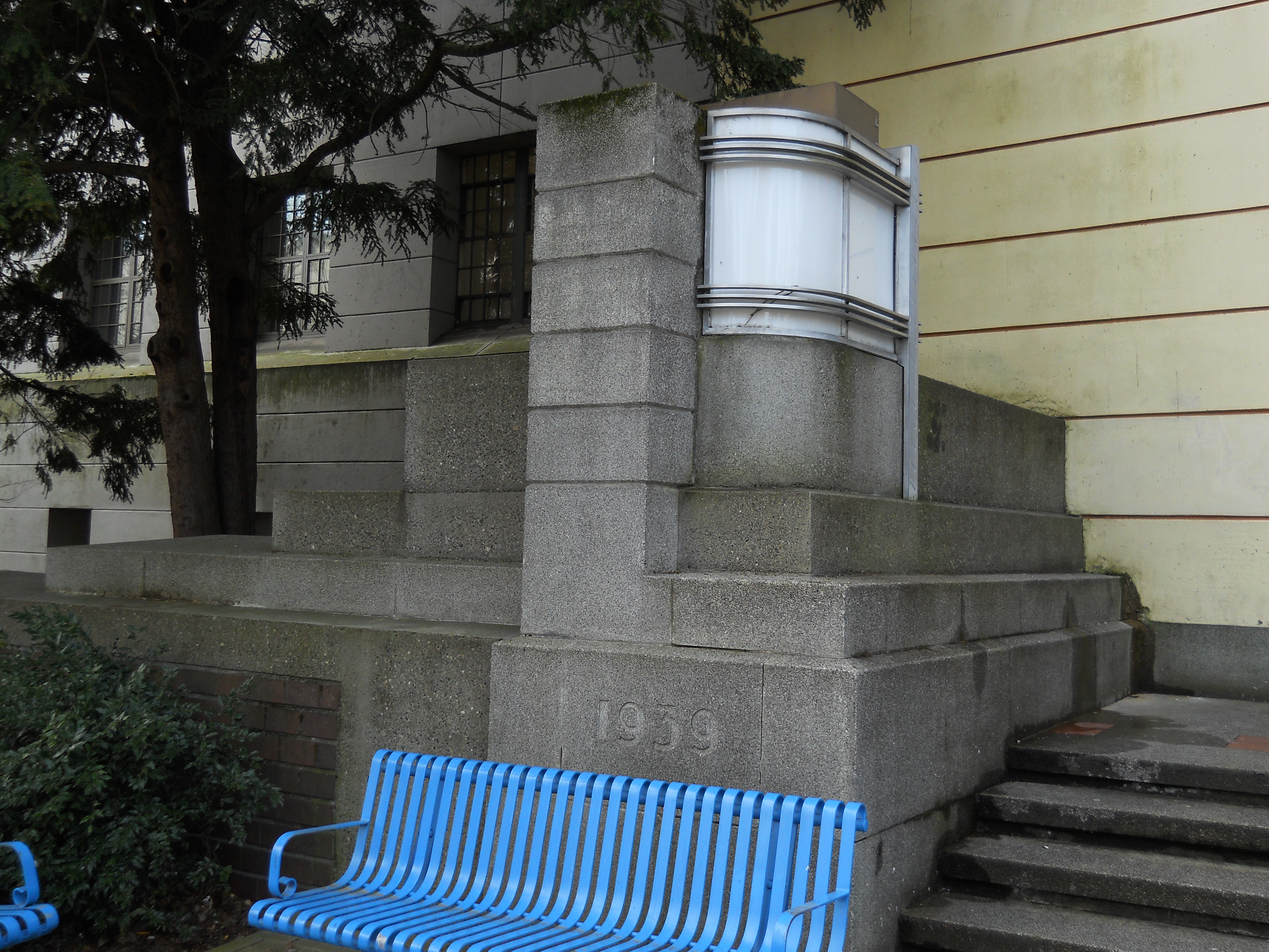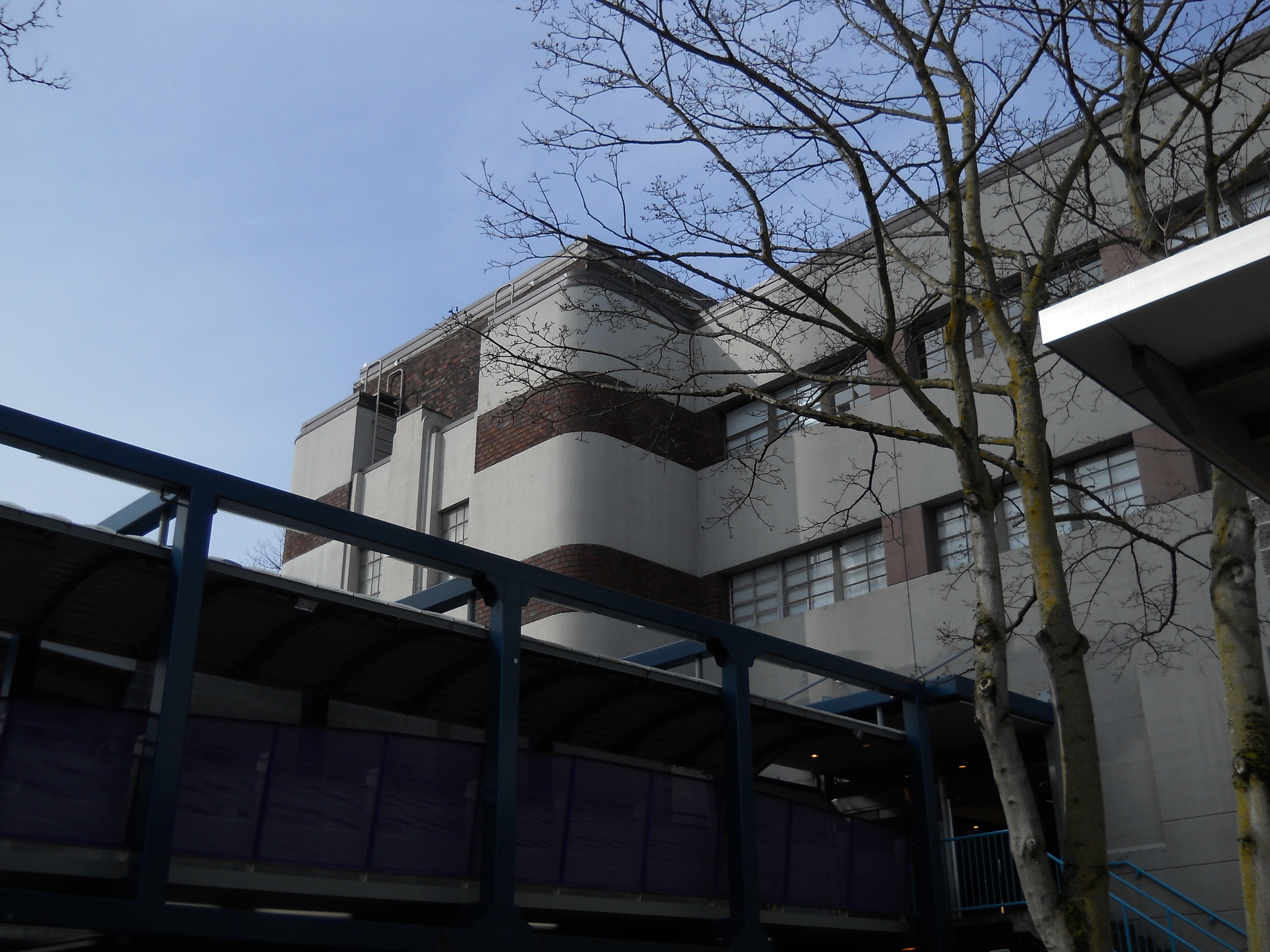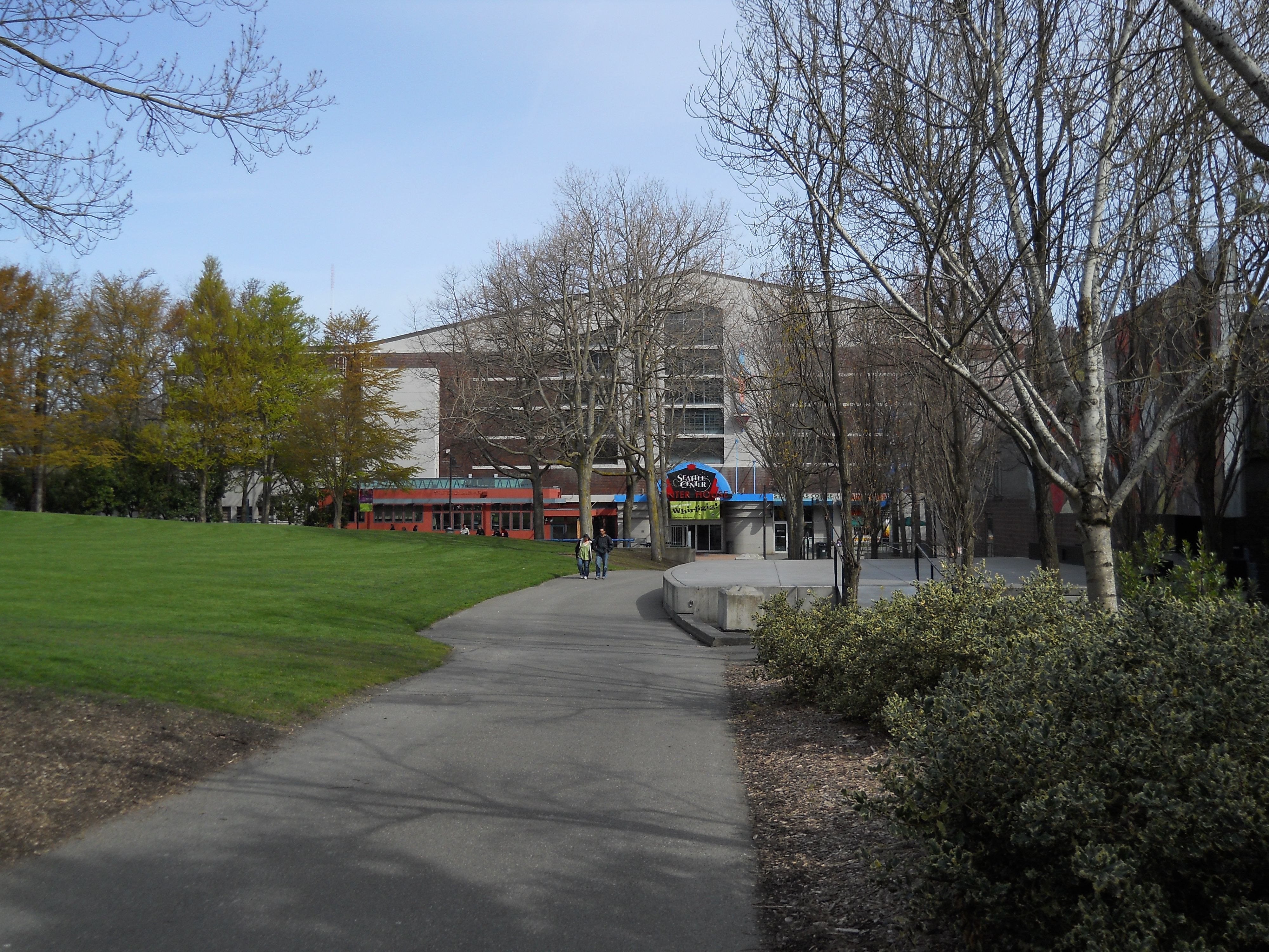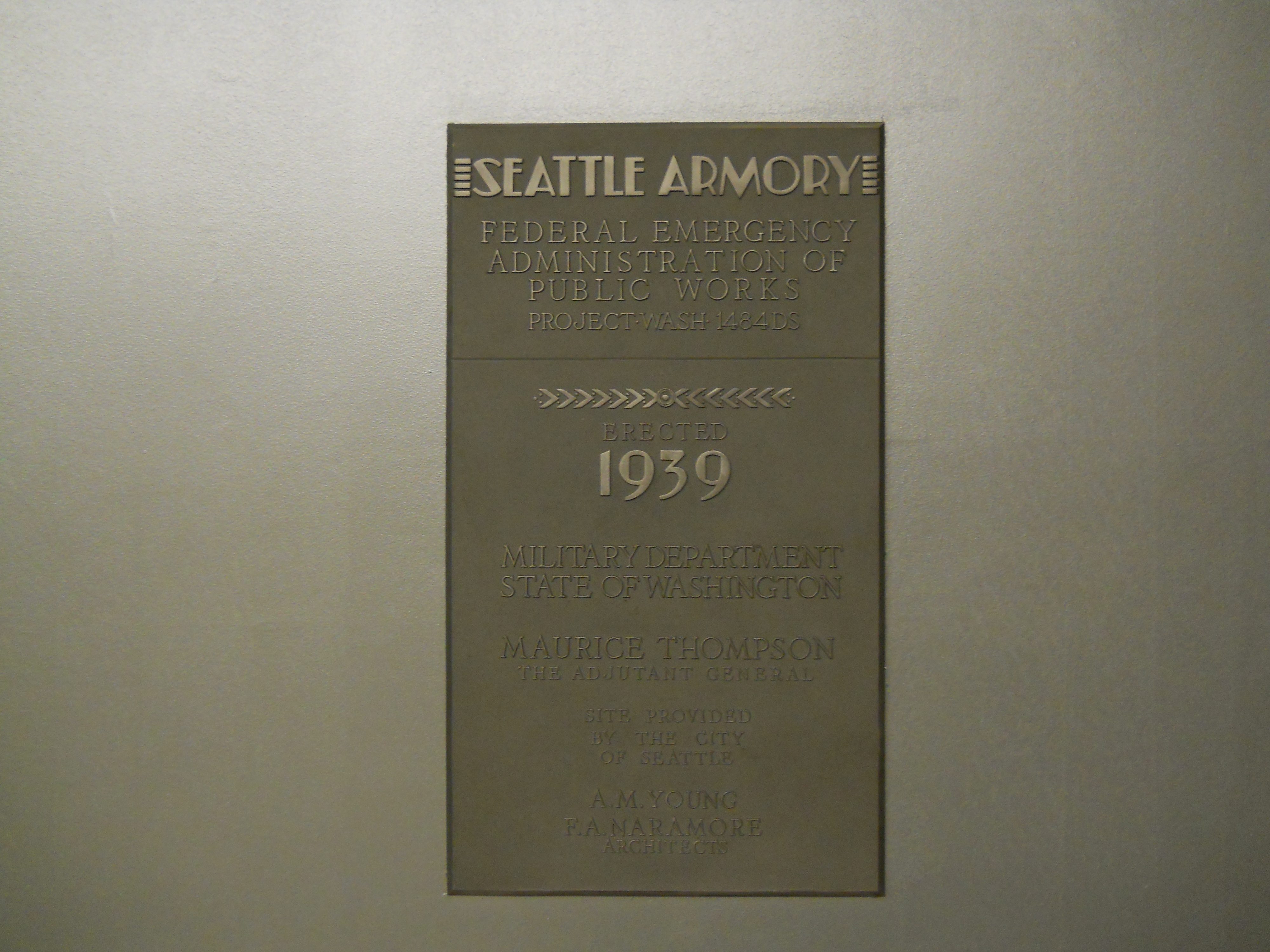 This Art Moderne structure was built by the New-Deal-era Public Works Administration as a home for the 146th Field Artillery. The building was remodeled during WW II for housing and training. During the 1962 World's Fair, the building was used as the Food Circus, and further renovated in the early 1970s as Center House.