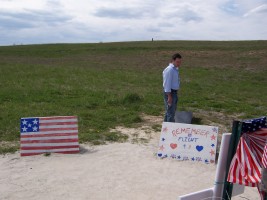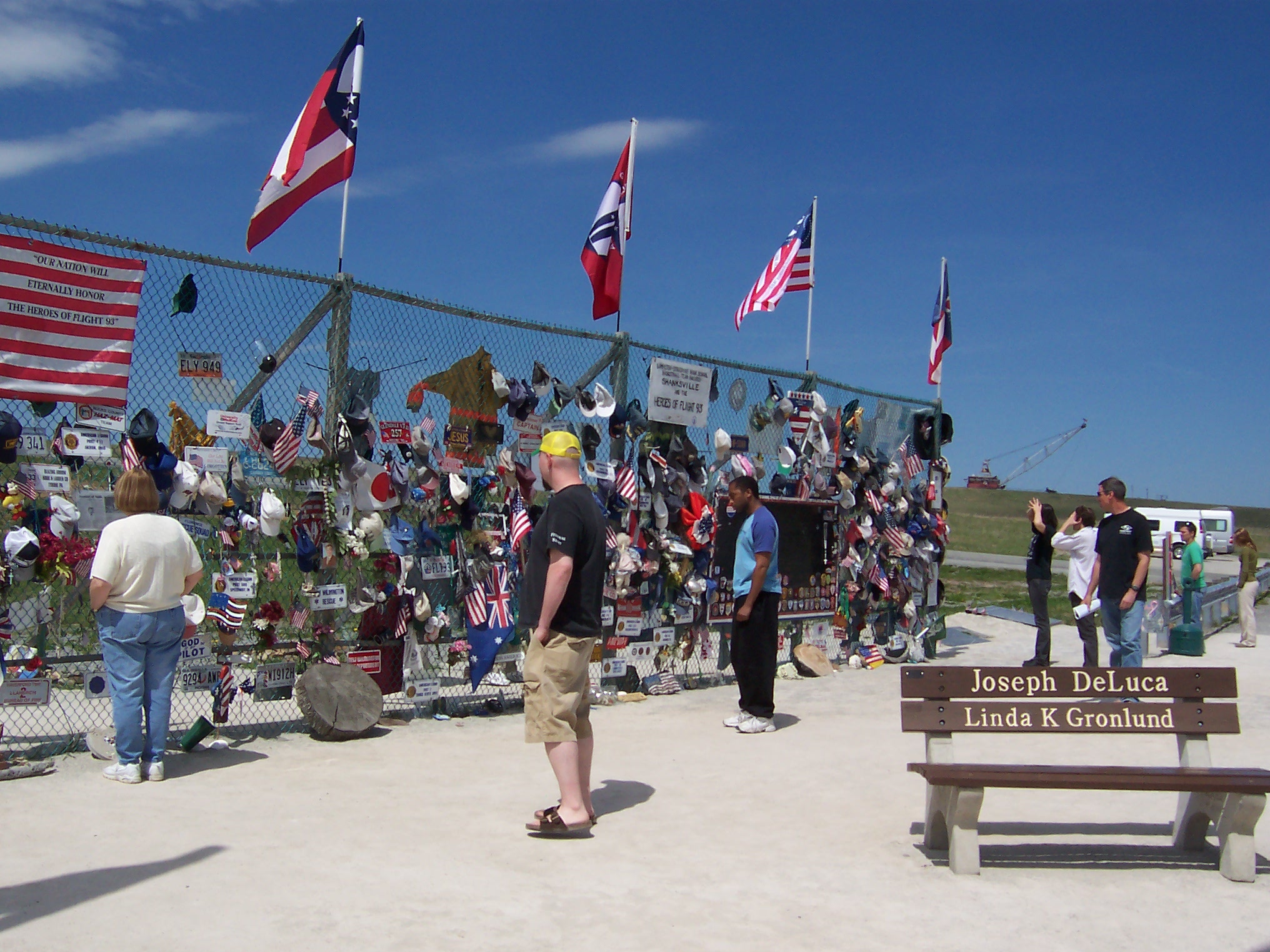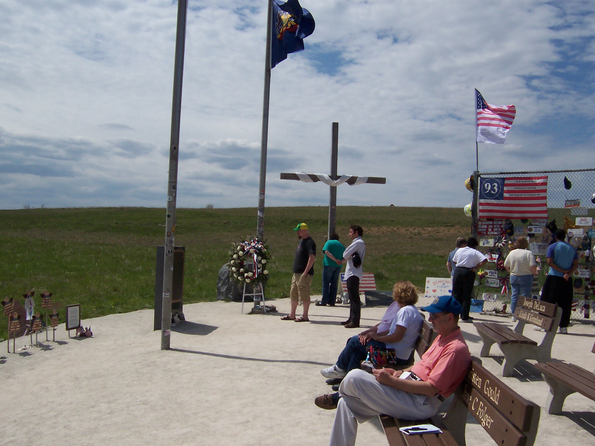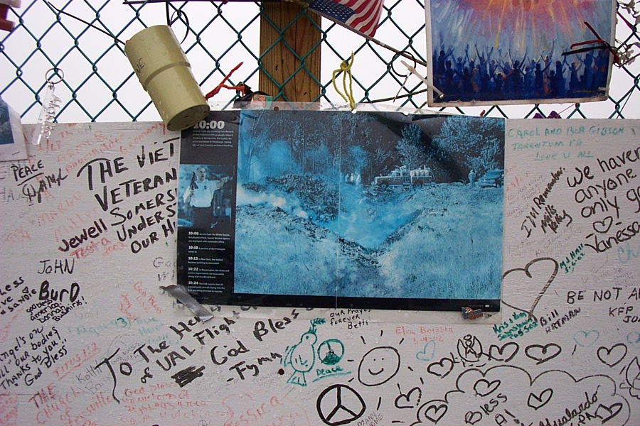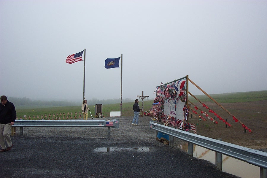 A makeshift memorial was built a few hundred feet from the filled-in crash crater with a chain-link fence for flowers and commemorative items. On September 24, 2002, the Flight 93 National Memorial Act (P.L. 107-226) was passed by Congress and signed into law, creating an official memorial at this site.
