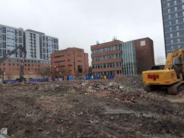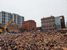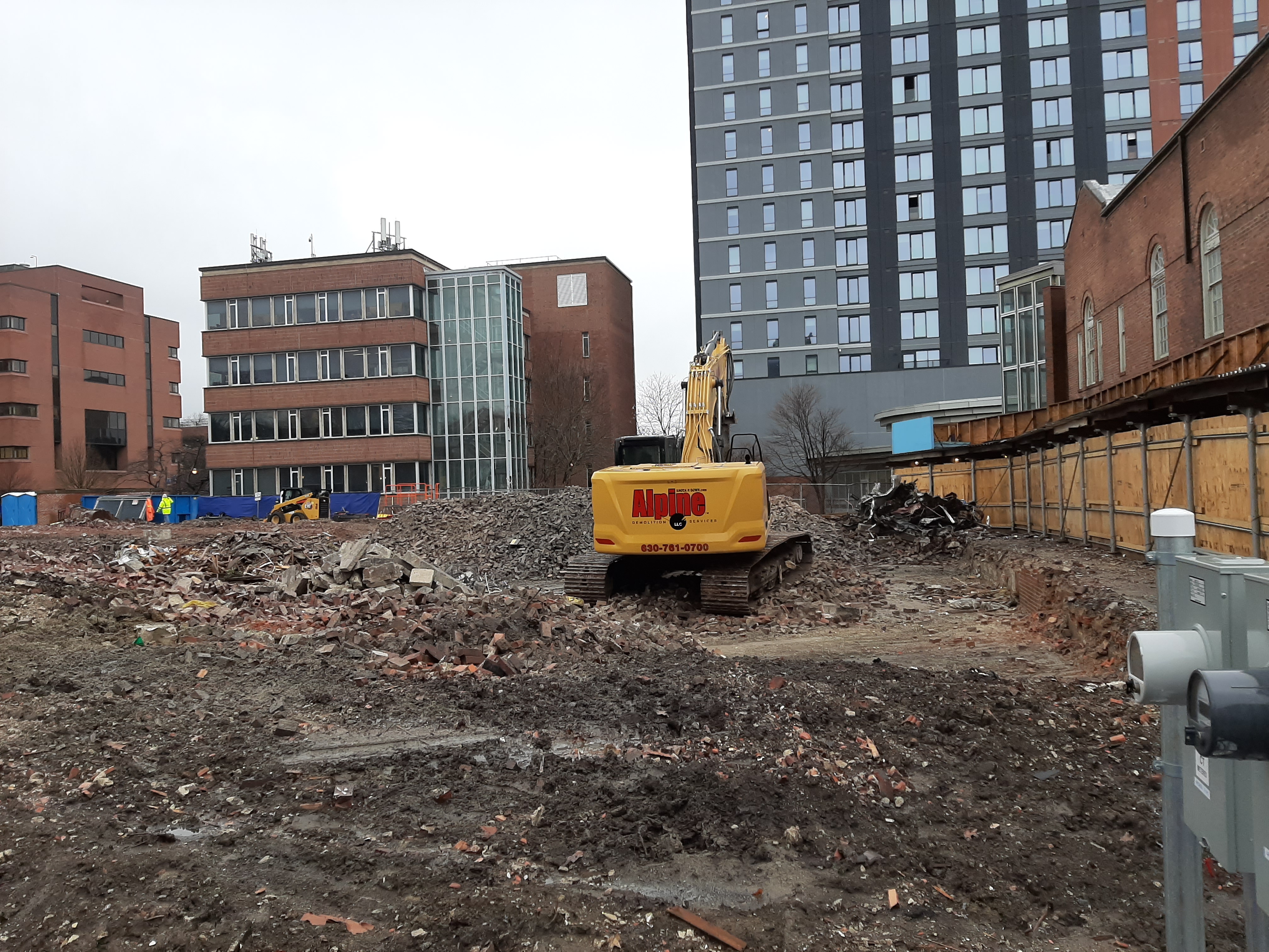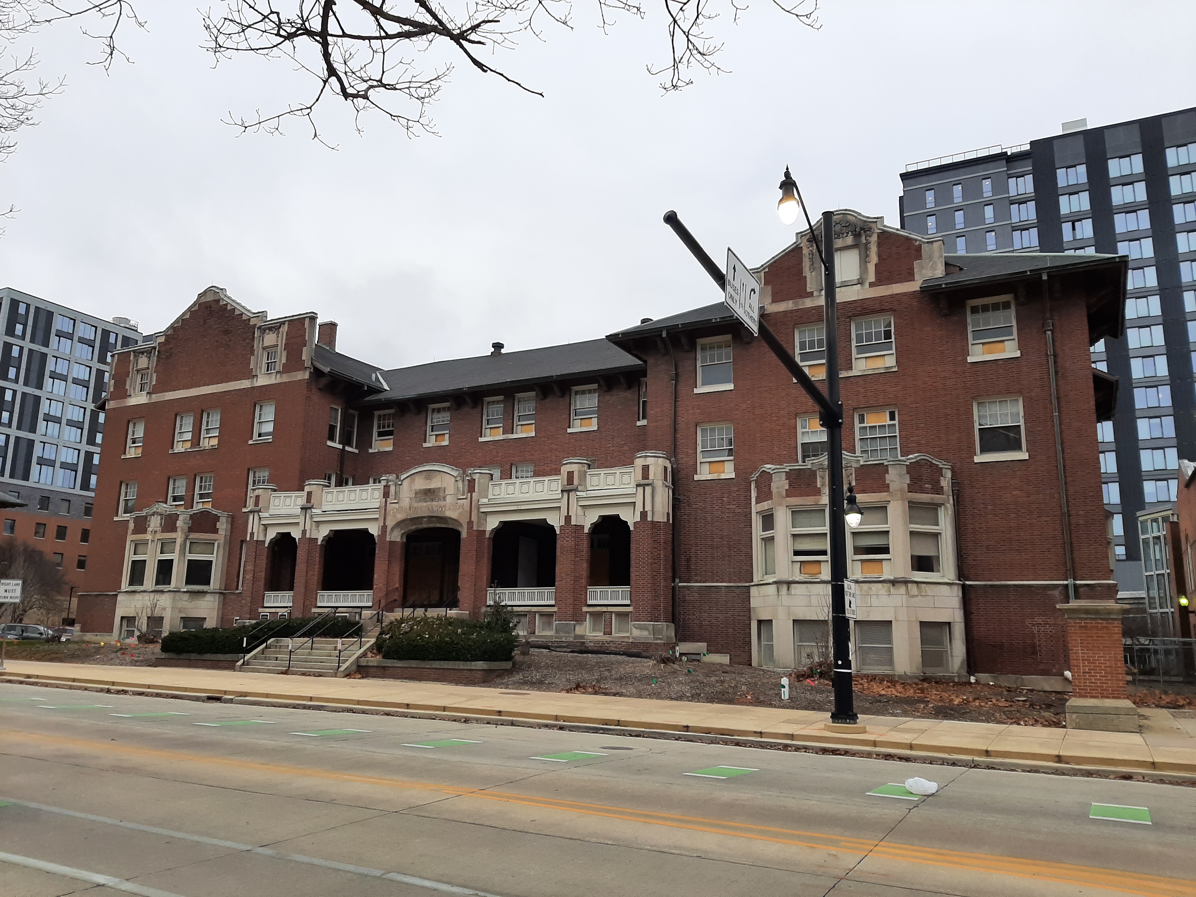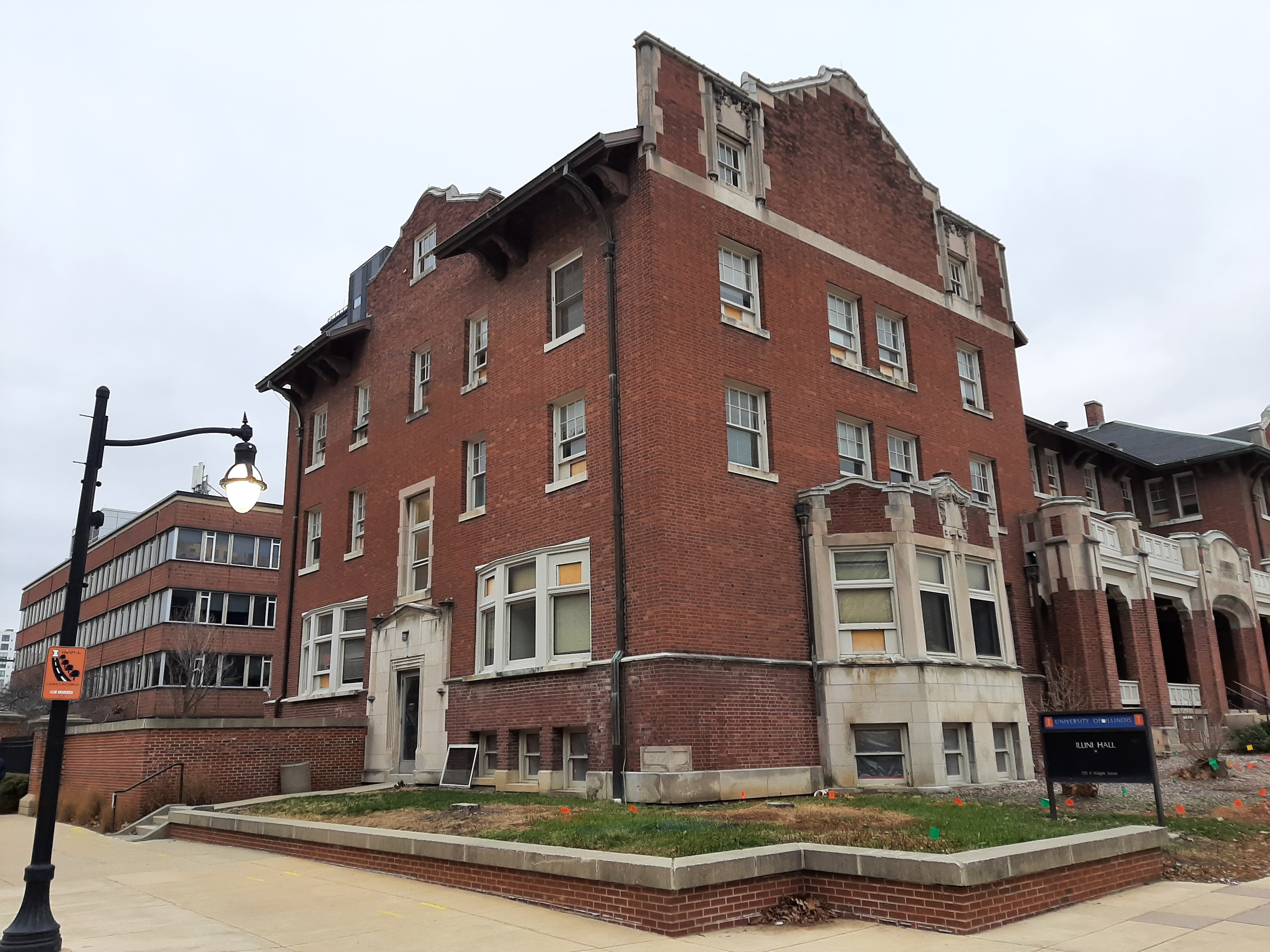 This building opened in 1908 as the University YMCA. The university leased the building in 1918 with the basement as a makeshift student center and renamed it Illini Hall. After the Illinois Union opened in 1941, the building housed a number of different university organizations, including The Daily Illini student newspaper, the U of I Police Training Institute, and the Department of Statistics. The building was demolished in 2022 to provide space for a new data sciences center.