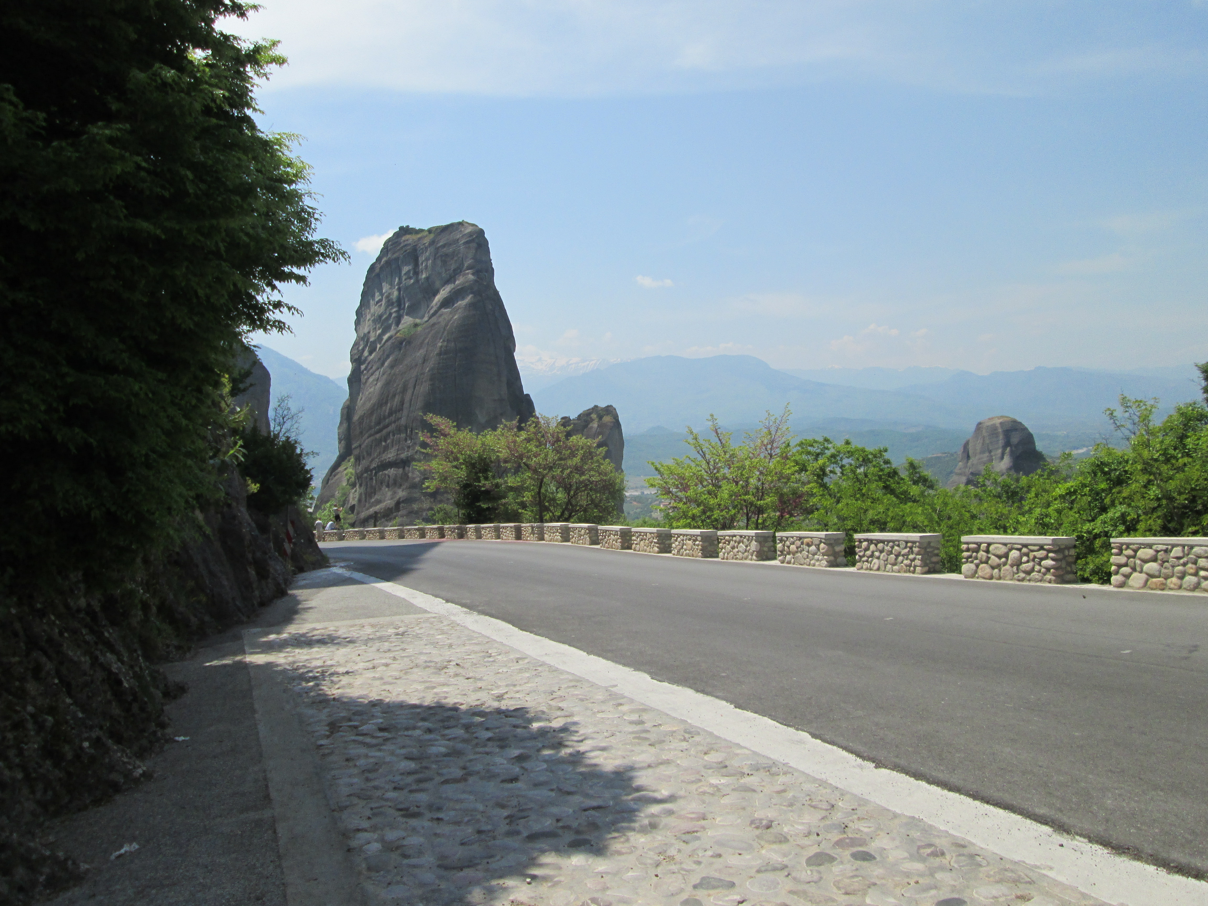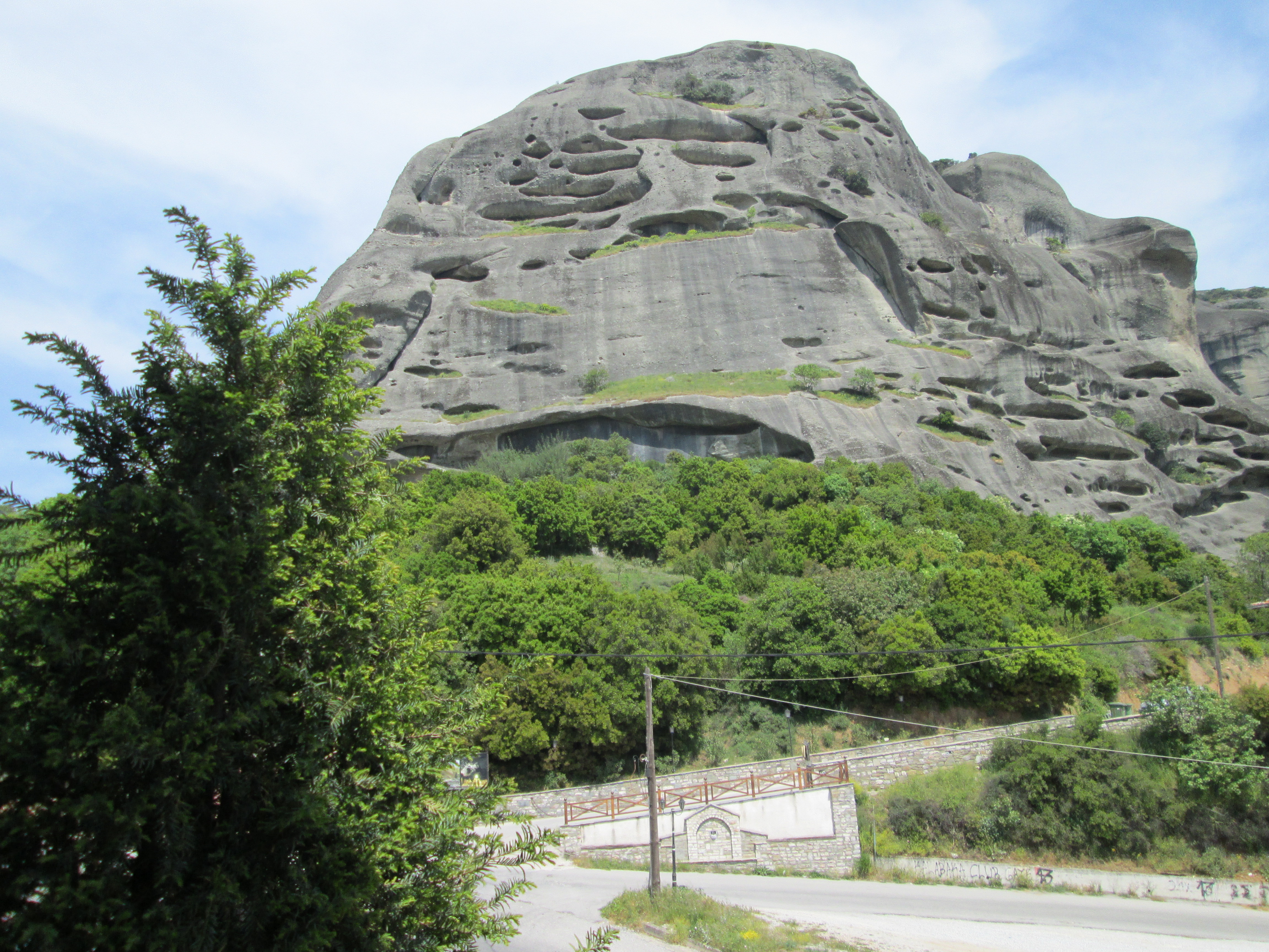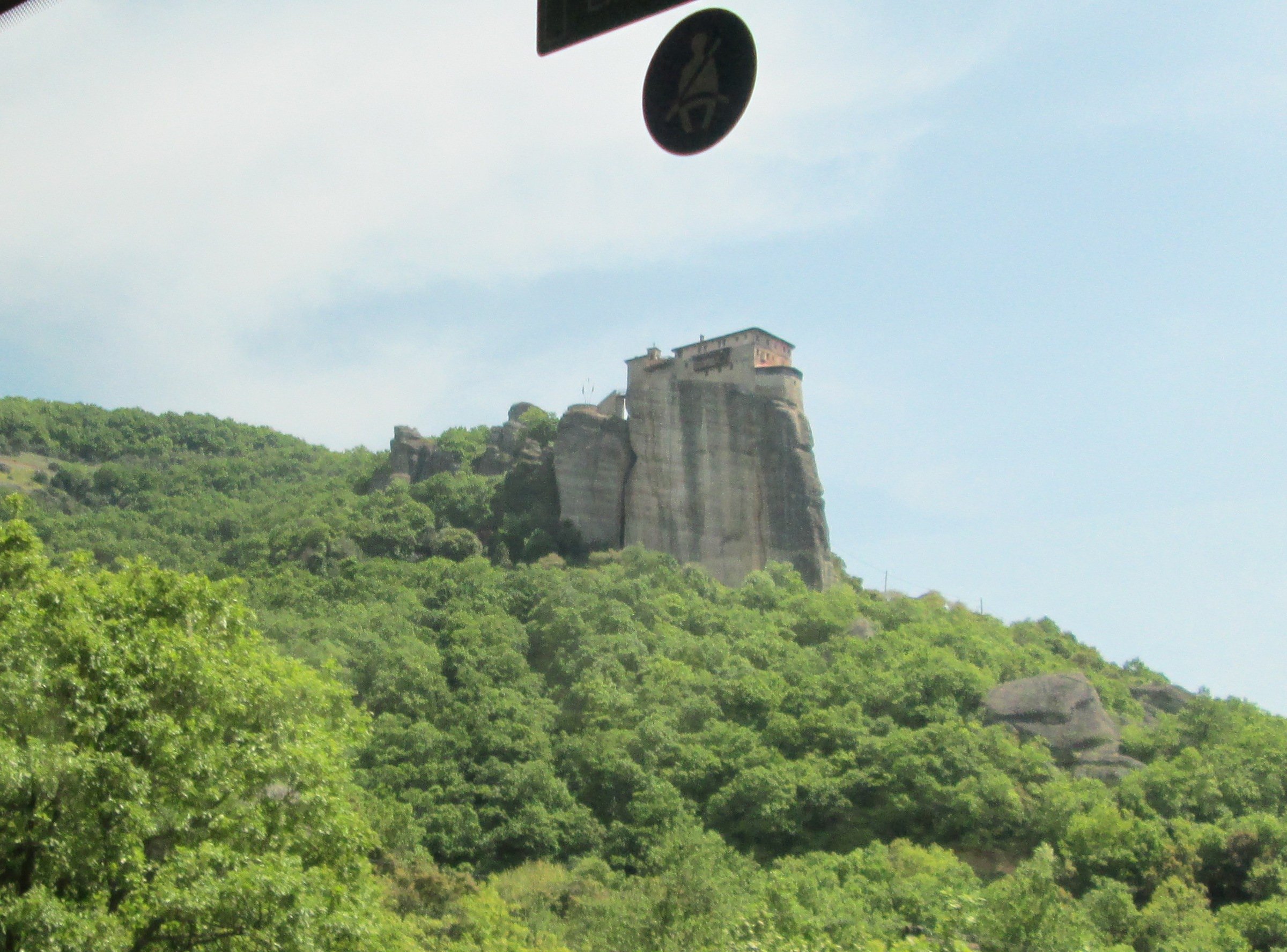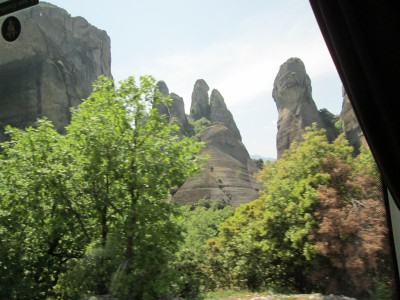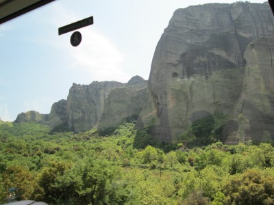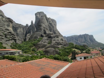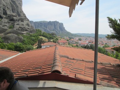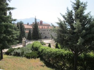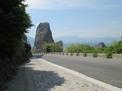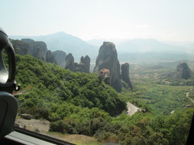 top of natural sandstone rock pillars that rise from the plain of Thessaly.