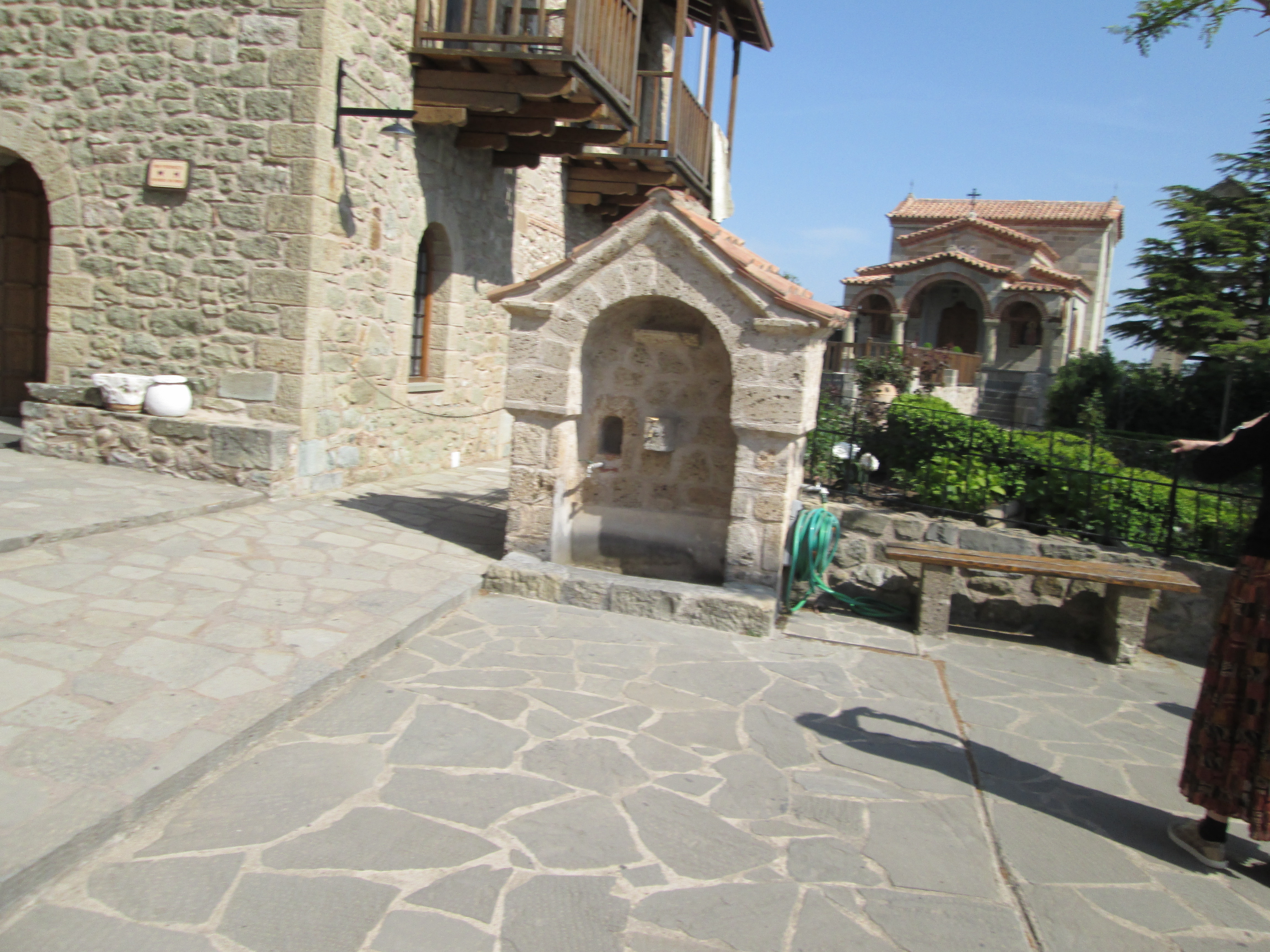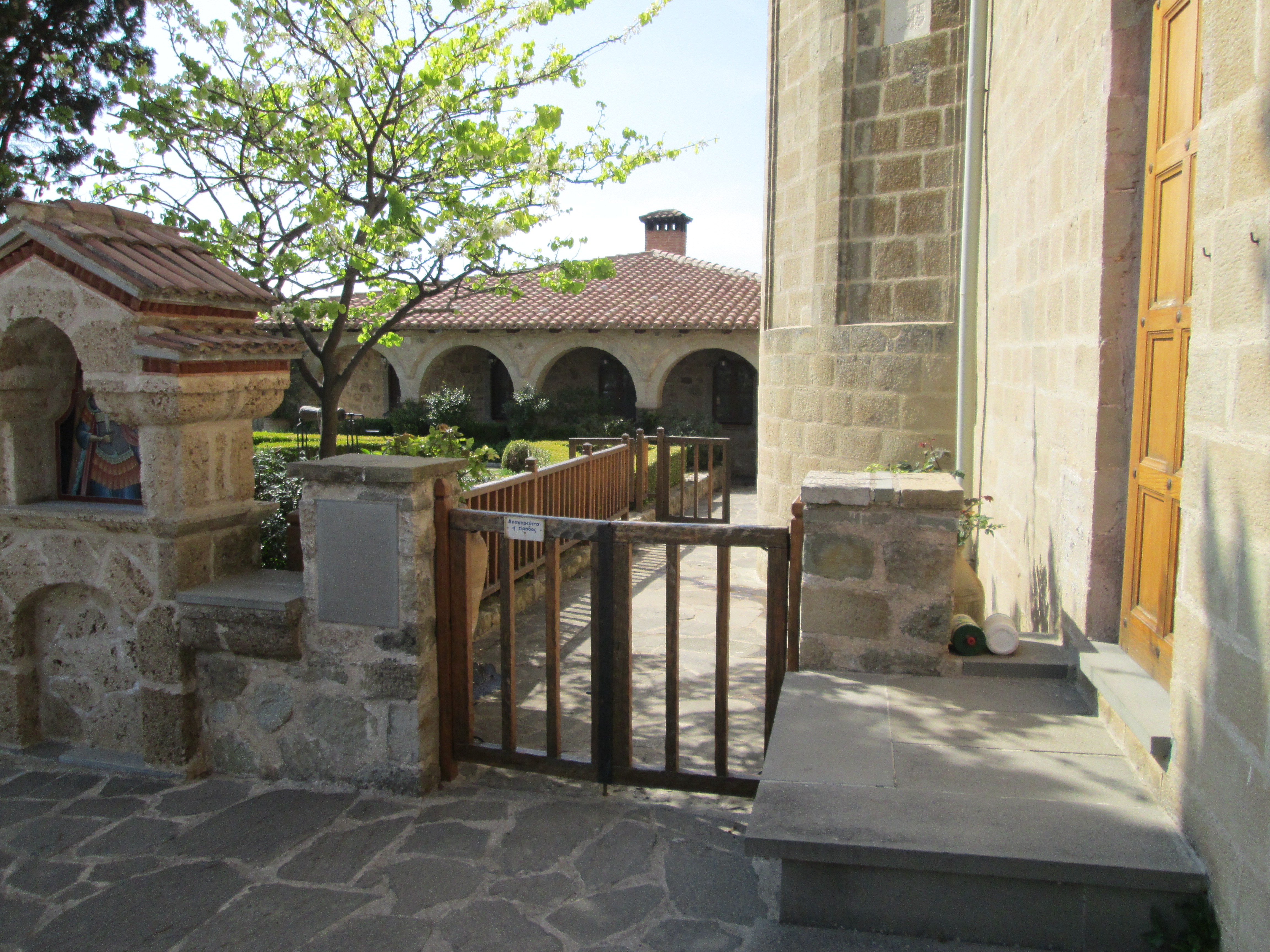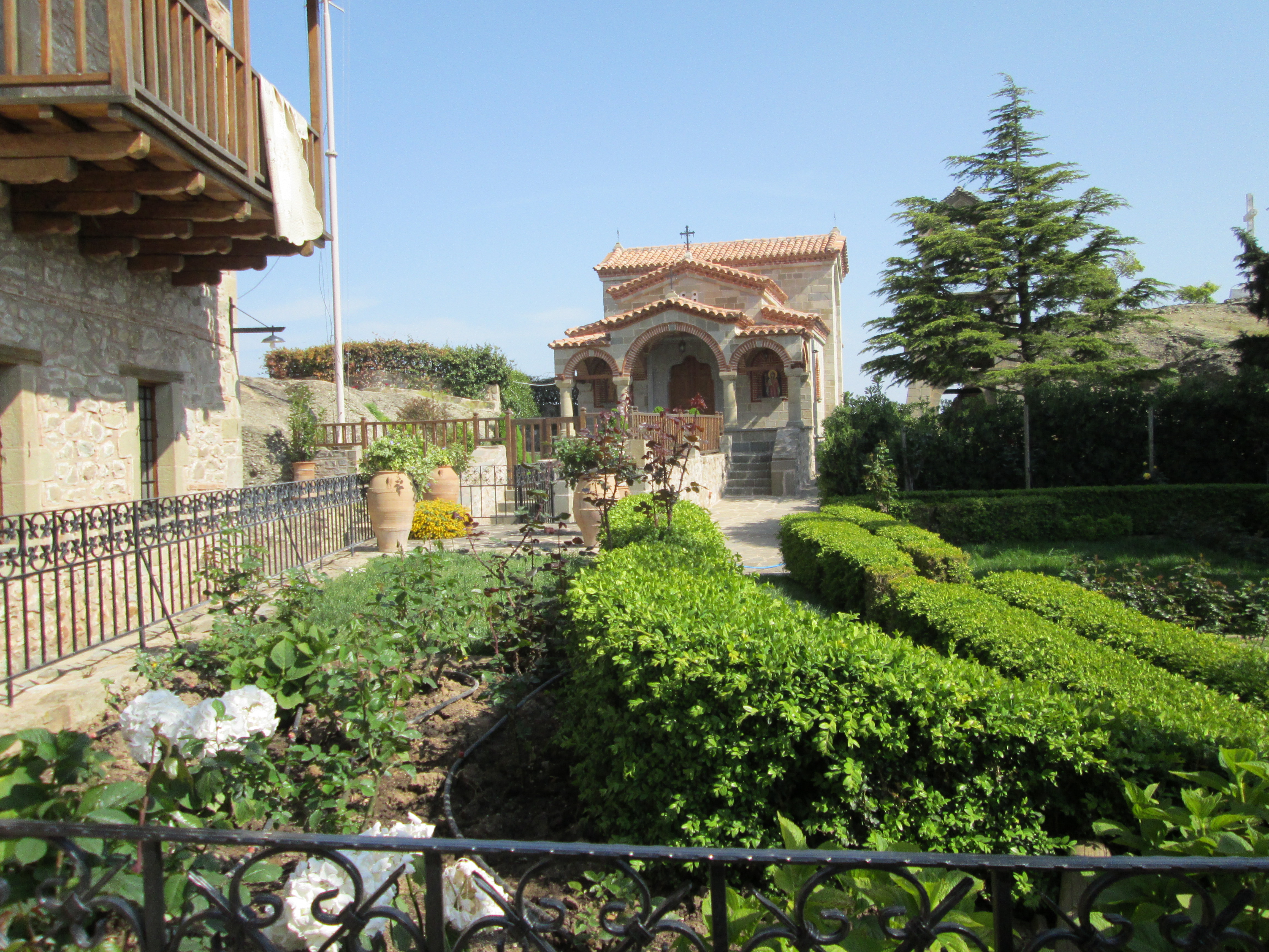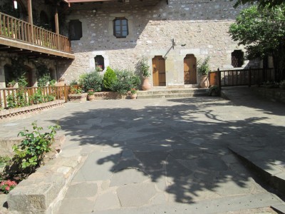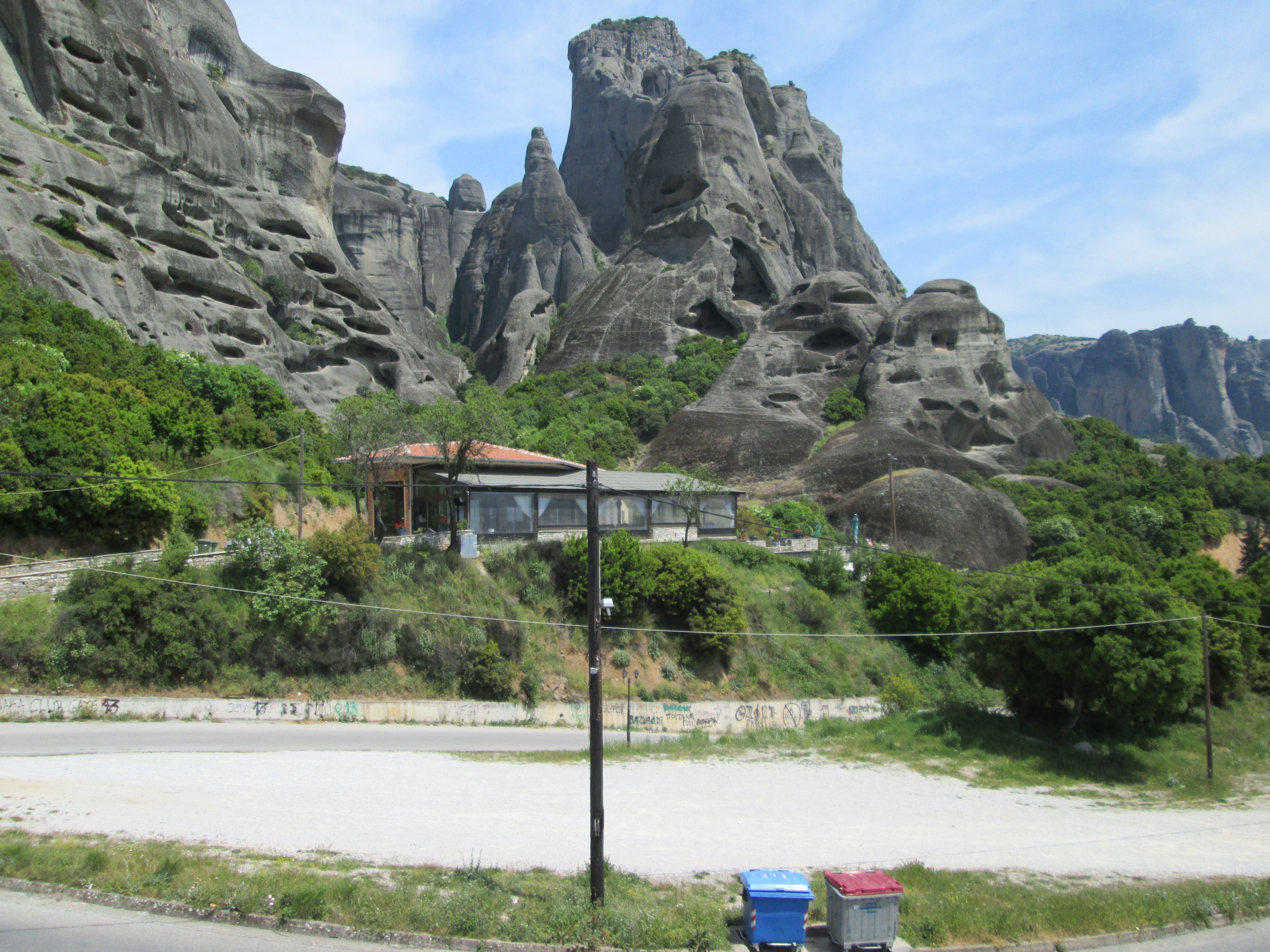 top of natural sandstone rock pillars that rise from the plain of Thessaly.