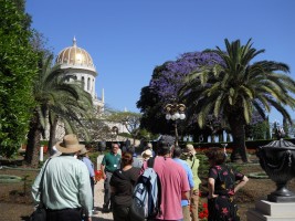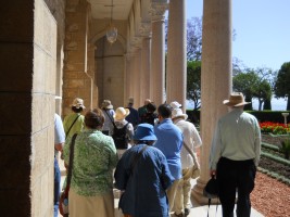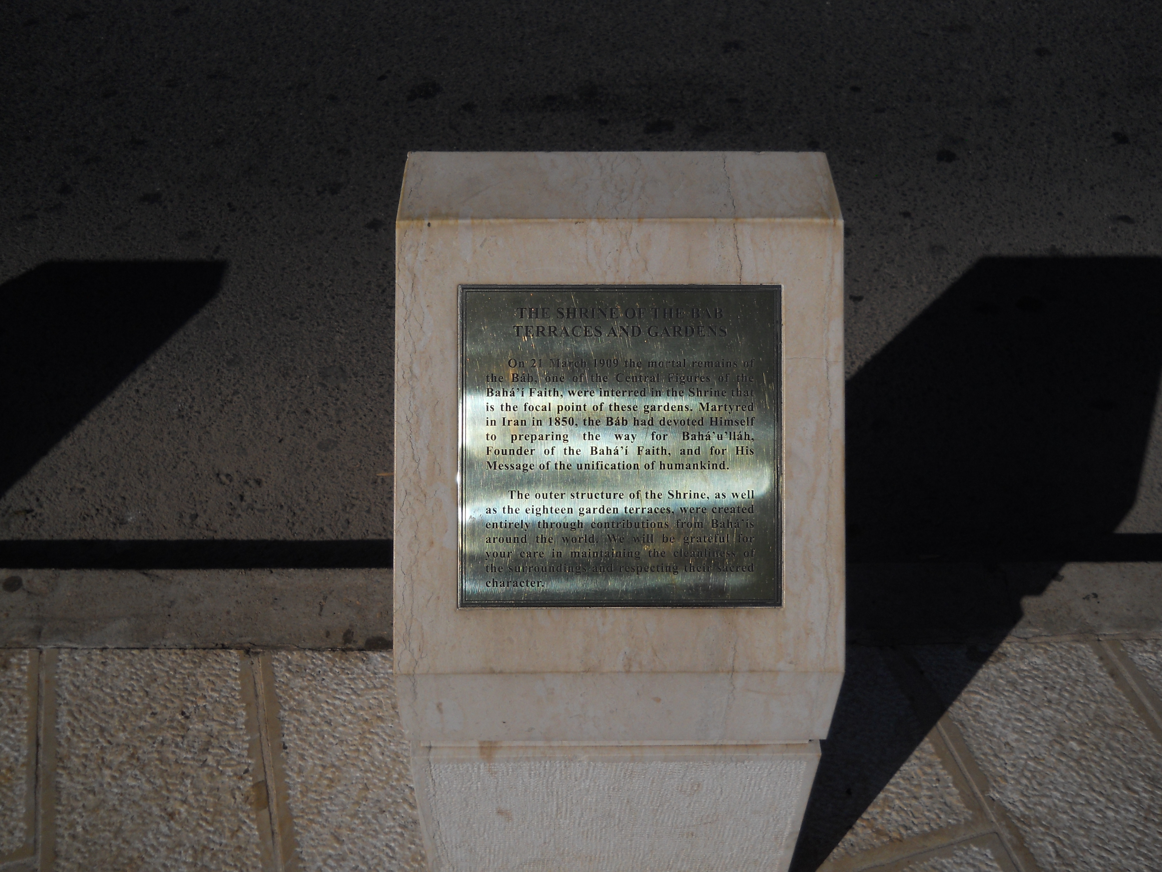 The Baha'i faith was founded in Persia by Mirza Husayn Ali (1817-1892), known as Baha'u'llah, and holds as its central belief the unity of mankind. Siyyid `Ali Muhammad Shirazi (1819-1850), who went by the title of Bab, was one of three central figures of Baha'i faith and was martyred by the Persians at the age of 30. Baha'u'llah's son had this mausoleum built in Haifa and reinterred the Bab's remains here in 1909. The surrounding hillside was built as a terraced garden that is maintained by Baha'i volunteers from around the world.