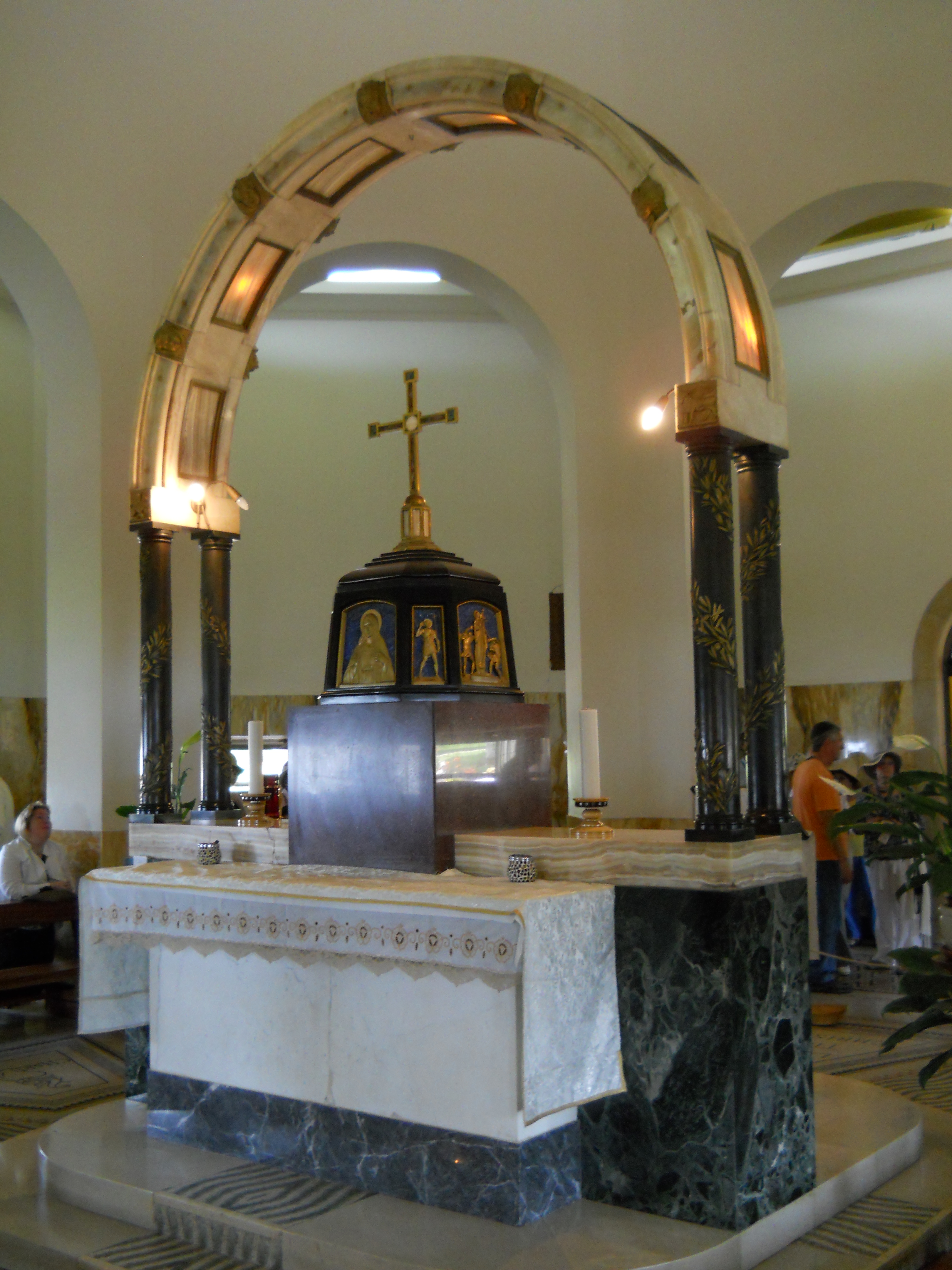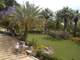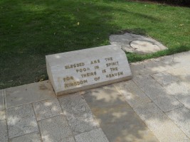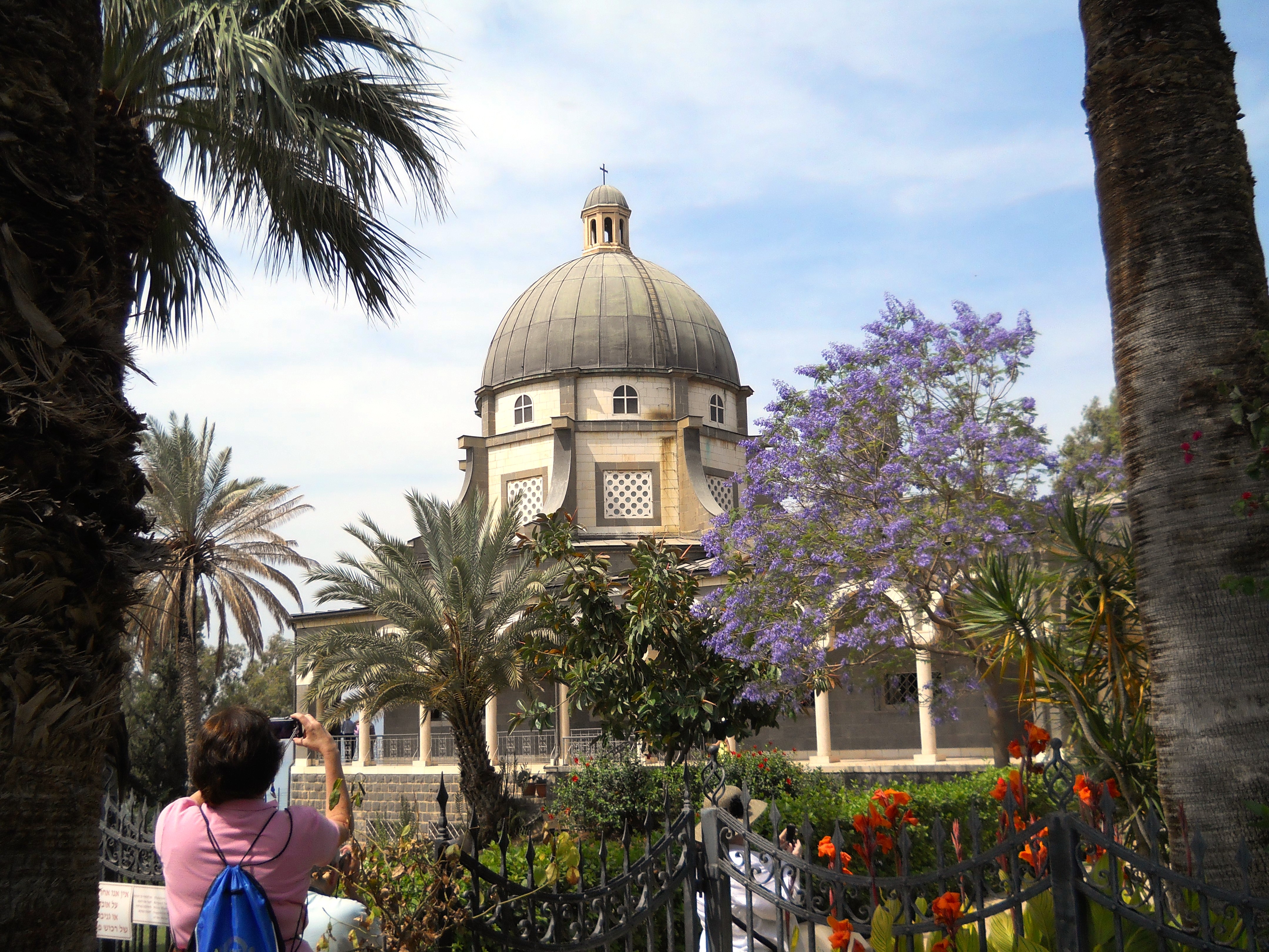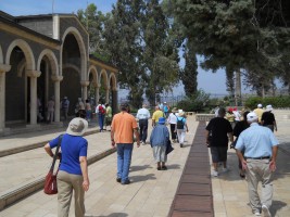 There is no specific geographical location given in Matthew for this sermon, but tradition places it on the northwest side of the lake between Tabgha and Capernaum. The site is commemorated with a domed Catholic Church designed by Antonio Barluzzi and completed in 1937. However, our tour guide insisted that, if the sermon did occur hear, it would more likely have occurred on the hillside just to the west of the church, where the topography and acoustics would have made addressing a large crowd more practical.