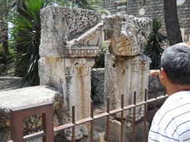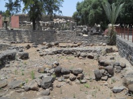 The adjacent remnants of a synagogue probably dates from the late Byzantine period (4th-5th centuries CE). Although this follows Jesus death by many years, reuse of consecrated ground was common, so the synagogue where Jesus taught may have been on this site. The remnants of an earlier structure exposed in an excavation on the synagogue's southeastern corner may date from Jesus' time.