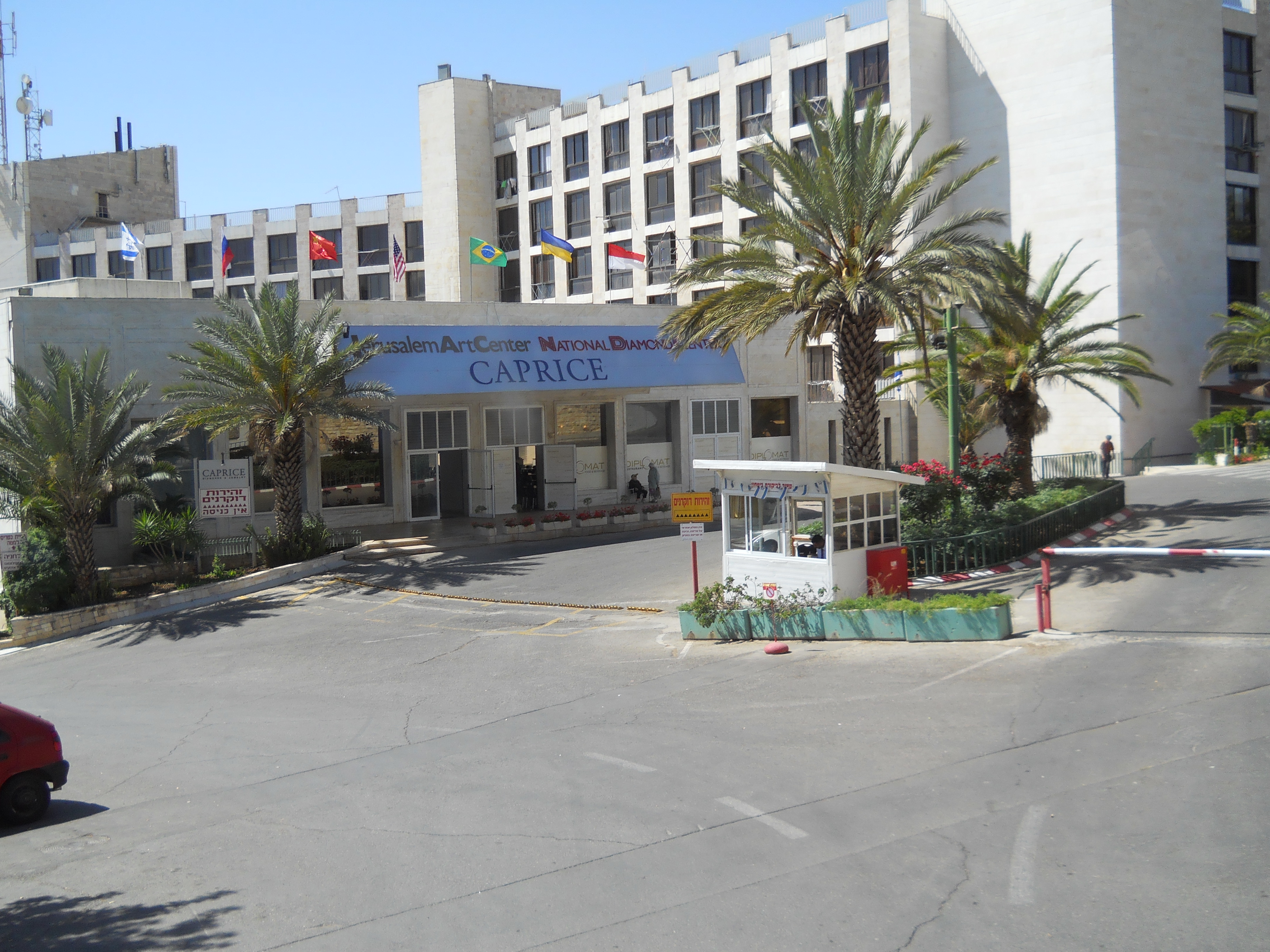 Cut diamonds are one of Israel's major exports, and a lot of them supposedly get cut at the Caprice Diamond Center in the former Diplomat Hotel. We stopped there on the way out of town. Fittingly, the new U.S. Consulate was just up the hill.