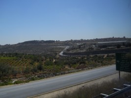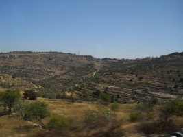 Along Route 38 we stopped in the Ella Valley, a location reputed to be where the shepherd David battled the Philistine Goliath (1 Samuel 17). There is no marker in the dry stream bed, but it's the only creek in the valley. A road from Bethlehem would have extended here from Bethlehem through the mountains of Judah. The southern ridge extends to the west - perhaps the Tel Sokoh mentioned in the scriptures. Are the current Palestinians the descendants (spiritual or literal) of the biblical Philistines? Probably doesn't much resemble the way the land looked in the 10th century BC, but who knows?