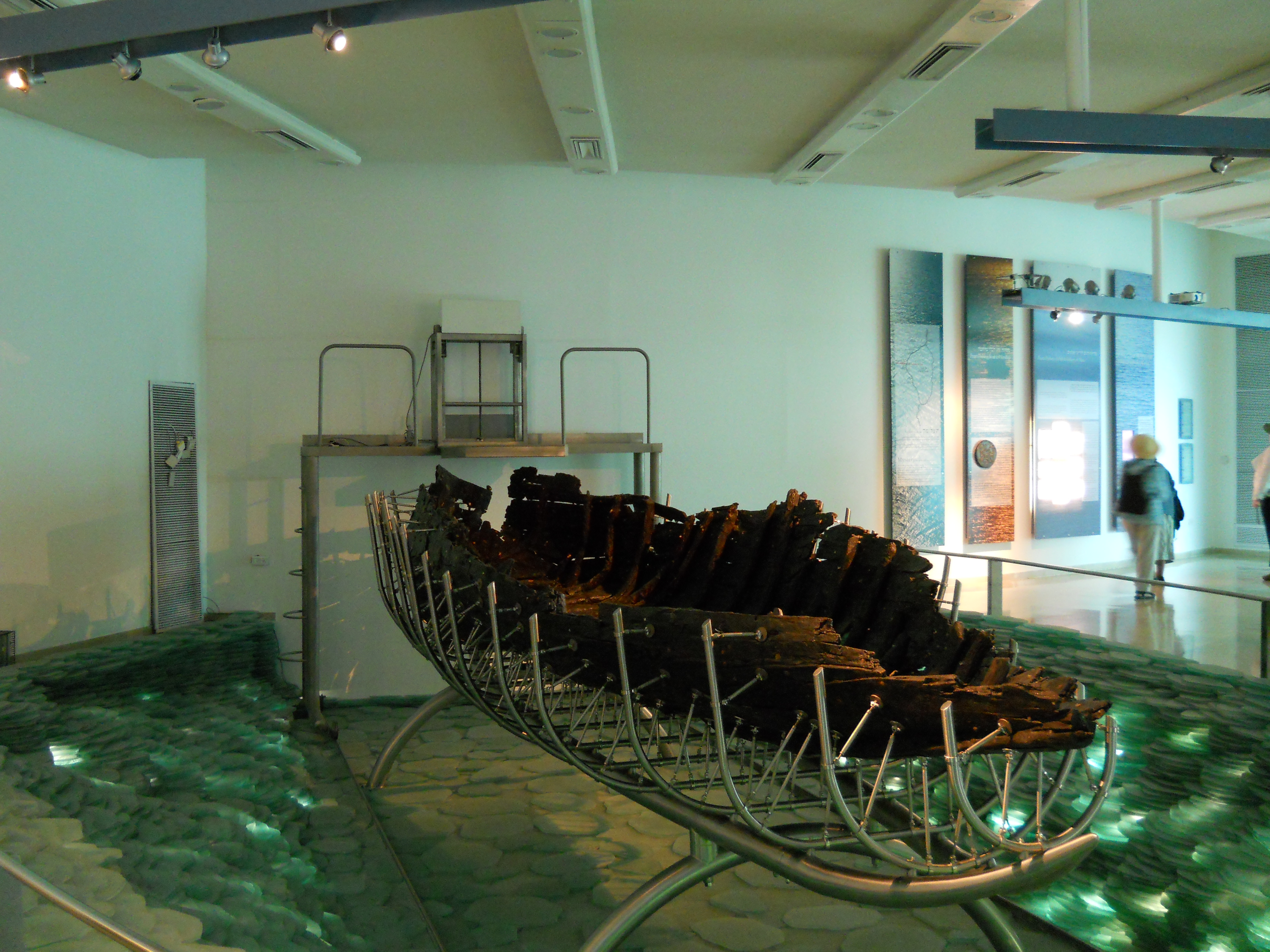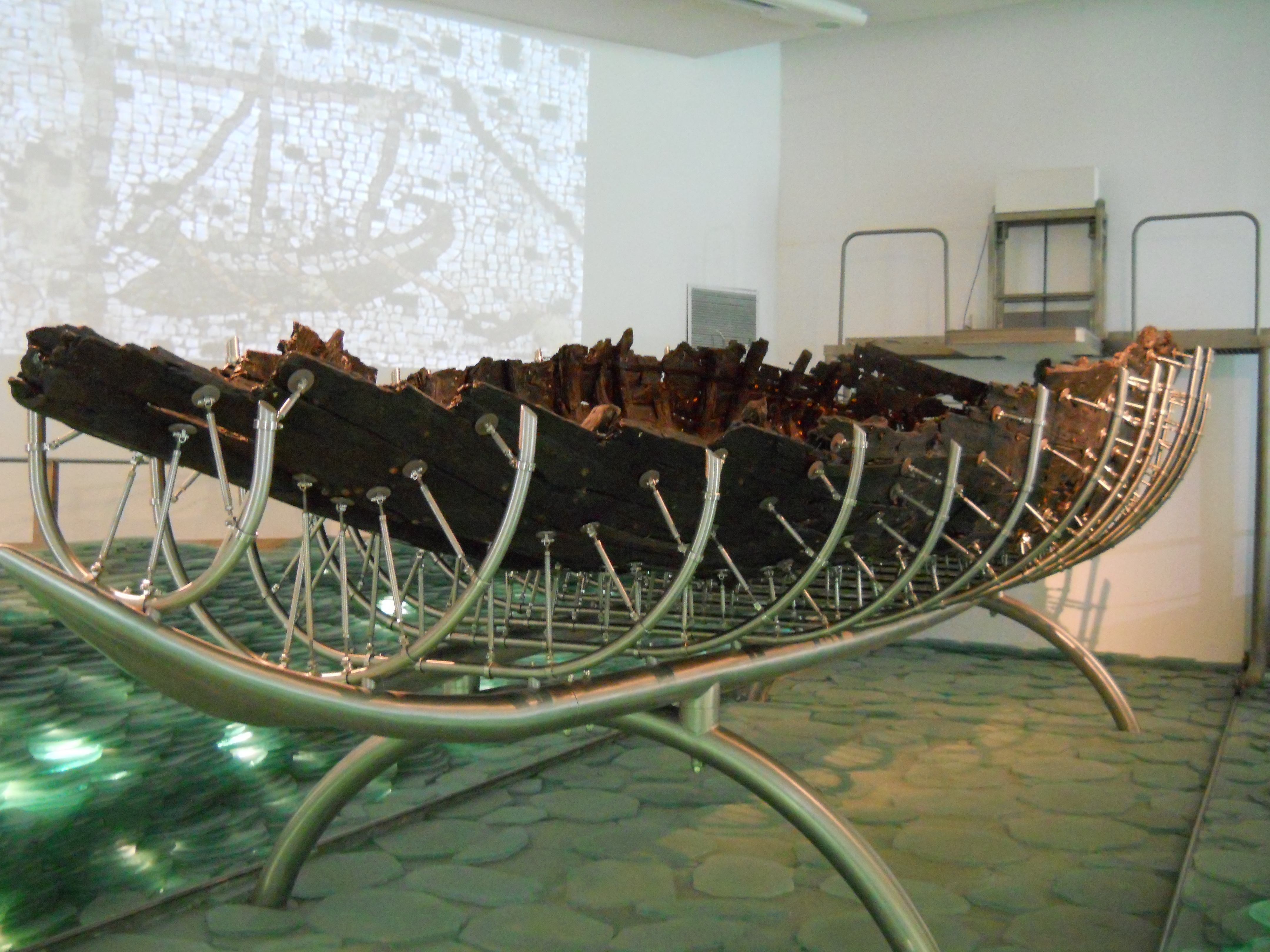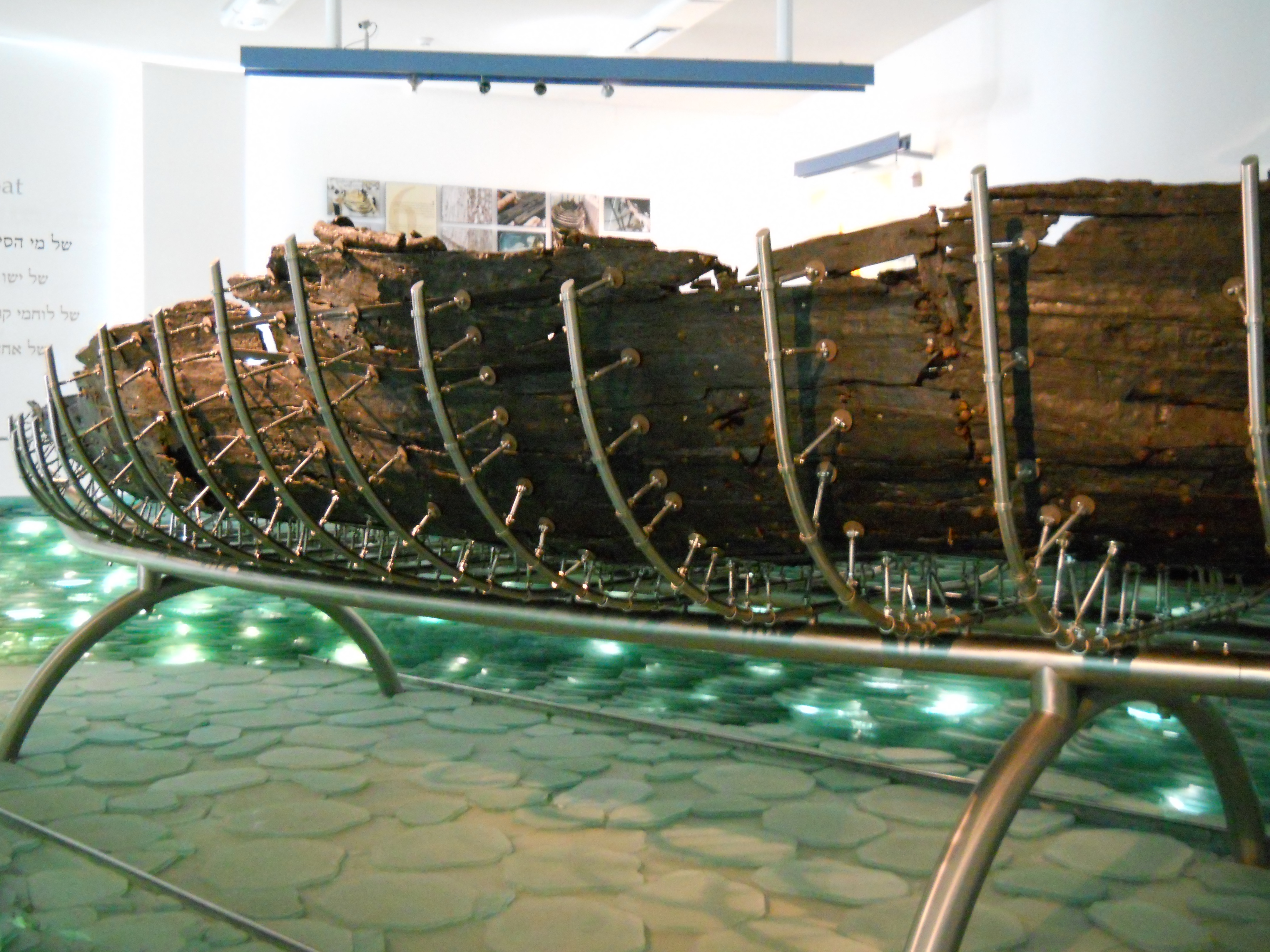 In 1986 a pair of amateur archaeologists discovered bits of a 1st century CE wooden fishing boat poking out on a shoreline that had been lowered by a three-year drought. The fragile 28-foot craft was excavated in 11 days and subjected to a heroic preservation effort that culminated in it's display in a lovely facility in Ginosar. Although dubbed the "Jesus Boat" and likely similar to vessels of Jesus' time, there is no reason to believe that Jesus had anything to do with this boat or that the craft even dates from Jesus' short lifetime. Nevertheless, it's a fascinating artifact that literally gives bones to biblical stories whose humanity can get lost in symbolism and theological practice.