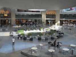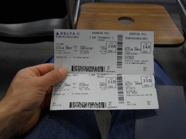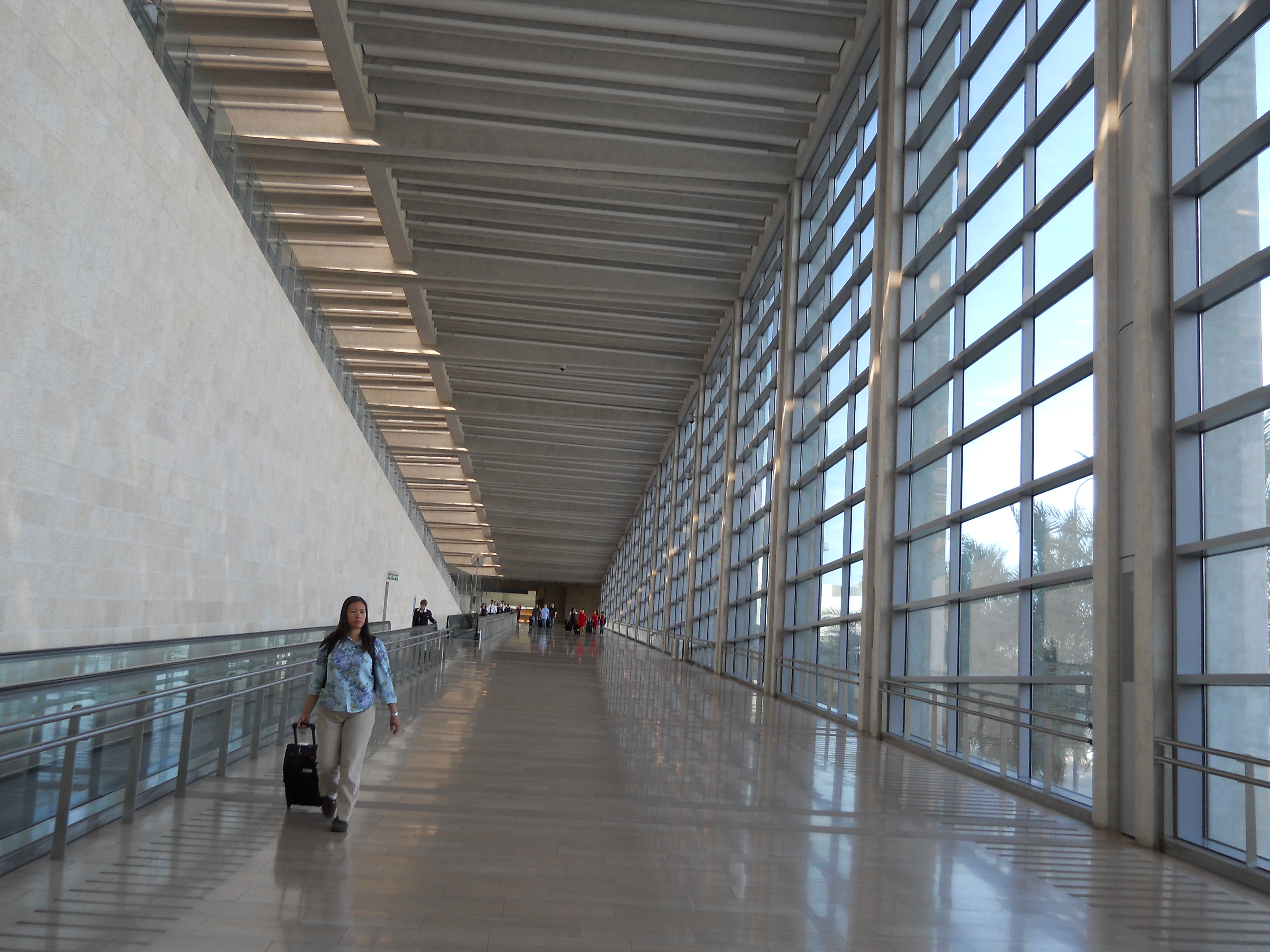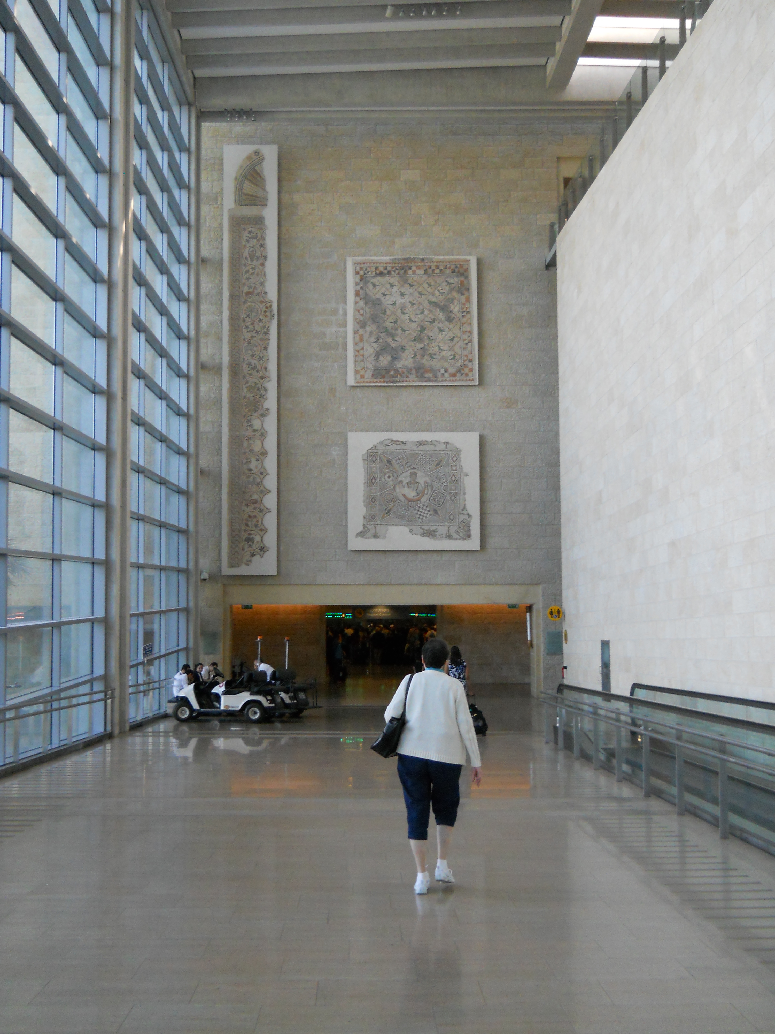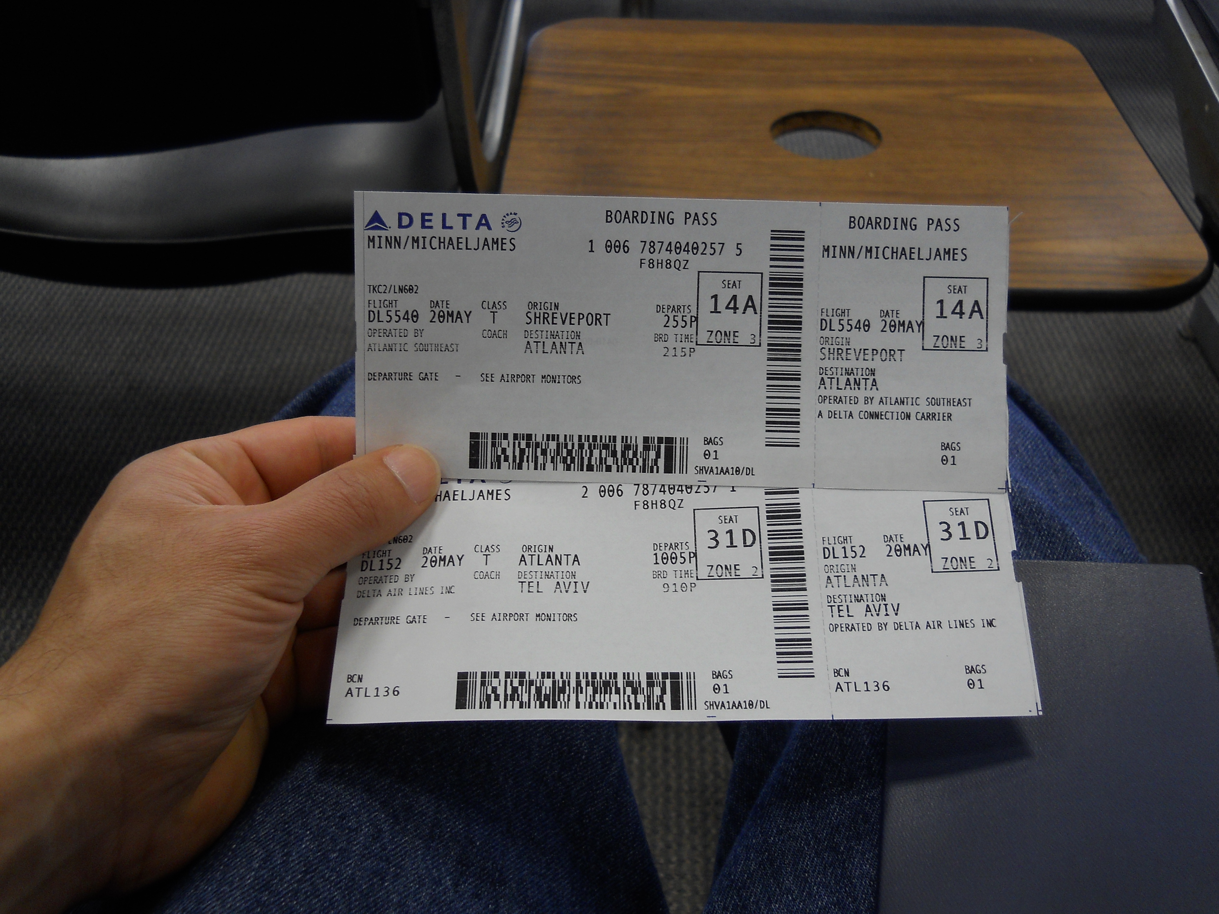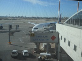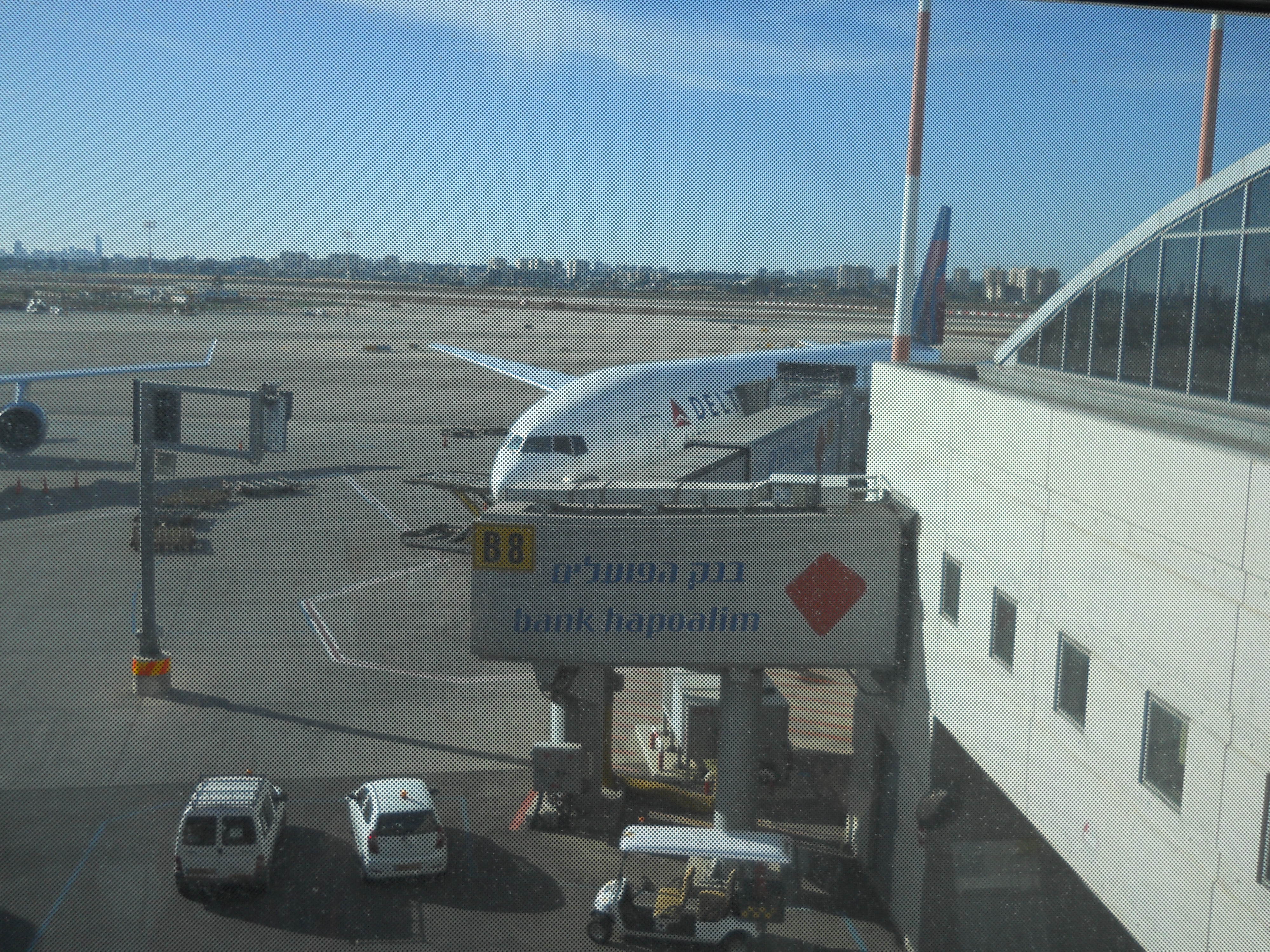 The trip to Israel involved driving to Shreveport, taking a regional jet to Atlanta (Delta 5540) and then taking an international flight to Tel Aviv (Delta 152). Aside from the normal indignities and discomforts of contemporary air travel, the process was surprisingly crisis-free. On the ATL-TLV leg of the trip, we scored a bulkhead seat right behind business class, which gave us a very pleasant amount of legroom.