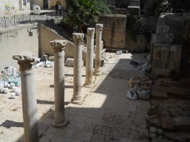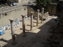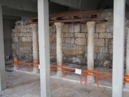 One feature of the Jewish Quarter is a partial excavation of columns for the old Roman cardo. In 135 CE, the Roman emperor Hadrian built the town of Aelia Captiolina on the ruins of Jerusalem in keeping with Roman urban planning conventions, and this general layout has largely persisted. The cardo maximus was a main north-south street starting at the Damascus Gate and featured roofed merchant stalls supported by stone columns - some of which have been excavated and re-erected for display.