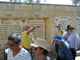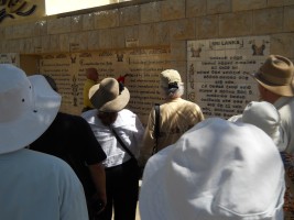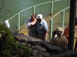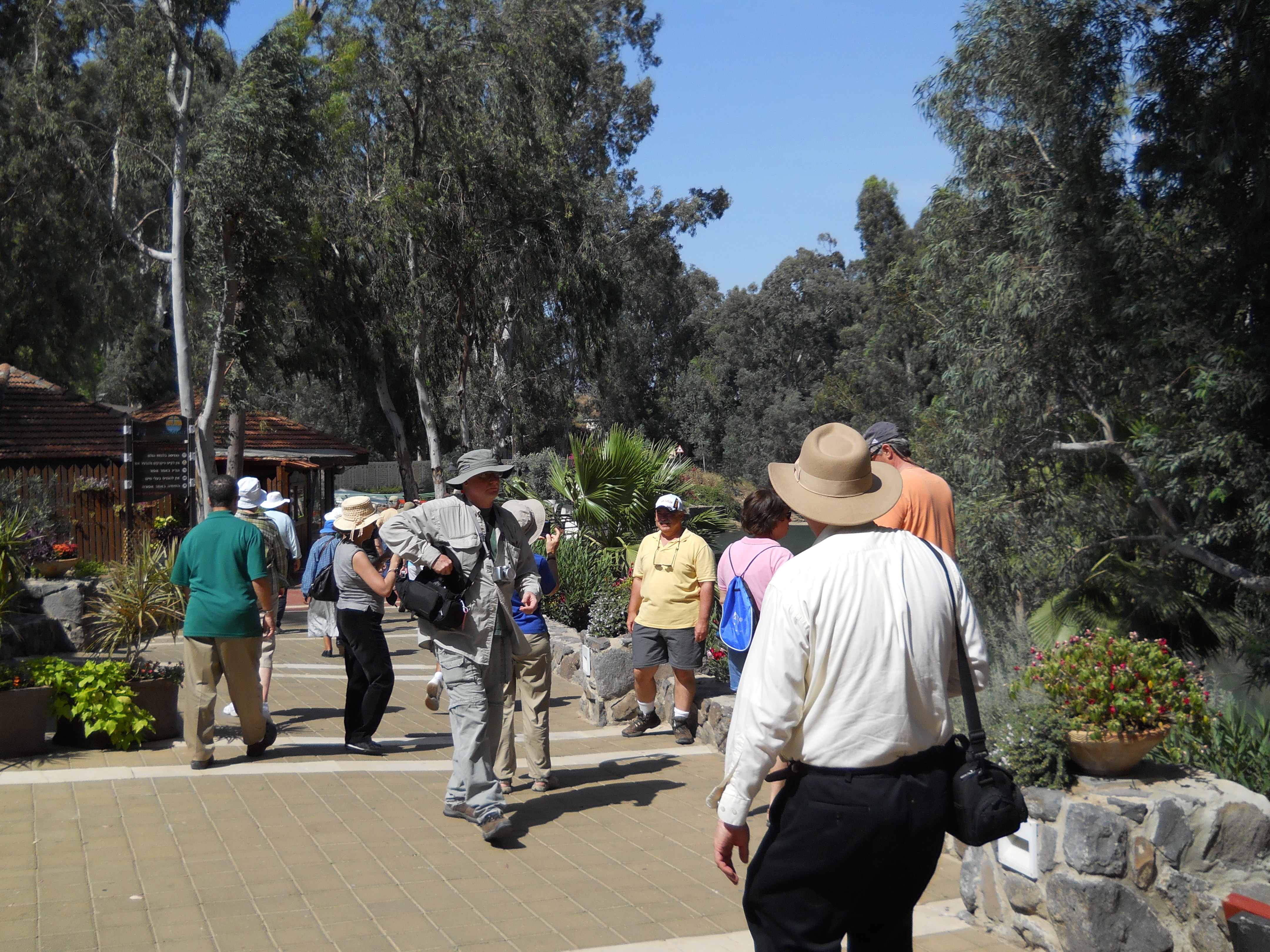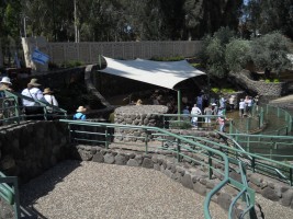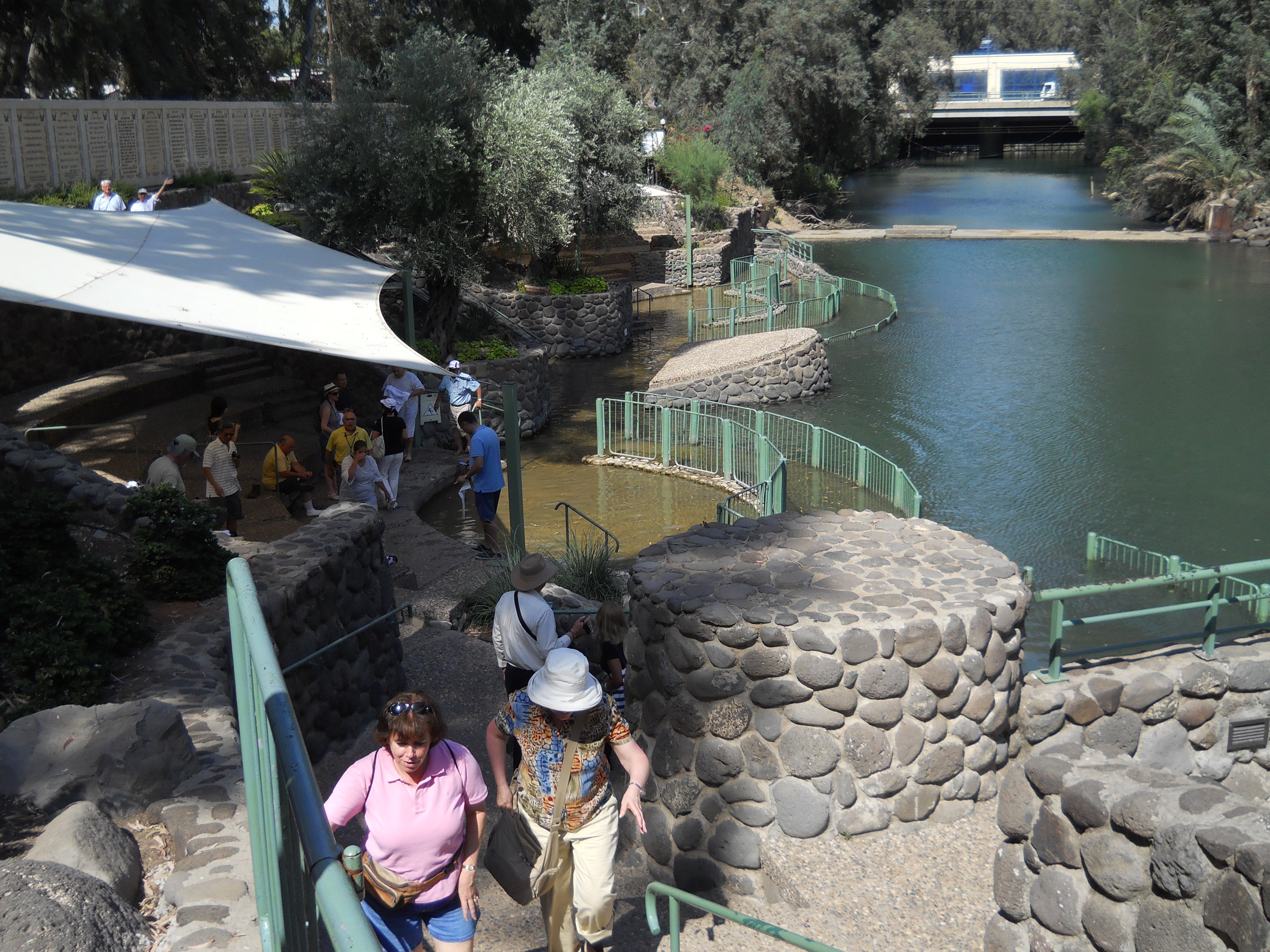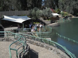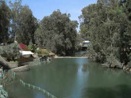 Yardenit is a baptismal site on the Jordan River just south of where it flows out of the Sea of Galilee. The plaza on the river is quite lovely, surrounded by tall trees and fed clear water from the lake. Robes can be purchased for self-baptismal. Although far from the traditional locations of Jesus' baptism and shaded by non-native eucalyptus that likely resemble nothing that Jesus ever saw, the site nonetheless has refreshing symbolic power compatible with the symbolic purification and repentance embodied in the immersive act.