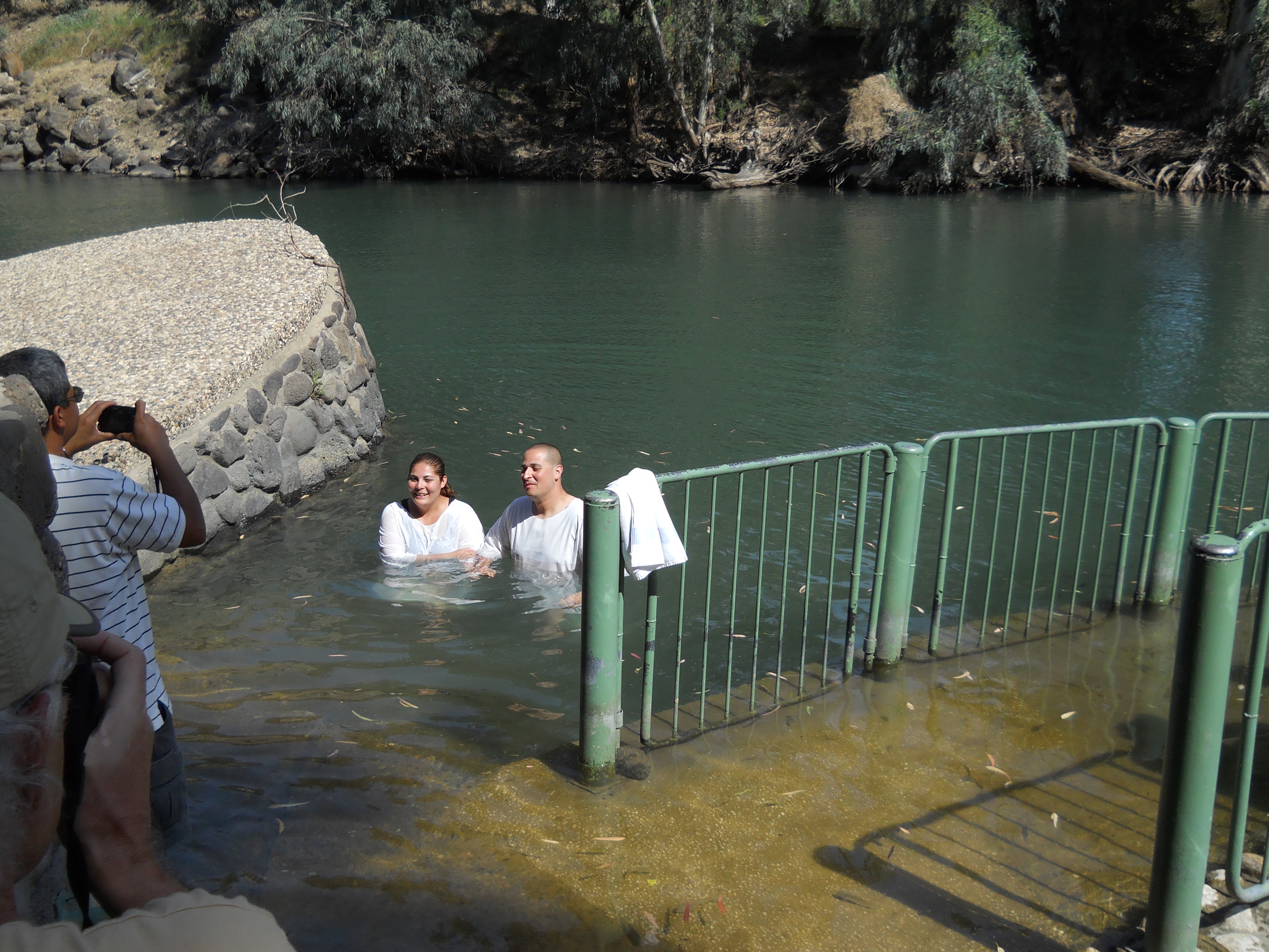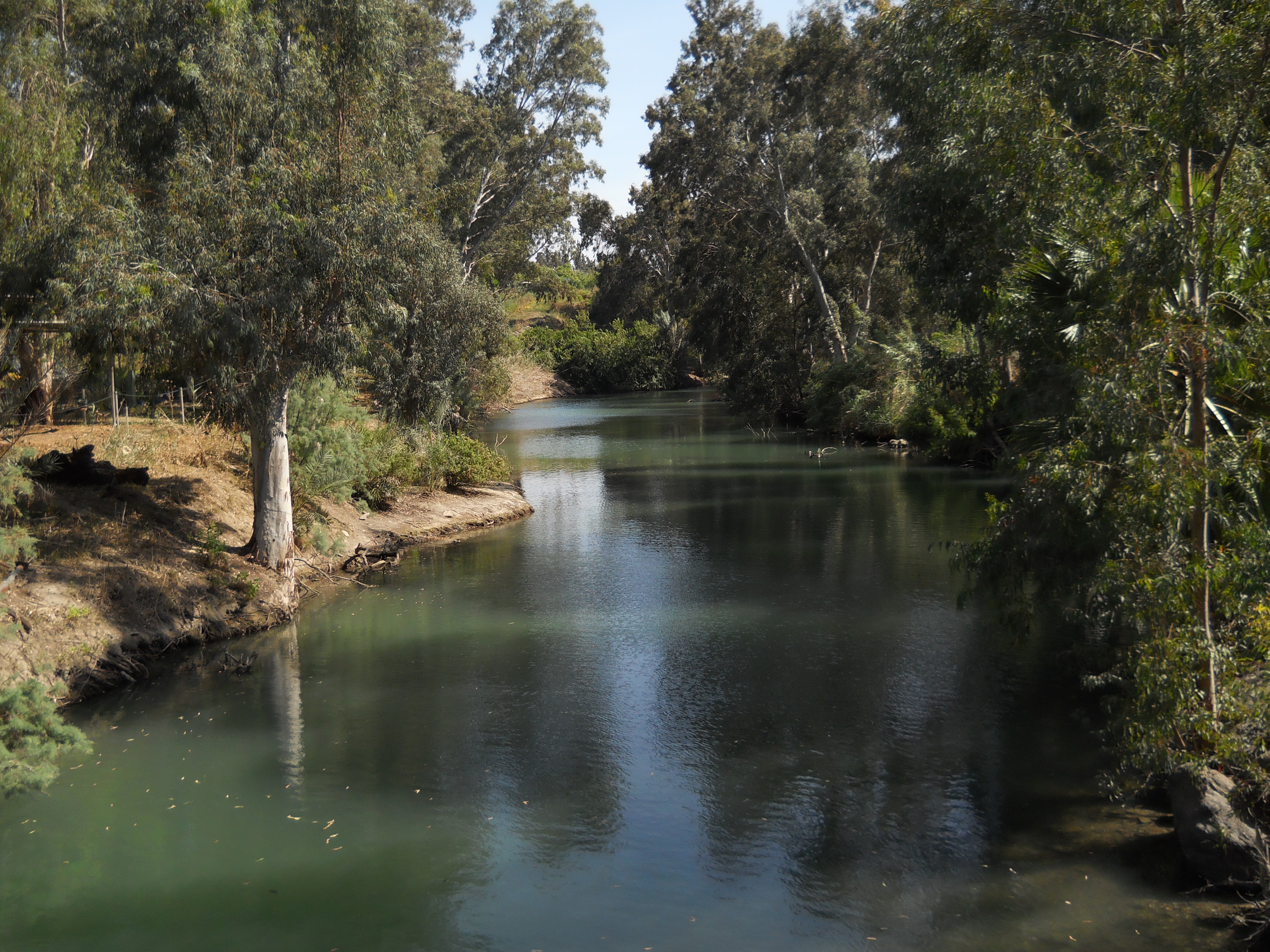 Just to the south of the Sea of Galilee, the Sea of Galilee empties into the Jordan River. The Jordan River appears numerous places in the Bible in both old and new testaments (beginning in connection with Abraham in Genesis 13). For Christians it is most notable as the place where John the Baptist had his ministry and baptized Jesus (Matthew 3). John 1:28 indicates the baptismal location as "Bethany beyond the Jordan," a site traditionally identified today as Bethbara (31.836944,35.547222) and located near Jericho just north of the Dead Sea, although that location, like almost everything in Israel, is contested.