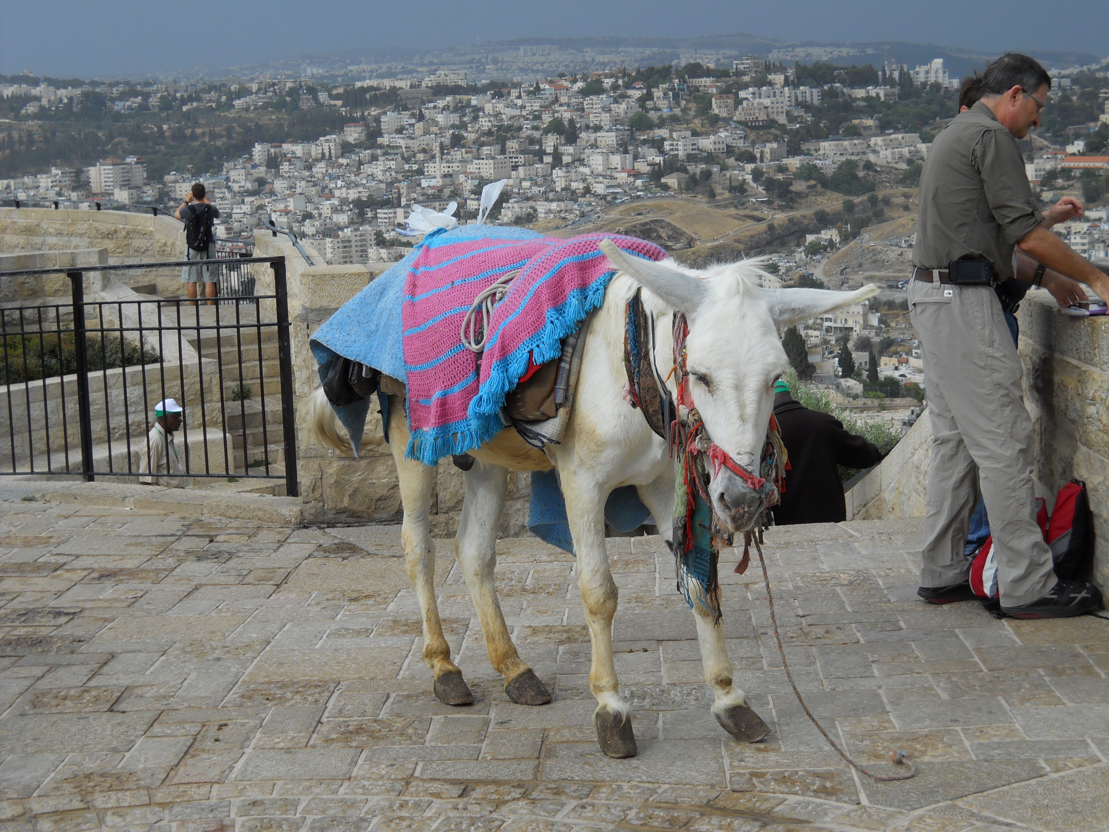 After breakfast, our tour of the Mount began from an observation point at the top, from where we descended along steep and narrow streets to holy sites below. Complicating the descent was my mother's bad knees, a brief rain shower that made the streets quite slippery, and an unholy amount of automobile traffic.