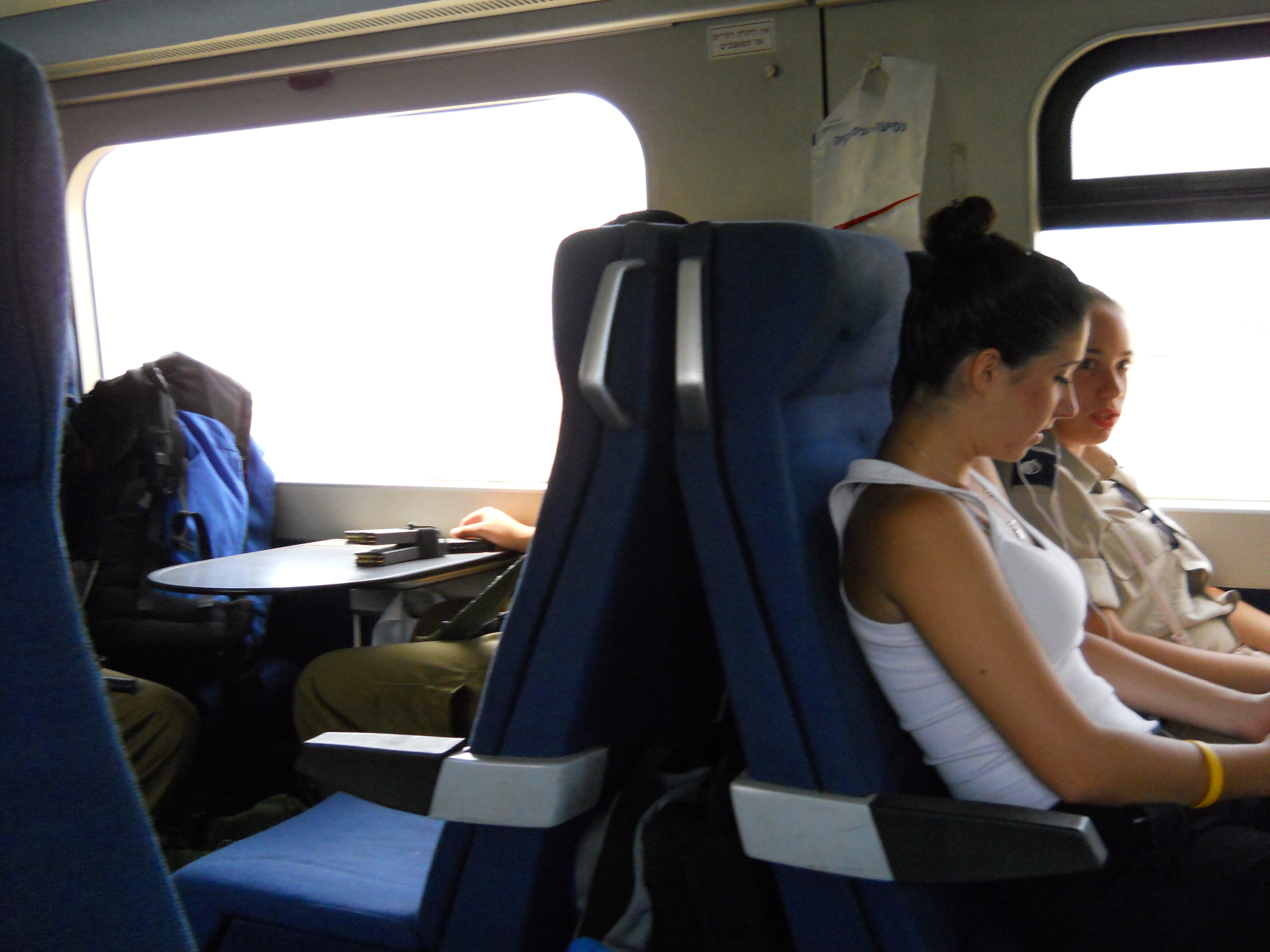 Notably, a number of young people in military uniforms got on board. The Israel Defense Forces folks take public transit to work and come fully armed and loaded - which is oddly comforting and disturbing at the same time.