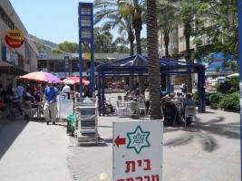 Because I wanted to be back on the train south in time to get home for dinner at a decent time, I chose to get out at Haifa Bat Galim station. The stop wasn't much of a tourist destination, although the fact that the entire area seems to have been built in the mid 1970s made it a bit of an architectural time trip back to the age of disco.