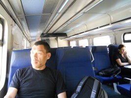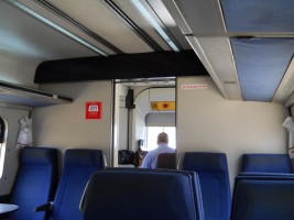 The rolling stock for my trip to Tel Aviv was a IC3/PRA(II) Diesel multiple unit, built in 1995 by Adtranz Denmark. I would have gotten some better pictures of the train itself, but I was concerned about calling the attention of the security folks to my photography - something that would happen later north of Tel Aviv.