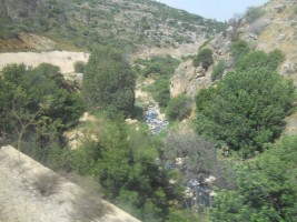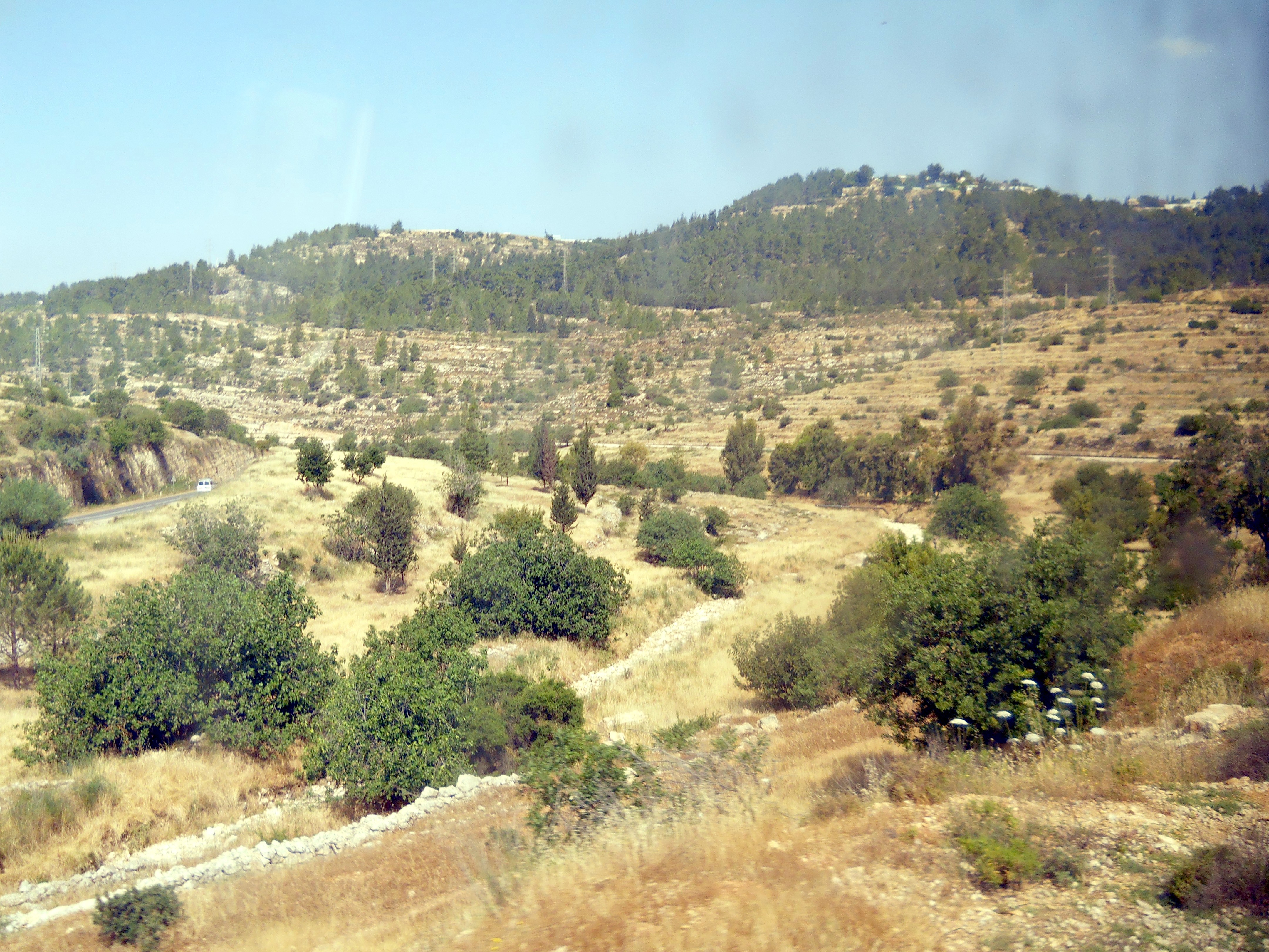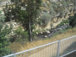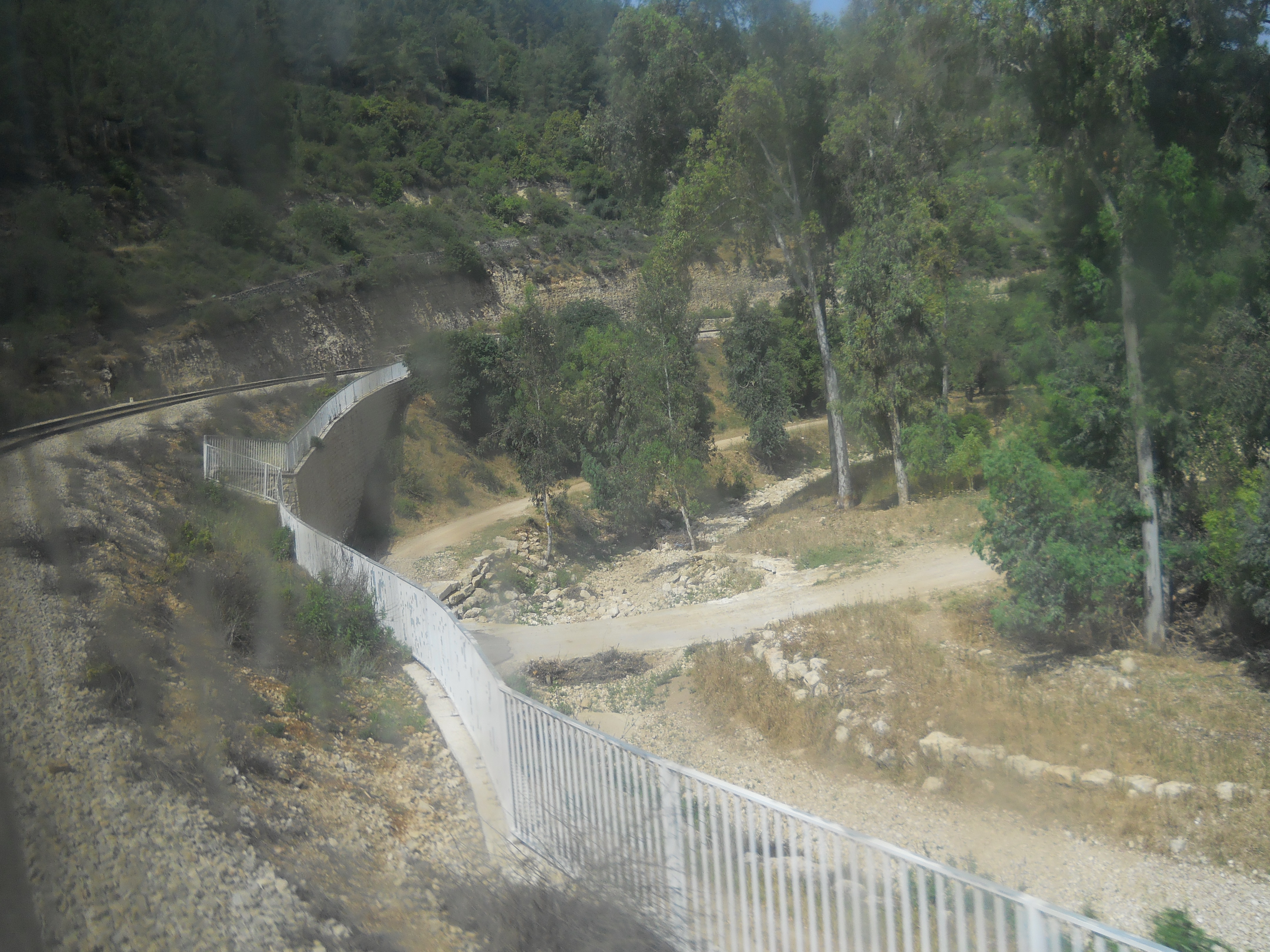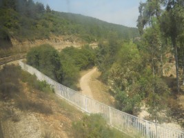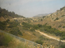 The topography surrounding Jerusalem is mountainous and the section of the line between Jerusalem and Bet Shemesh runs through the mountains along the Refa'im Stream. While this makes the line scenic, the absence of tunnels or deep cuts necessitates a significant amount of curvature, making the travel on the line slow and generally uncompetitve with motor coaches on Highway 1 expressway.