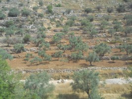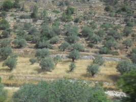 Olive trees on terraced hillside