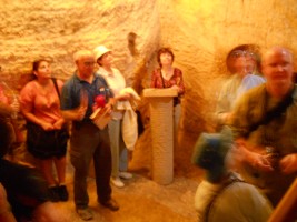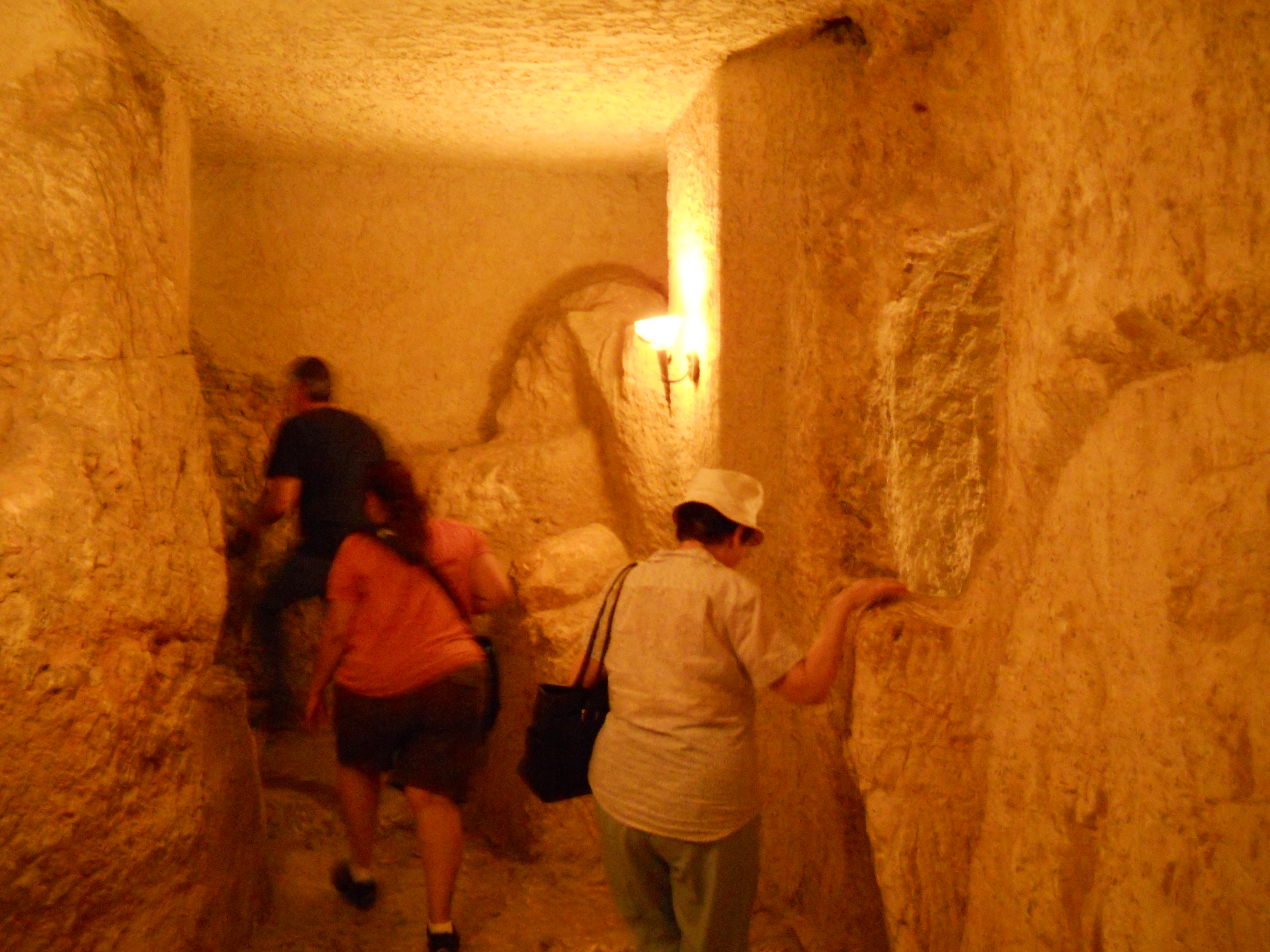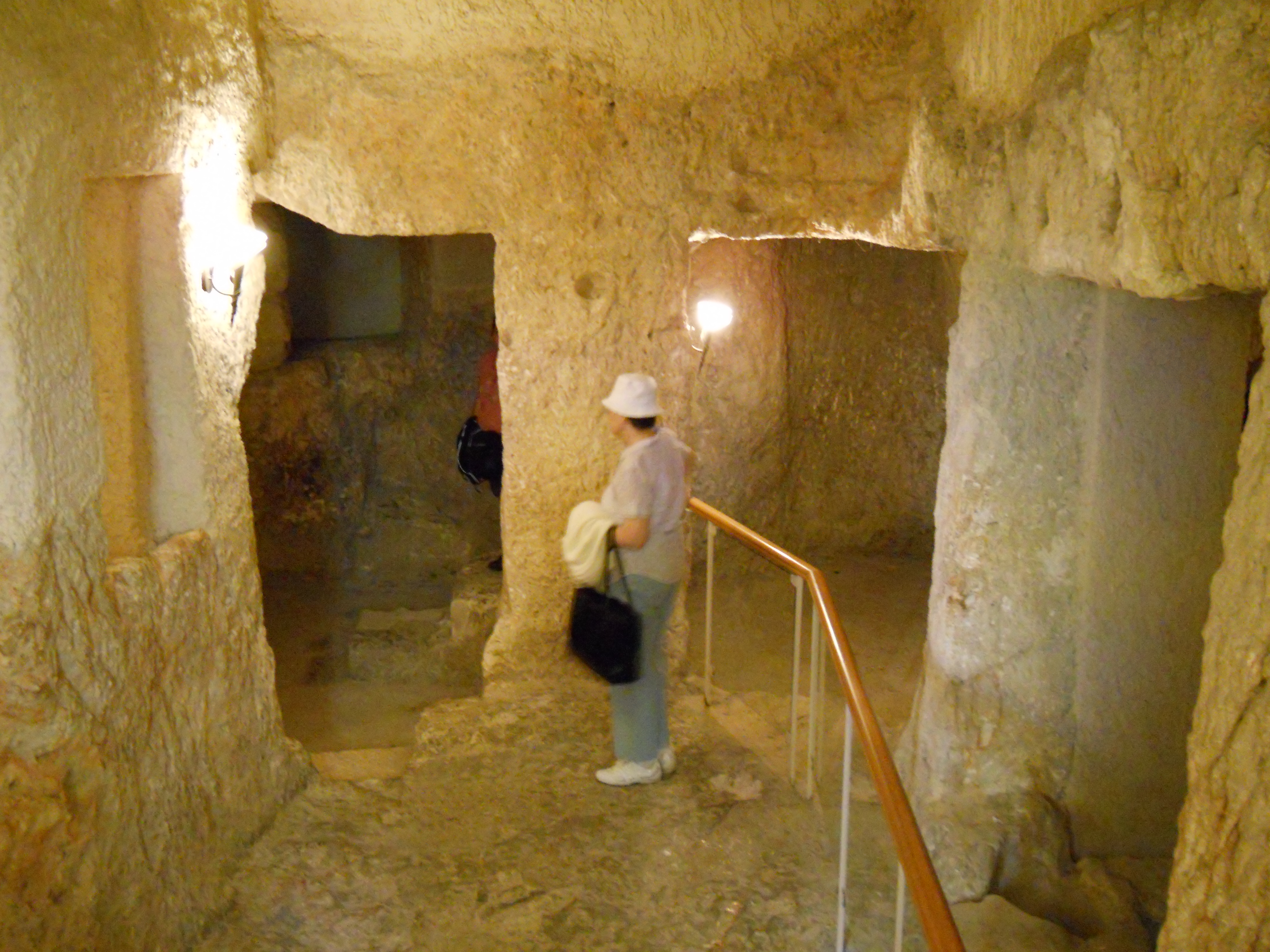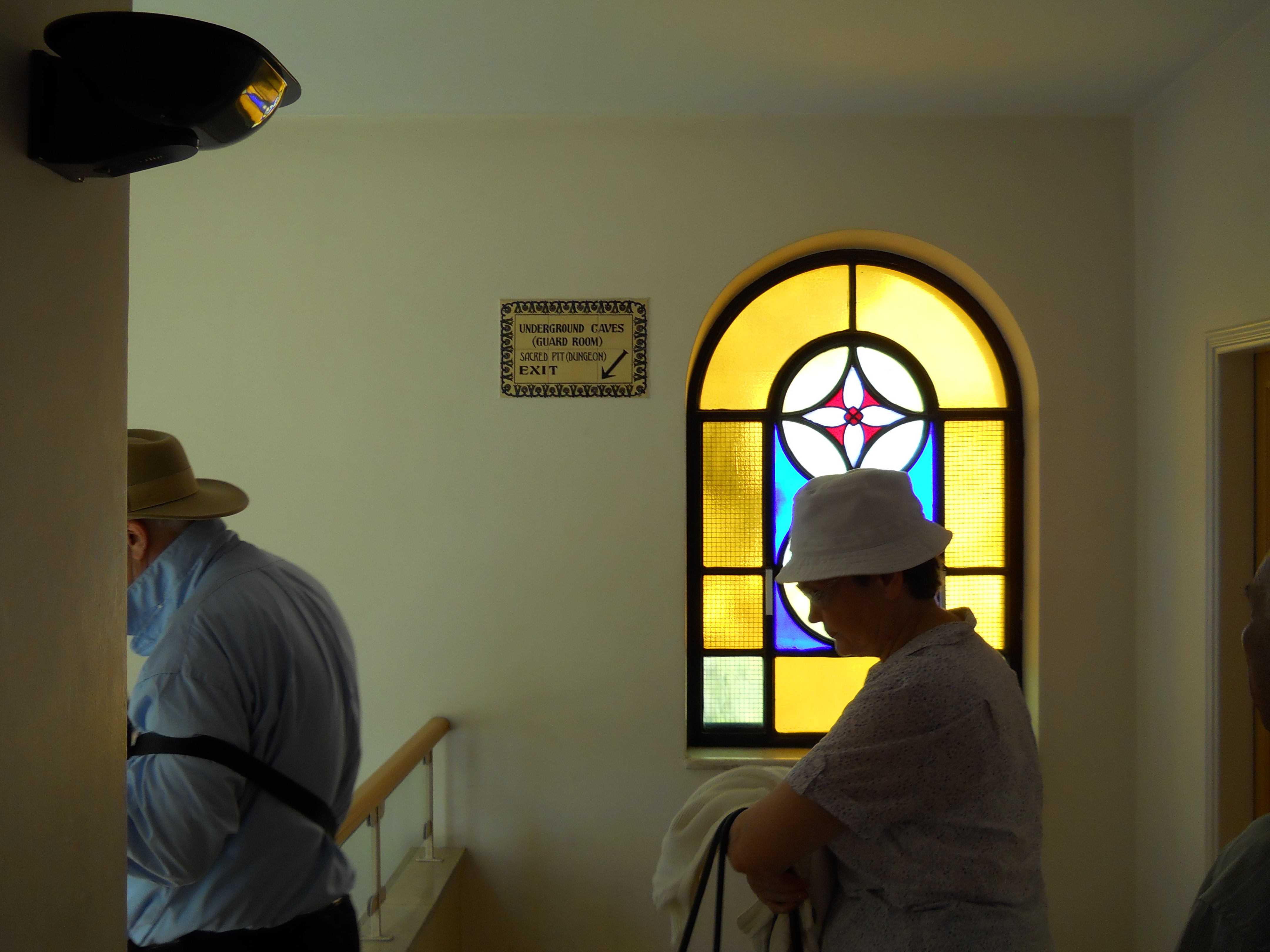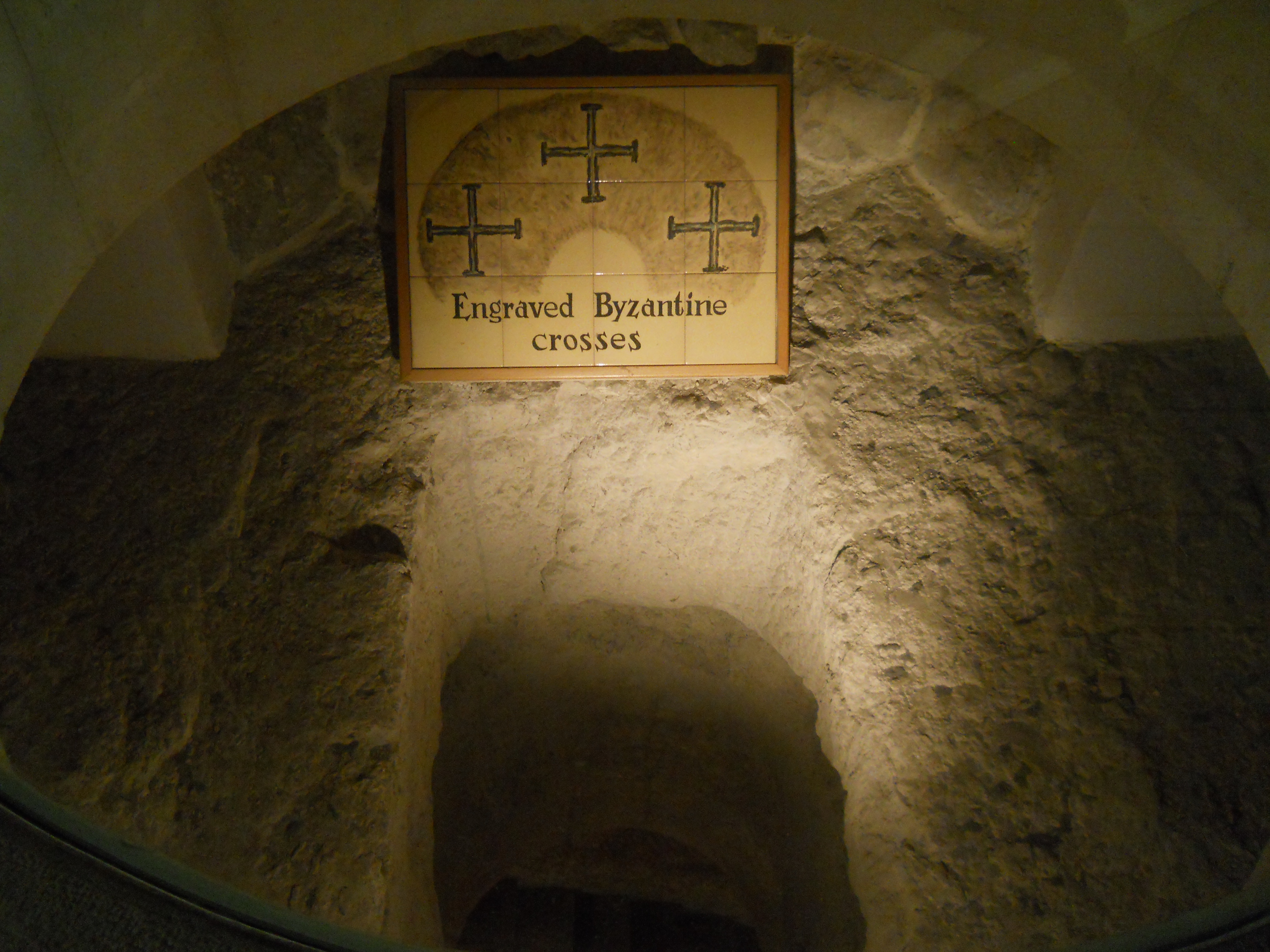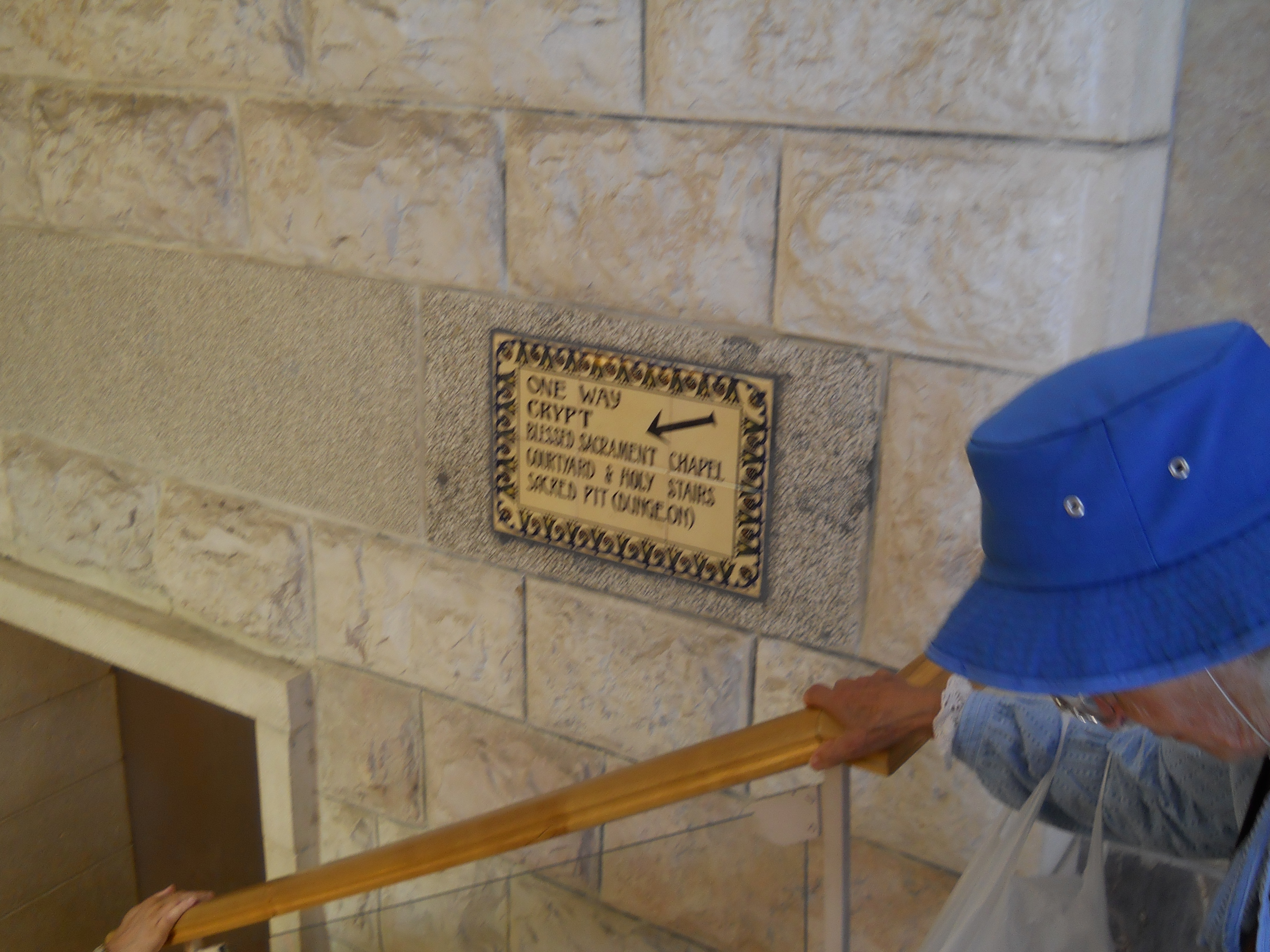 The lower levels of the church incorporate caves from the Byzantine days and a group of earlier crypts that may have been where Jesus was held during his arrest. The area north of the church features ruins of the Byzantine chapel and a staircase down to the Kidron Valley is traditionally cited as the path followed by Jesus down to Gethsemane (Matthew 26, Mark 14).