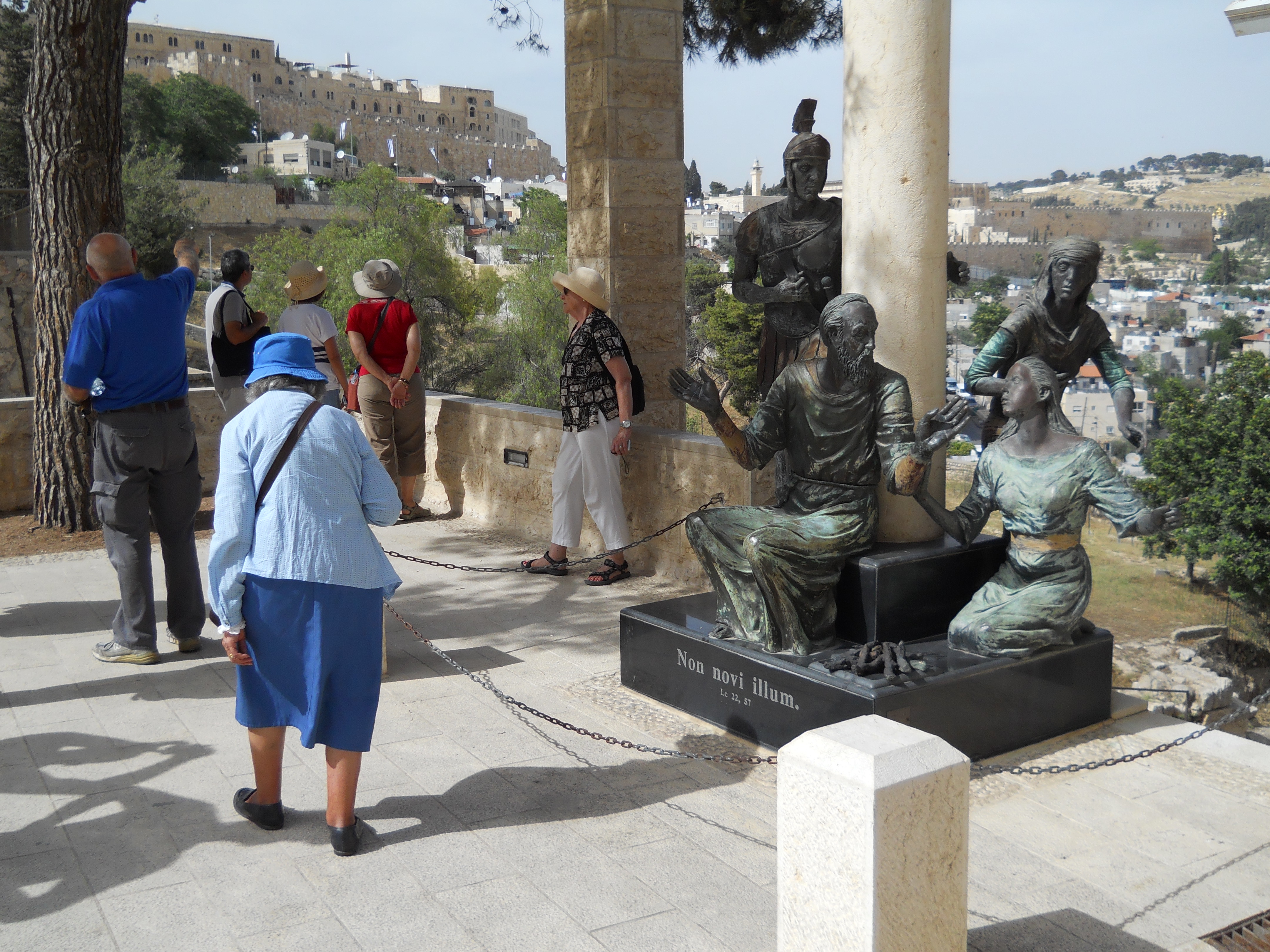 Saint Peter in Gallicantu is a Roman Catholic church on the eastern slope of Mount Zion. It is the traditional location of the palace of Caiaphas, the High Priest who convicted Jesus. Accordingly, it is also noted as the site of the apostle Peter's triple denial of Jesus, marked by a rooster crow (Matthew 26:74). The church that was present when we visited was built in 1931 on the site of a Crusader-era church from 1102 and a Byzantine shrine built in 457.