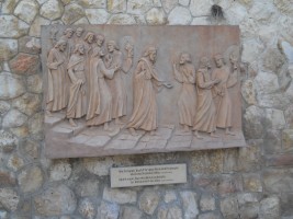 Bas relief of Jesus descending staircase