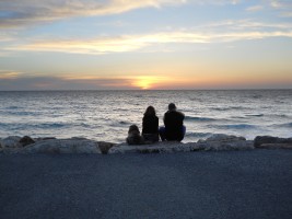 Couple on beach at sunset
