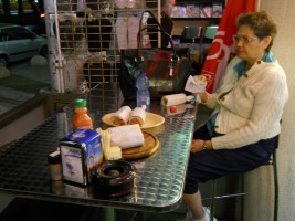 Unfortunately, the body takes longer than 36 hours to fully adjust to an 8-hour time change, so the early arrival didn't do much for us. In addition, we arrived on the sabbath (when alot of things were closed) and there were few dining options clearly visible within a convenient walk of the hotel. Add to that my mother's decidedly unadventurous spirit when in strange urban areas. So, we took a little walk around the neighborhood and ultimately ended up getting hot dogs at a little shop around the corner before turning in for a restless first night in Israel.