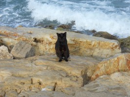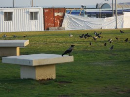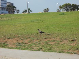 The crows in Israel are hooded crows, which have ash gray bodies with black head, throats, wings, tail and thigh feathers. Although they behave like the all-black North American Crow, for some reason I found them oddly captivating.