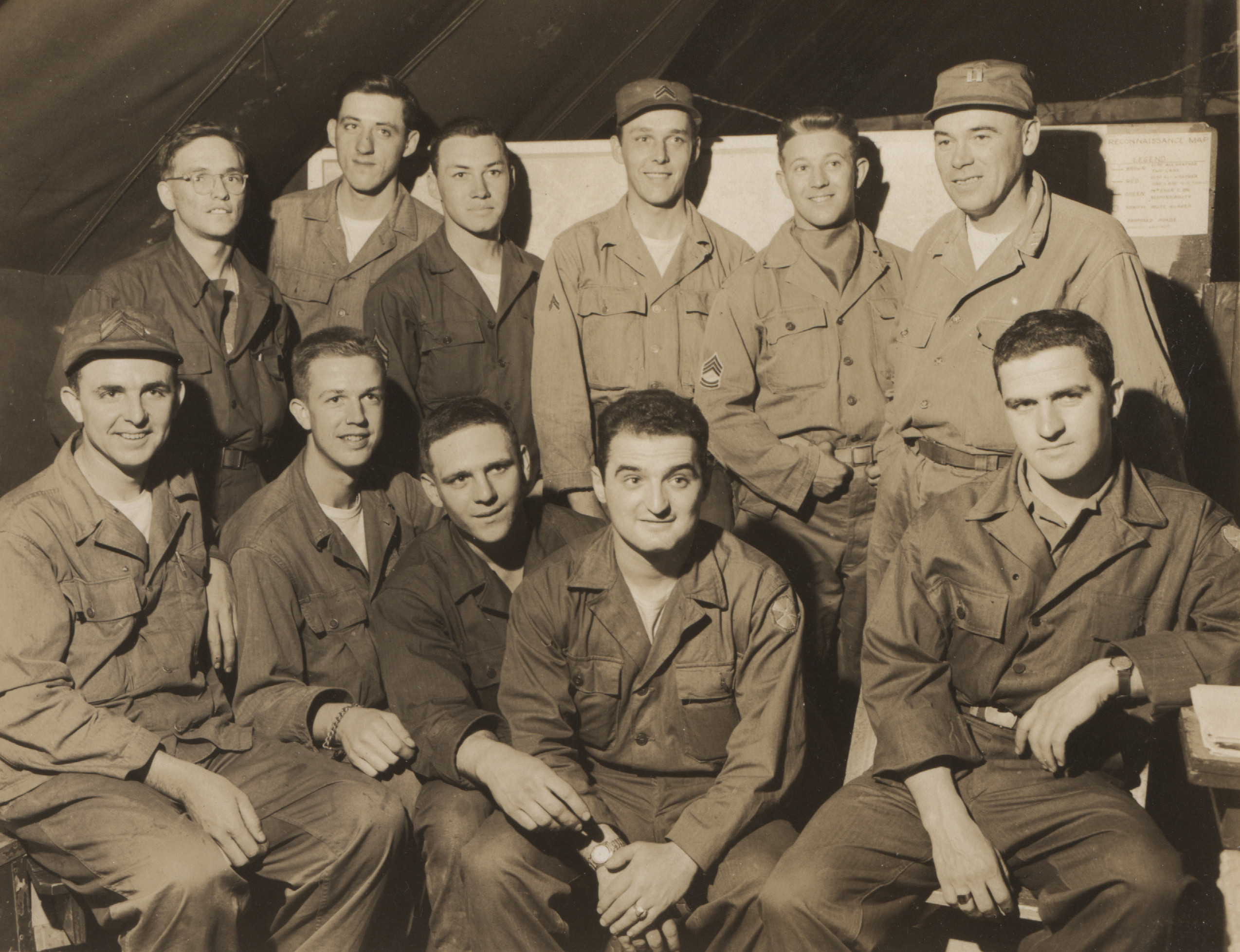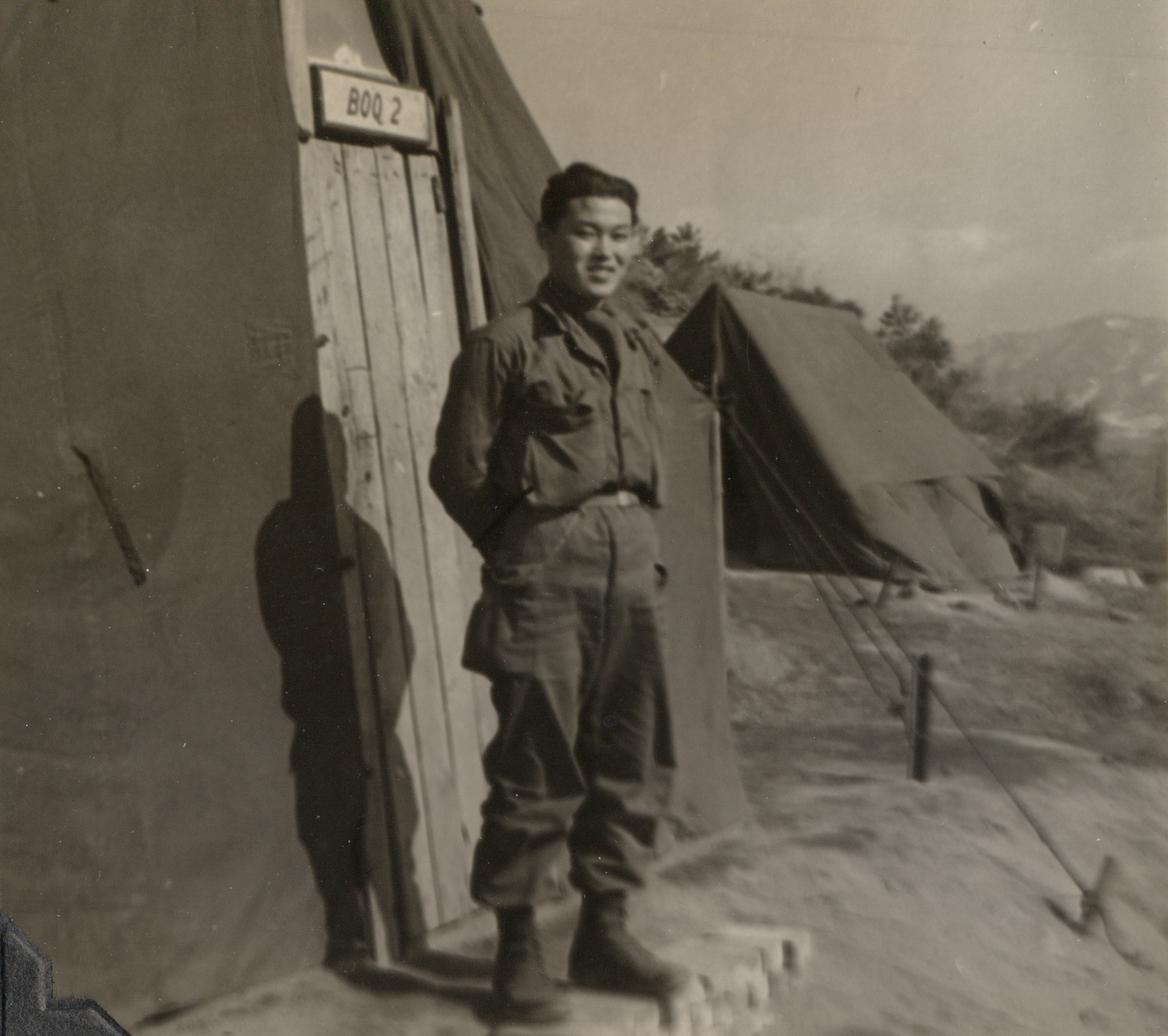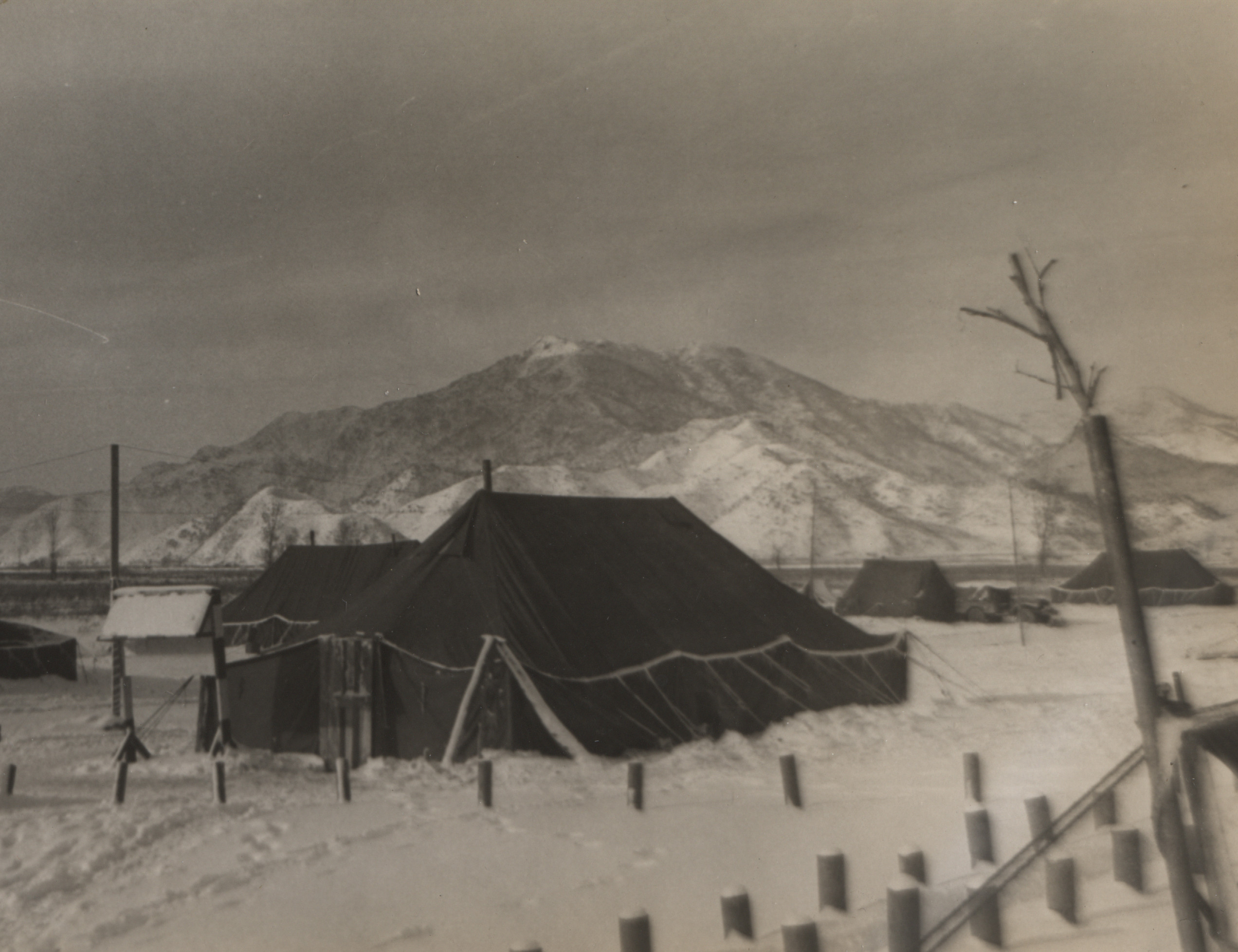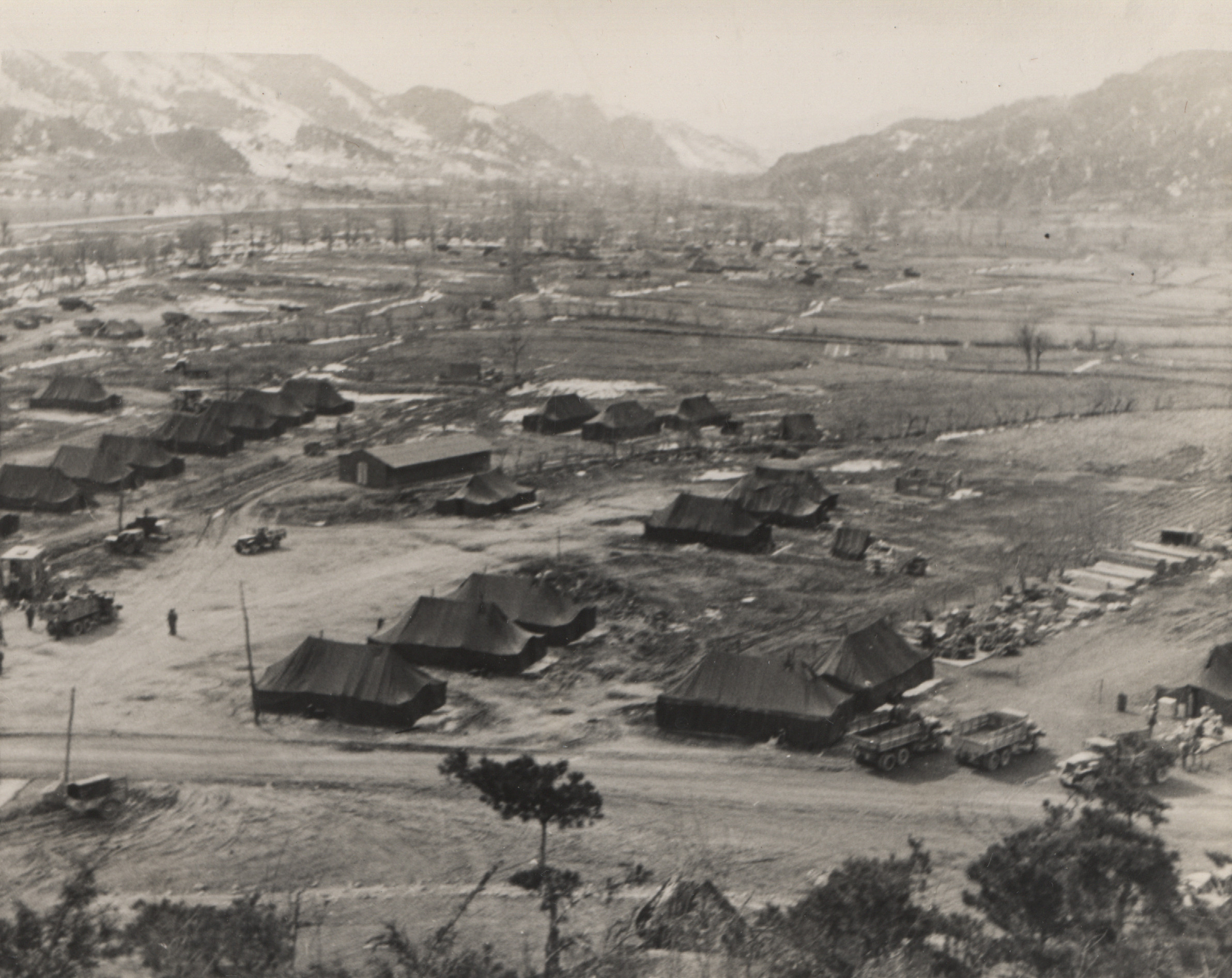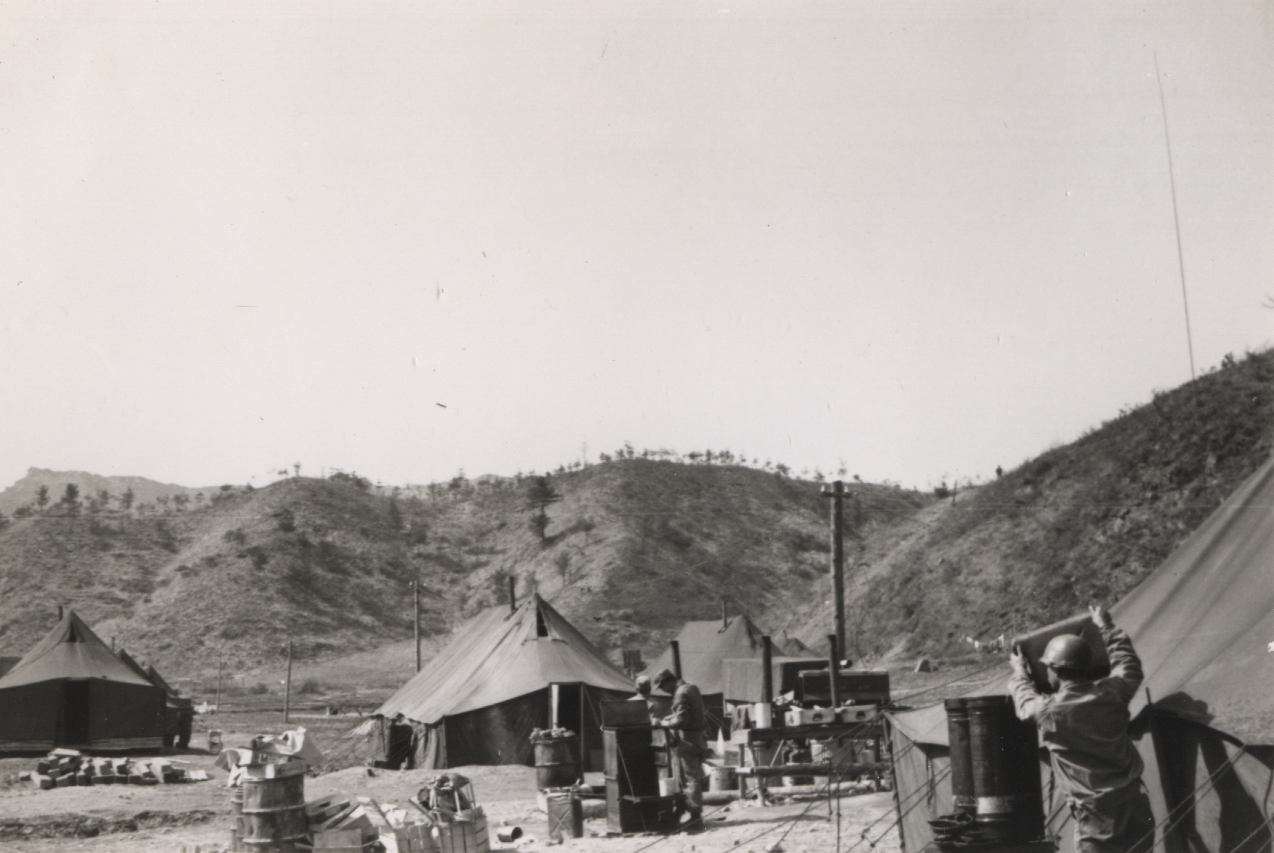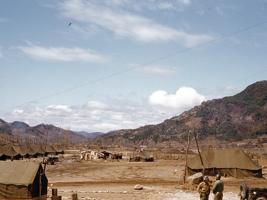 Although the exact location of this camp is unclear, references to Hill 1062 (Papasan) indicate it was in the Kumwhwa Valley of the Hantan River. This is presumably near Triangle Ridge, a V-shaped range of hills in the Kumhwa Valley that included the colloquially named Pike’s Peak, Jane Russell Hill, and Papasan, a 1,062 meter high mountain that dominates the valley. Hill 1062 contained tunnels where the Chinese Army housed their troops, artillery, and supplies. The area was later the site of the Battle of Triangle Hill, a bloody, protracted, and unsuccessful battle of attrition that was a serious blow to both UN morale and capabilities.