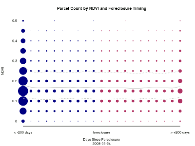Animation of Landsat NDVI Parcel Counts vs Days to/from Foreclosure
