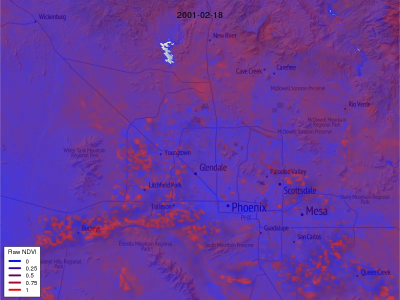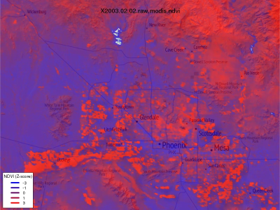 MODIS NDVI displayed as a normalized Z-score to mitigate some of the noise