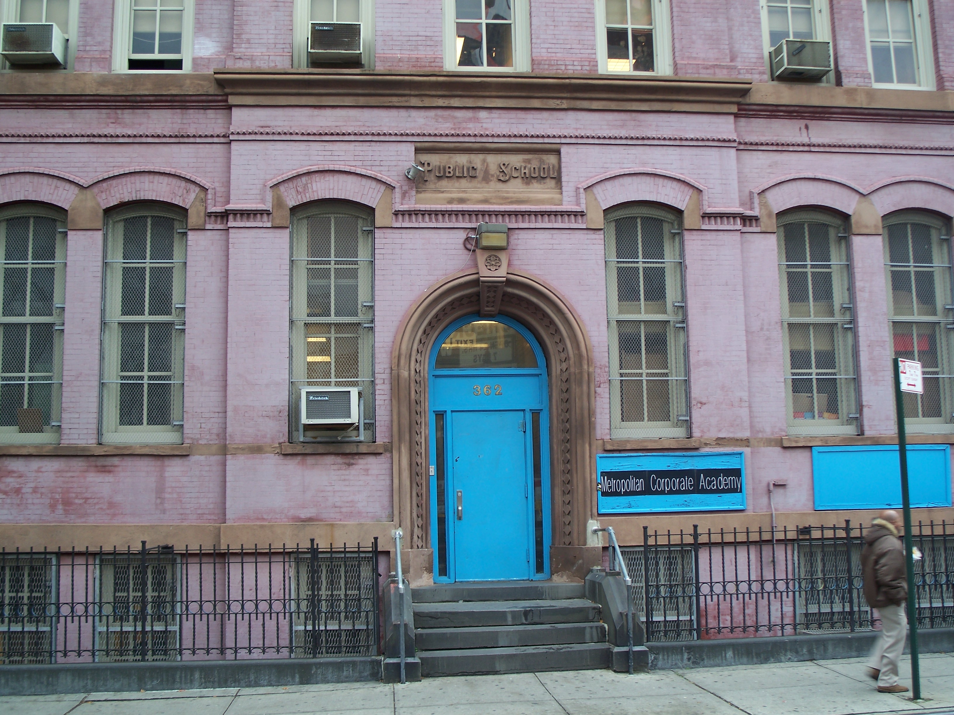 Metropolitan Corporate Academy is a small, alternative high school for business/finance and public services. The attractive old building obviously long predates the high school although I haven't been able to find out anything about its history on the web.