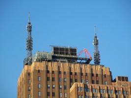 32 Avenue of the Americas was completed in 1933 as AT&T's World Headquarters. This lovely 27-story, 1.15 million-square-foot Art Deco building is perhaps most distinguished by two 150-foot towers on the roof with ringed support structures for a wide variety of antennas and line-of-sight to most of Manhattan and large parts of New Jersey and Long Island. The building reinvented itself for the internet age as The Hub, a co-location and interconnection facility providing access to ISPs, enterprise tenants and wireless providers.