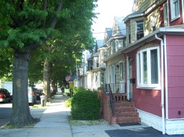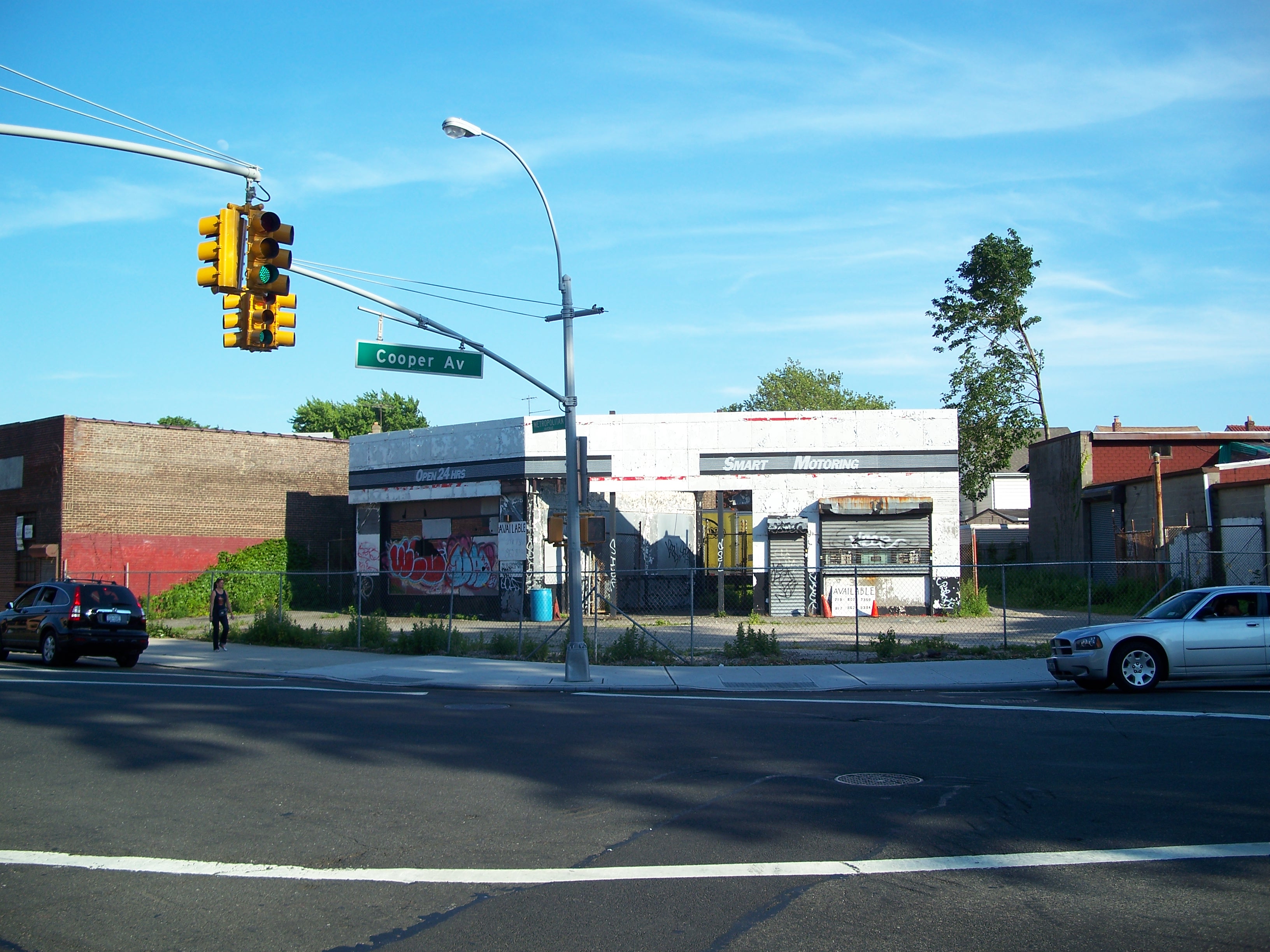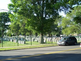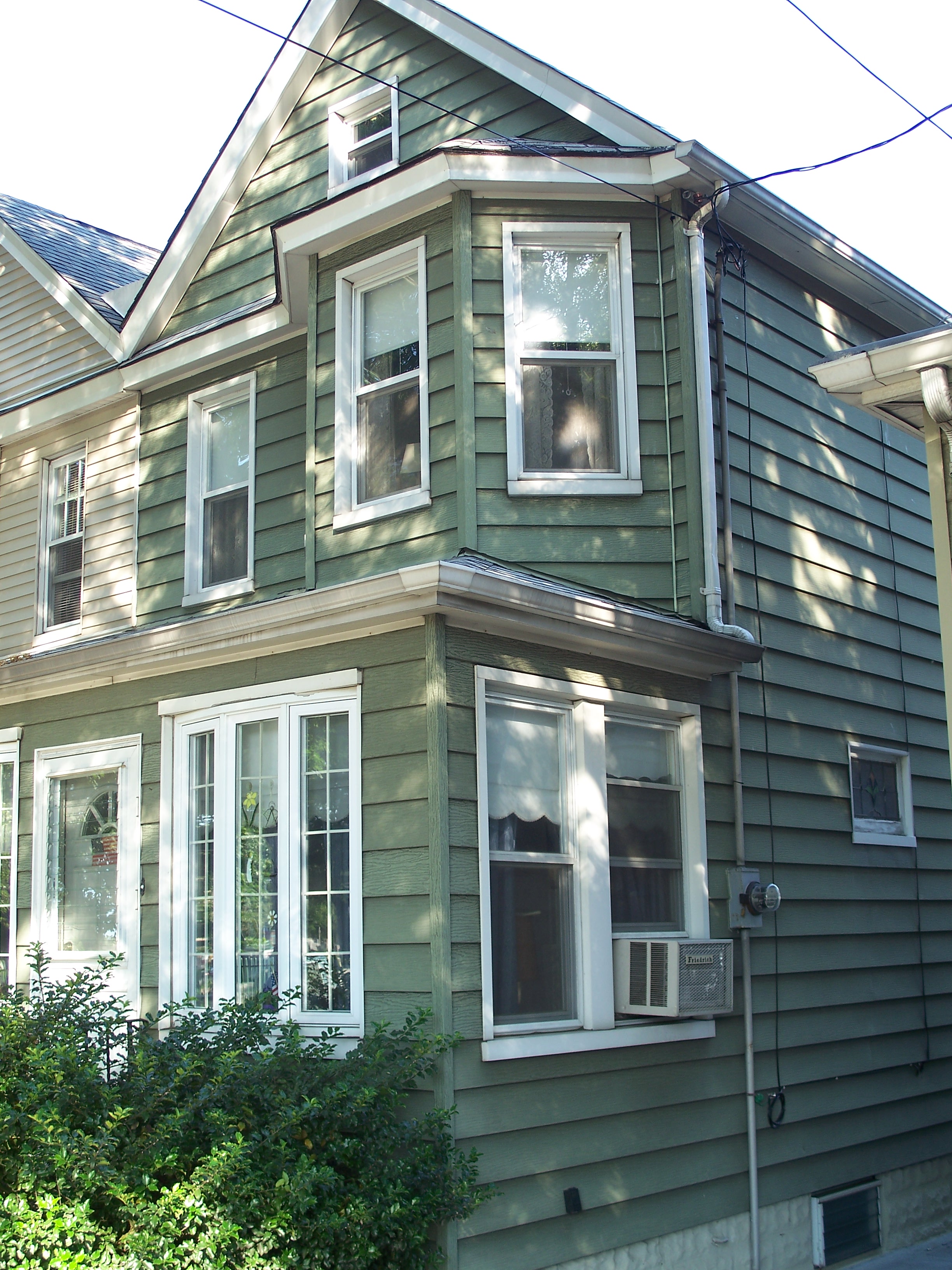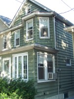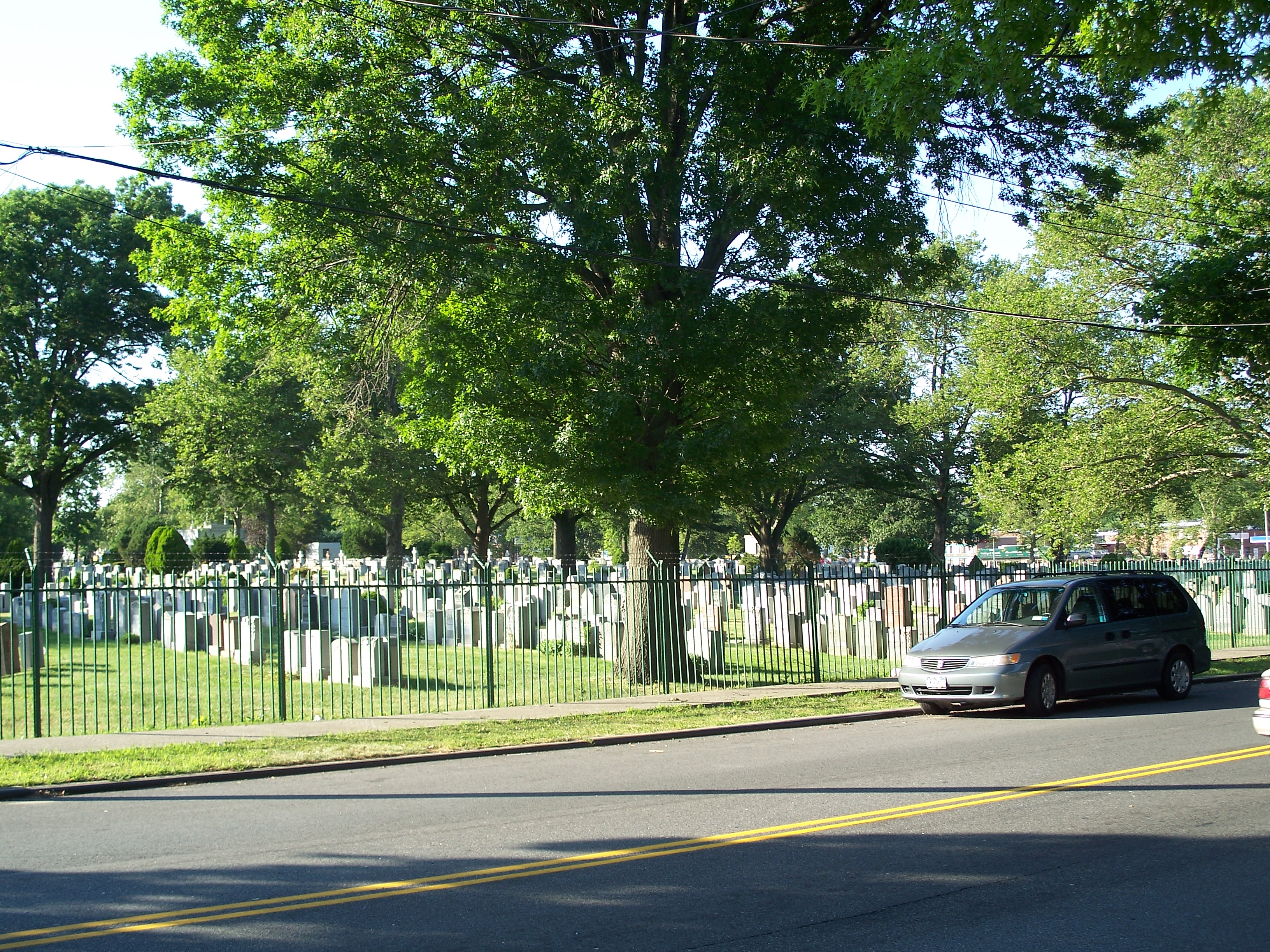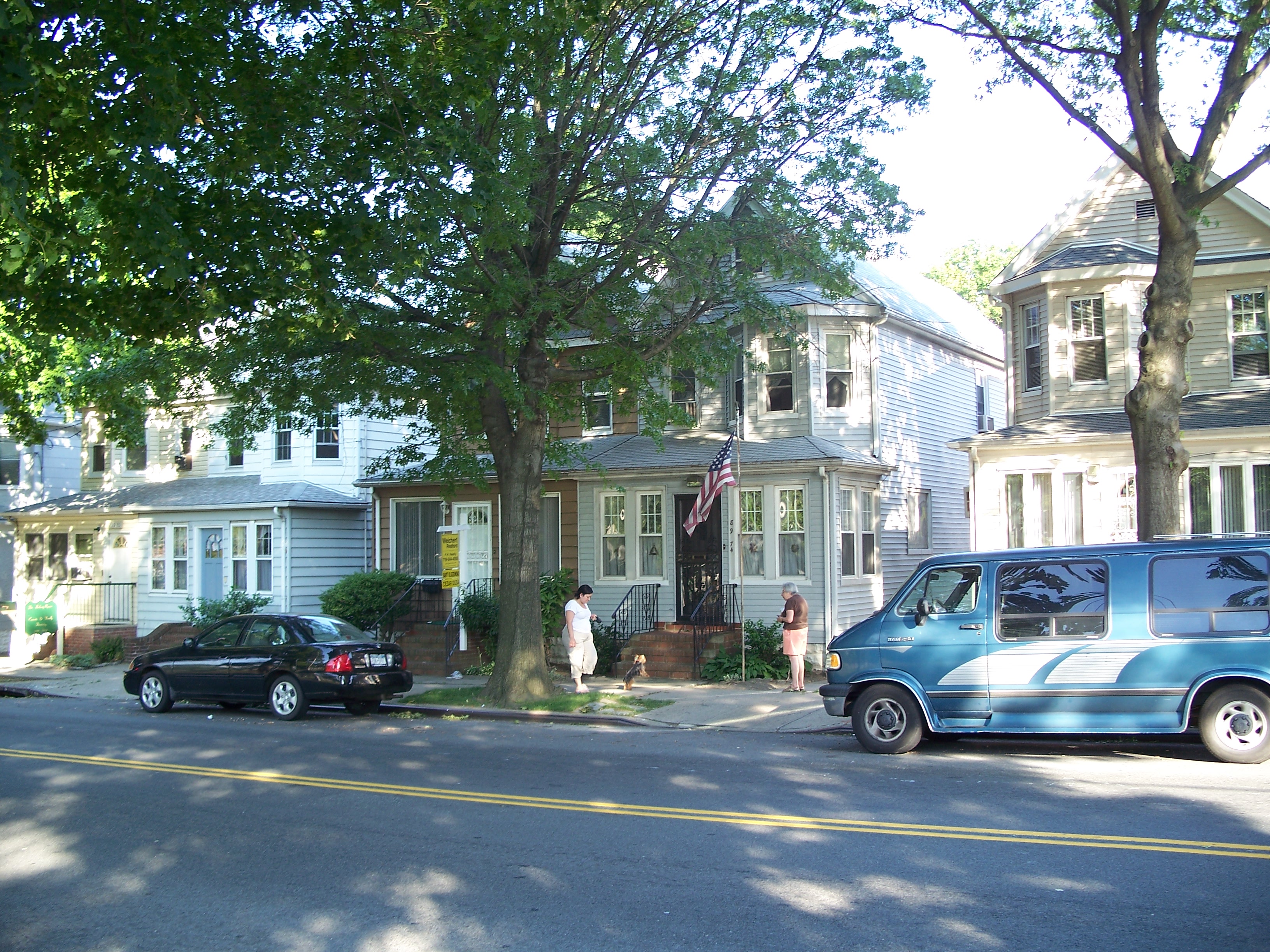 This row house was featured in the opening credits of the 1970s television show All in the Family. The credits begin with Archie and Edith singing "Those Were The Days", followed by an aerial shot of Manhattan, an aerial shot of Queens, and a panning shot down streets of row houses before settling on this otherwise undistinguished working-class abode. The house sits on a busy, tree-lined avenue across from St. John's Cemetery. It's actually a bit tough to photograph nicely since the house faces north (away from the sunlight) and is shaded by trees (which, notably, are mere saplings in the program opening credits).