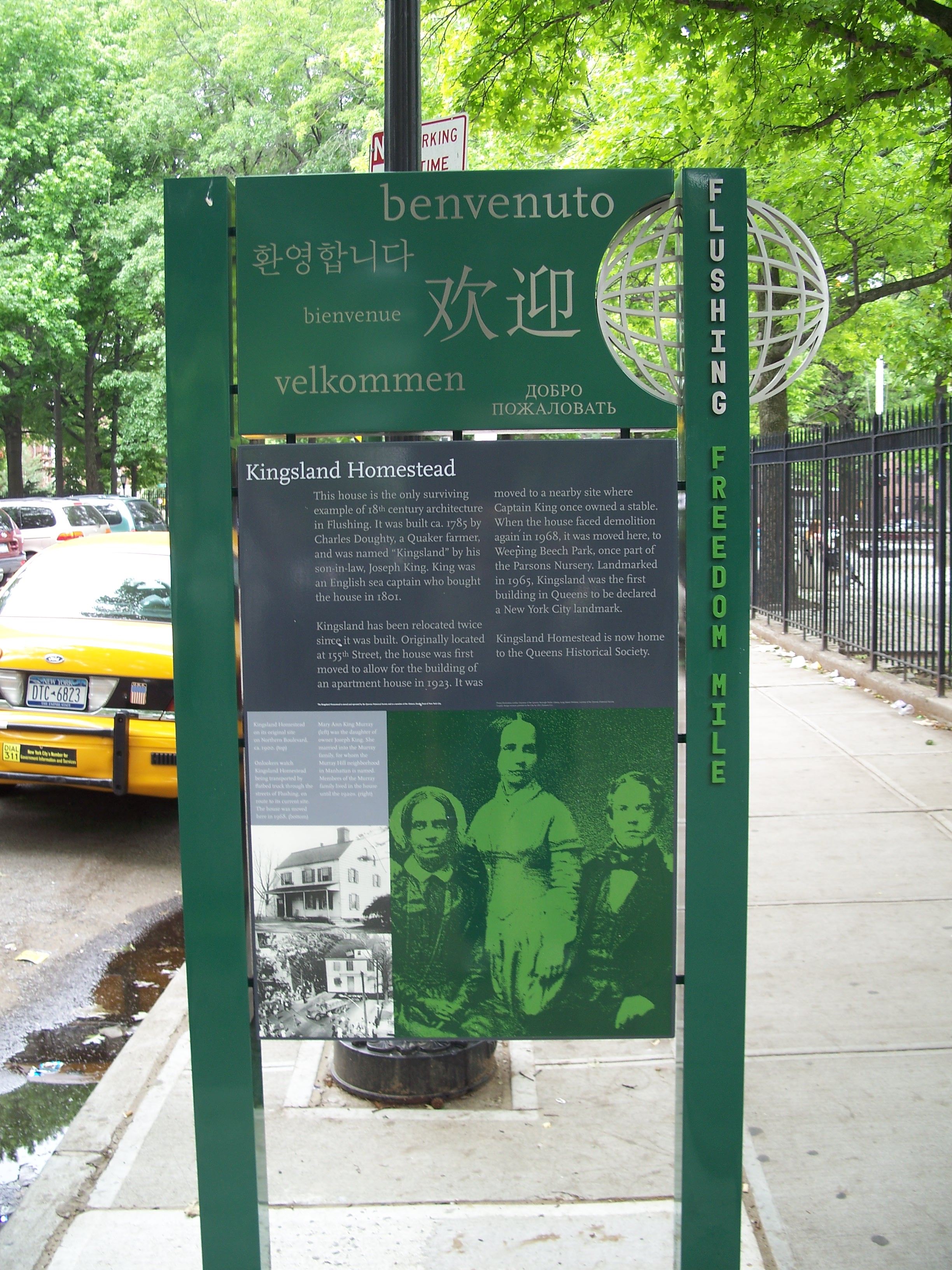 Kingsland has been relocated twice since it was built. Originally located at 155th Street, the house was first moved in 1923 to allow for the building of an apartment house. Landmarked in 1965, it was moved to this location in 1968 to Weeping Beech Park, once part of the Parsons Nursery. Kingsland was the first building in Queens to be declared a NYC landmark and is currently home to the Queens Historical Society.