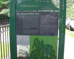 The weeping beech tree that once stood in this park was planted in 1847 by Samuel Bowne Parsons, a Flushing nursery owner, and was the first of its species to grow in this country. Parsons, who provided Manhattan's Central Park with many of its original trees, brought the Weeping Beech cultivar to America from Belgium. The tree was given landmark status in 1966 and was the first living landmark in New York City. Although the original tree died in 1998, its offspring can be found in Flushing and around the country.