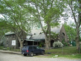 This building was constructed in 1924 (from gneiss quarried on the island) as a chapel for Metropolitan Hospital. The chapel had an attached rectory for the hospital chaplain. The building was abandoned in 1955 when the hospital moved to Manhattan. With the redevelopment of the island in 1975, it became home to the Redeemed Christian Church of God, later becoming Dayspring Church. (reference)