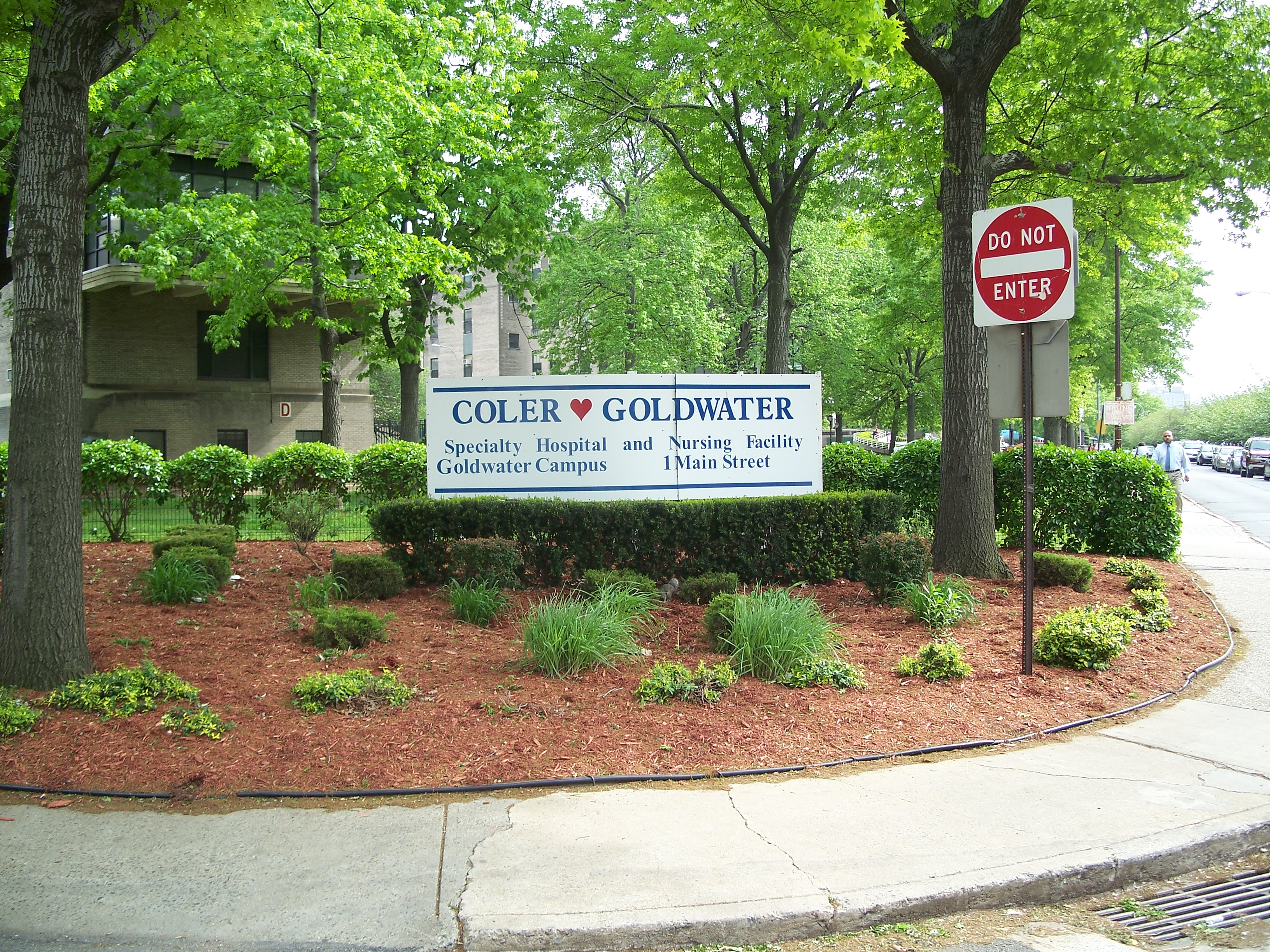 The hospital was later renamed in honor of New York City Hospitals Commissioner, Dr. S. S. Goldwater, who was responsible for the hospital complex master plan. Only three of Goldwater's seven proposed buildings were ever built, including a (now-demolished) Nurse's Residence that opened 1938 just north of the current subway station and Coler Hospital on the north end of the island that opened in 1952. (reference)
