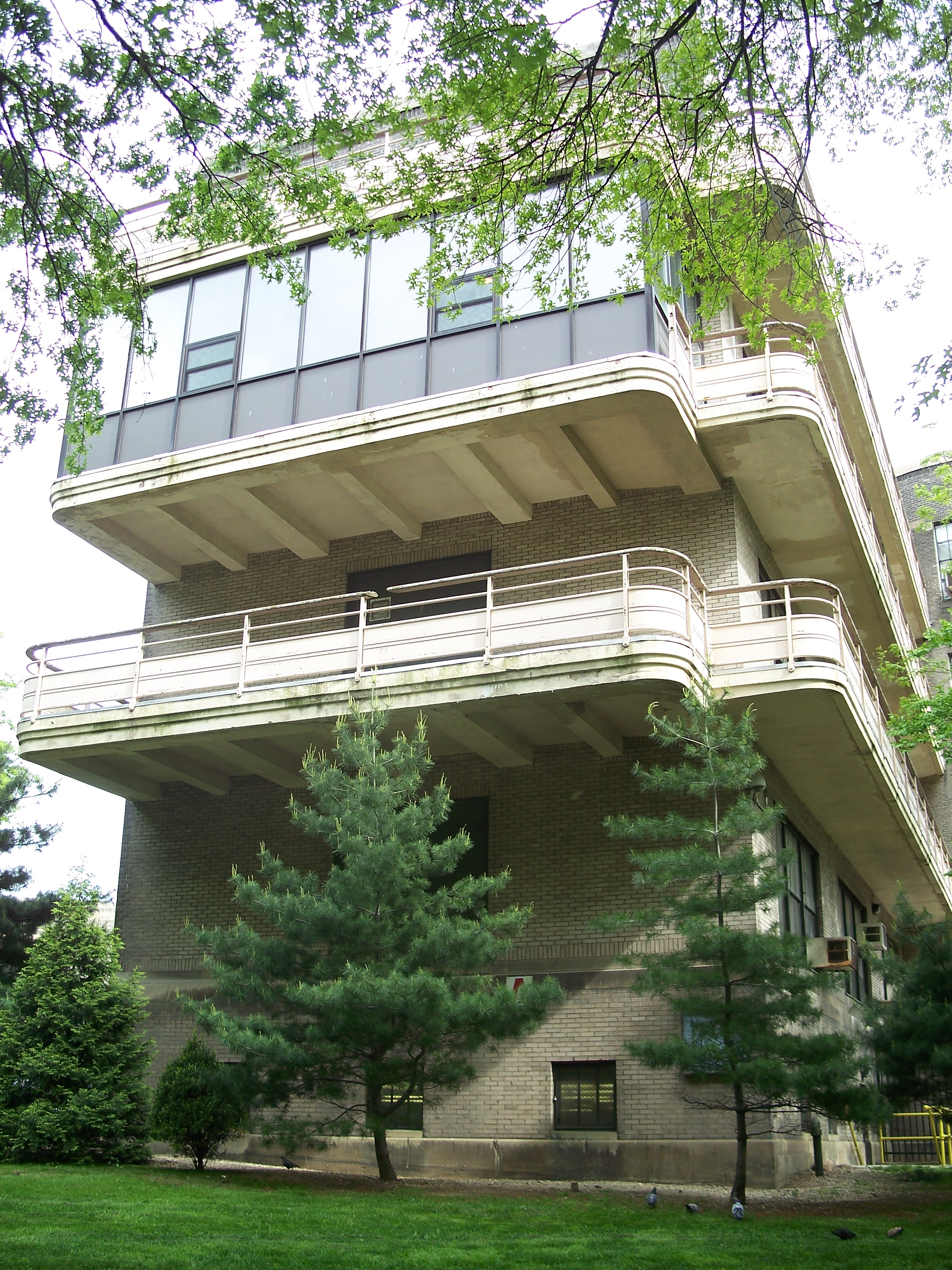 This hospital sits on the site of a massive prison building that was built beginning in 1832, with later additions of wings and a workhouse. Problems with overcrowding and scandals began in the early 1900's, culminating in the relocation of inmates to new facilities on Rikers Island in 1934 and demolition of this facility in 1935. (reference)