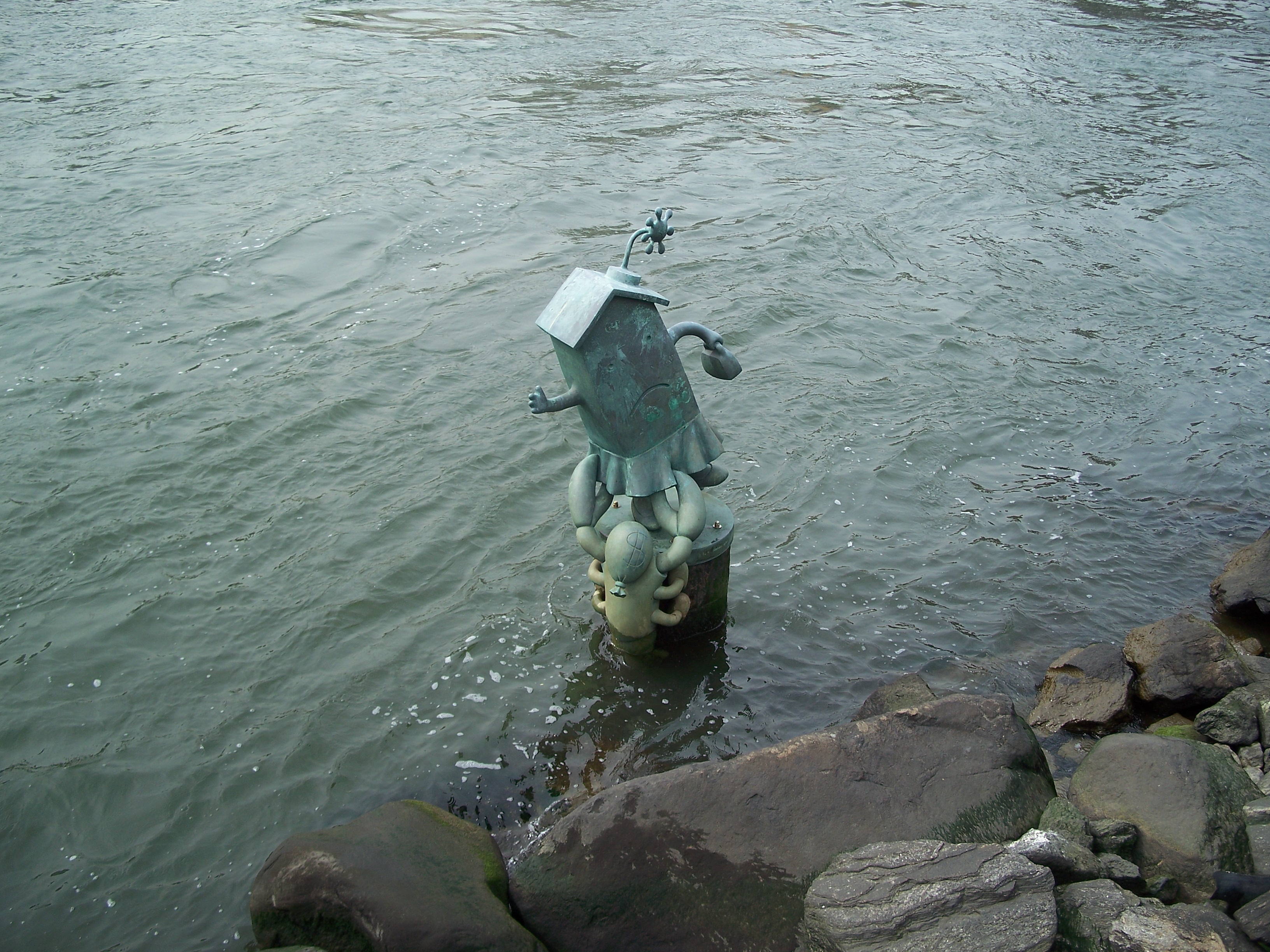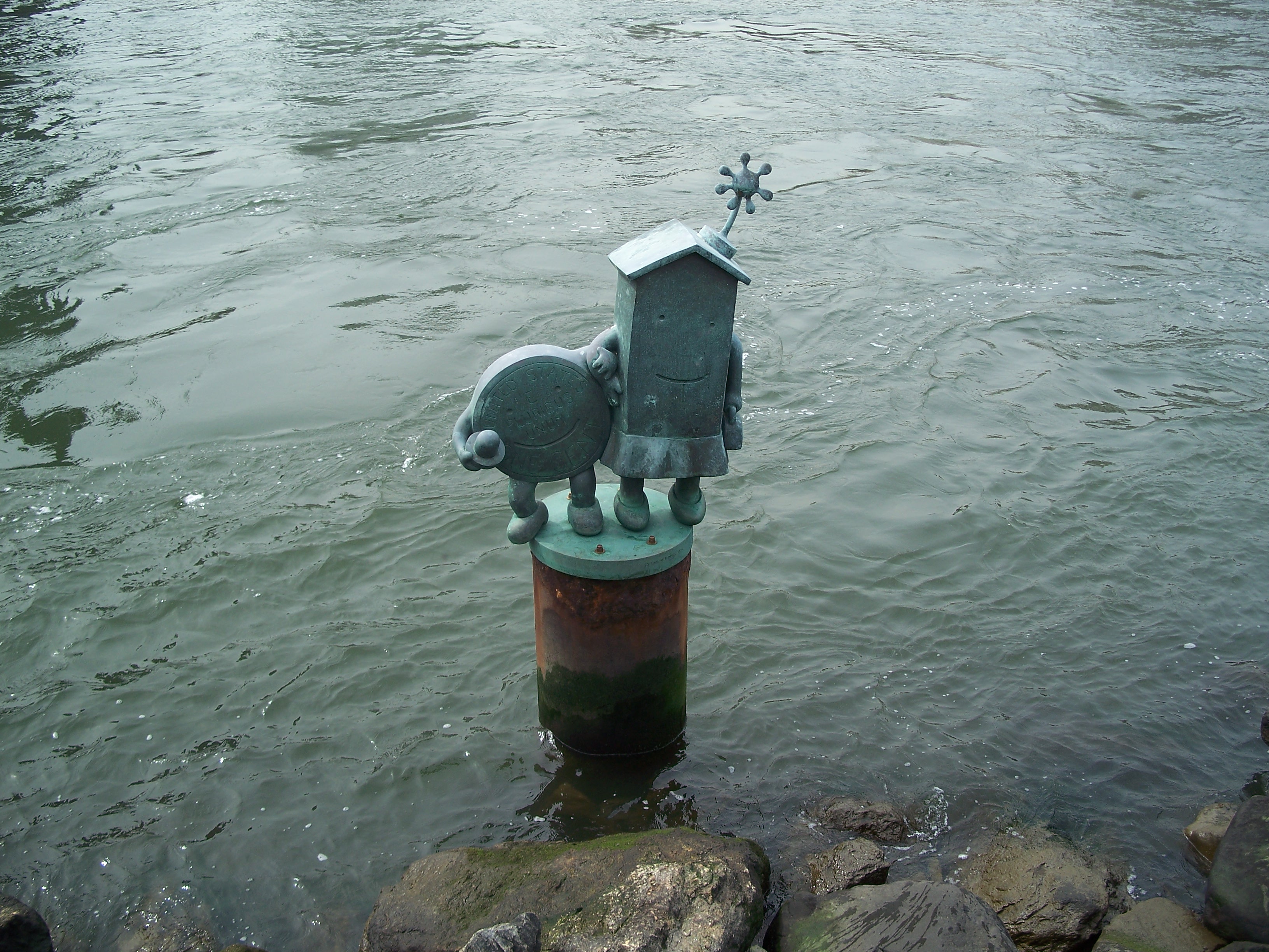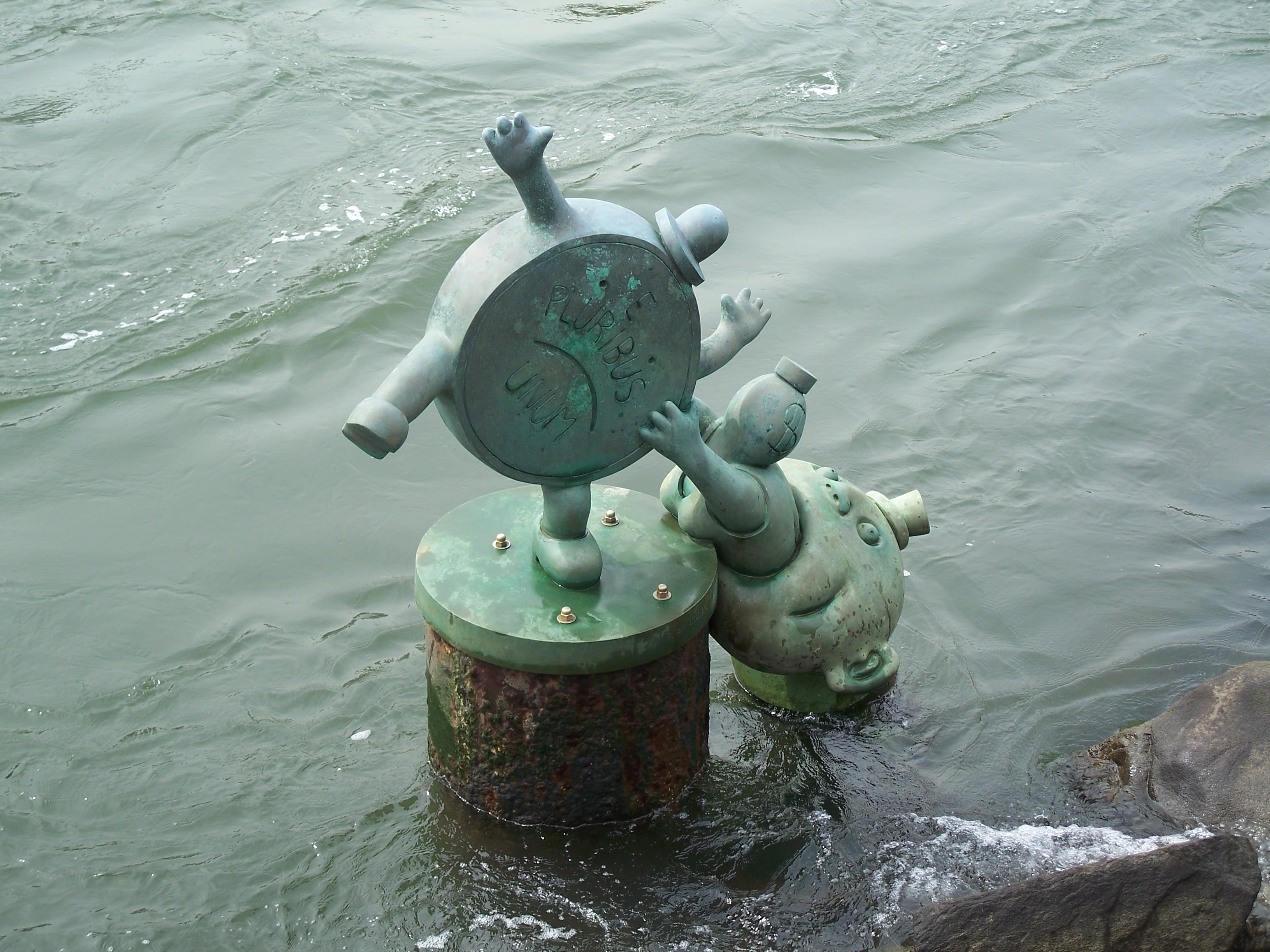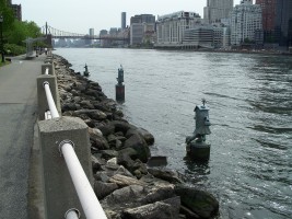 Tom Otterness (b. 1952) is a well-known sculptor of public art in NYC, distinguished by a cartoonish and cheerful style often consisting of pudgy blobs and depicting the struggles of the "little guy" in a wondrous and difficult city. The Marriage of Money and Real Estate on the northwest riverfront is especially clever with characters that appear to be being devoured by symbolic sea creatures depending on the level of the tide.