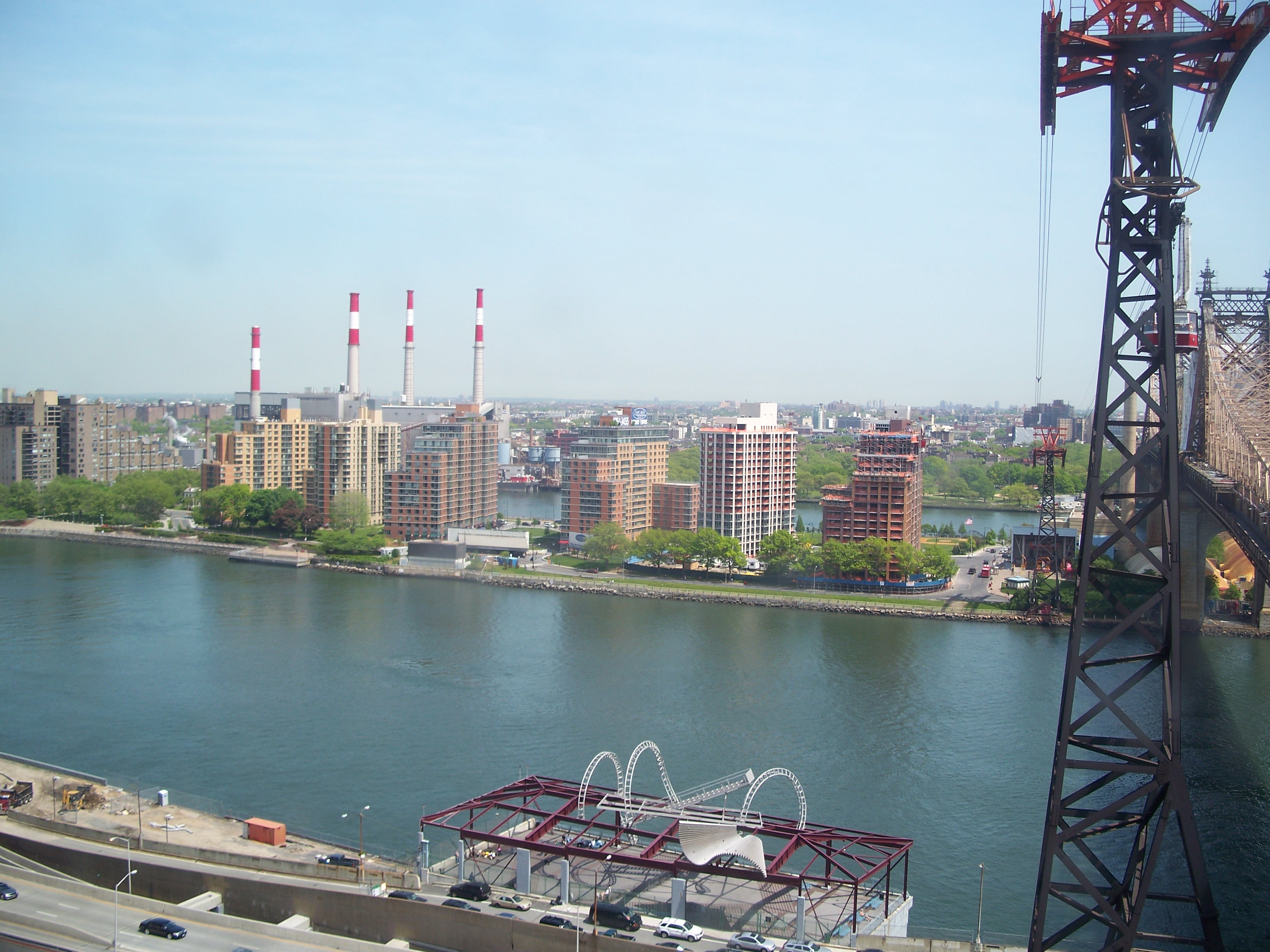The Roosevelt Island Tramway was built in 1976 as a temporary means for shuttling commuters from the then-new Roosevelt Island development into Manhattan. It was intended as a temporary measure until the completion of the subway line, but extensive delays in the construction of the tunnel coupled with great popularity of the tram among island residents has kept it around.