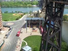 The tram was designed by Prentice & Chan and Ohlhausen and built by the Swiss company Vonroll. It is the only commuter cable car in North America. Cars can hold a maximum of 125 people and the 3,100-foot ride takes about four and a half minutes. The car rises to a maximum height of 250 feet, giving lovely views of both Roosevelt Island and Manhattan. (reference)