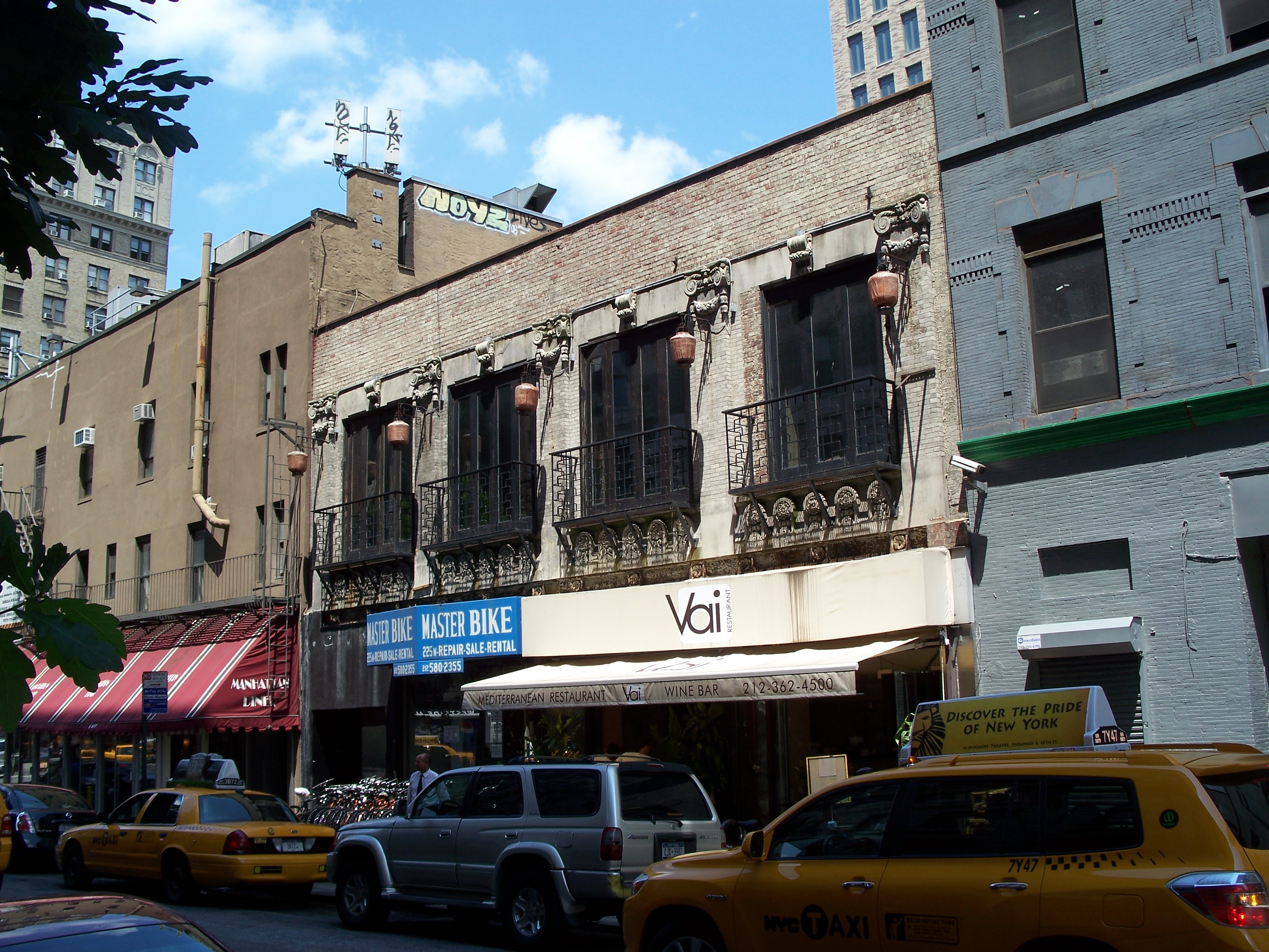 This building wrapped around a corner building, giving it entrances on both Broadway and 77th Street. City building records list it as being constructed in 1926 and it is not listed as a stable or garage address in the 1907 or 1926 City Directories. Given its architecture and its frontage on Broadway (away from the rabble on Amsterdam), it was likely unassociated with the other automotive businesses further to the east.