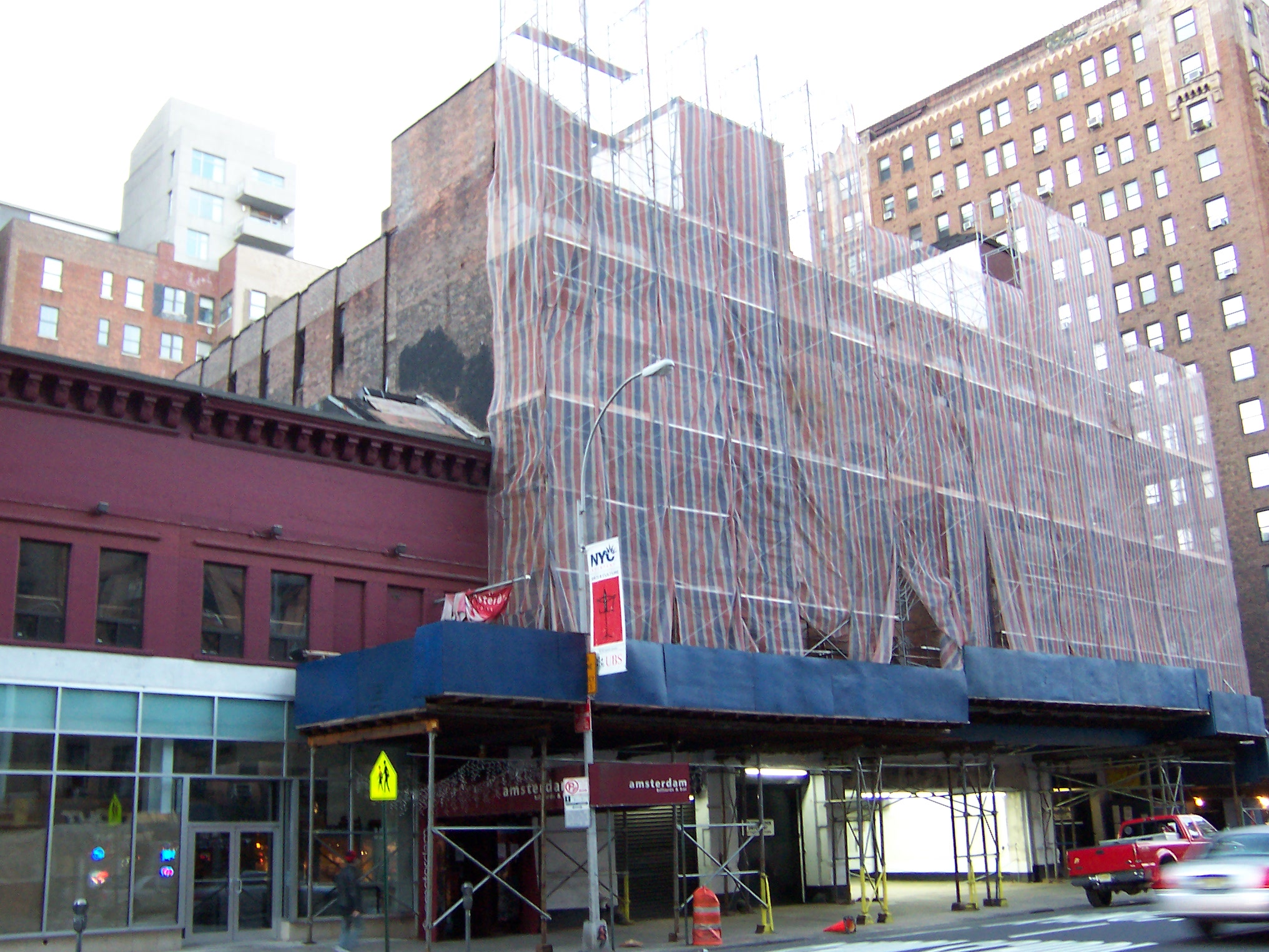 The layout was notable in that it wrapped around the buildings on the corner of 76th street, giving it entrances on 76th Street, 77th Street and Amsterdam. In a common developer tactic, the final owner stripped much of the historic detailing while the building was under consideration for landmark status and, thus, removing the reason for protecting it (Lueck 2006). It was demolished in 2007 and replaced by The Harrison, a pleasant but conventional luxury dormitory for rich people.