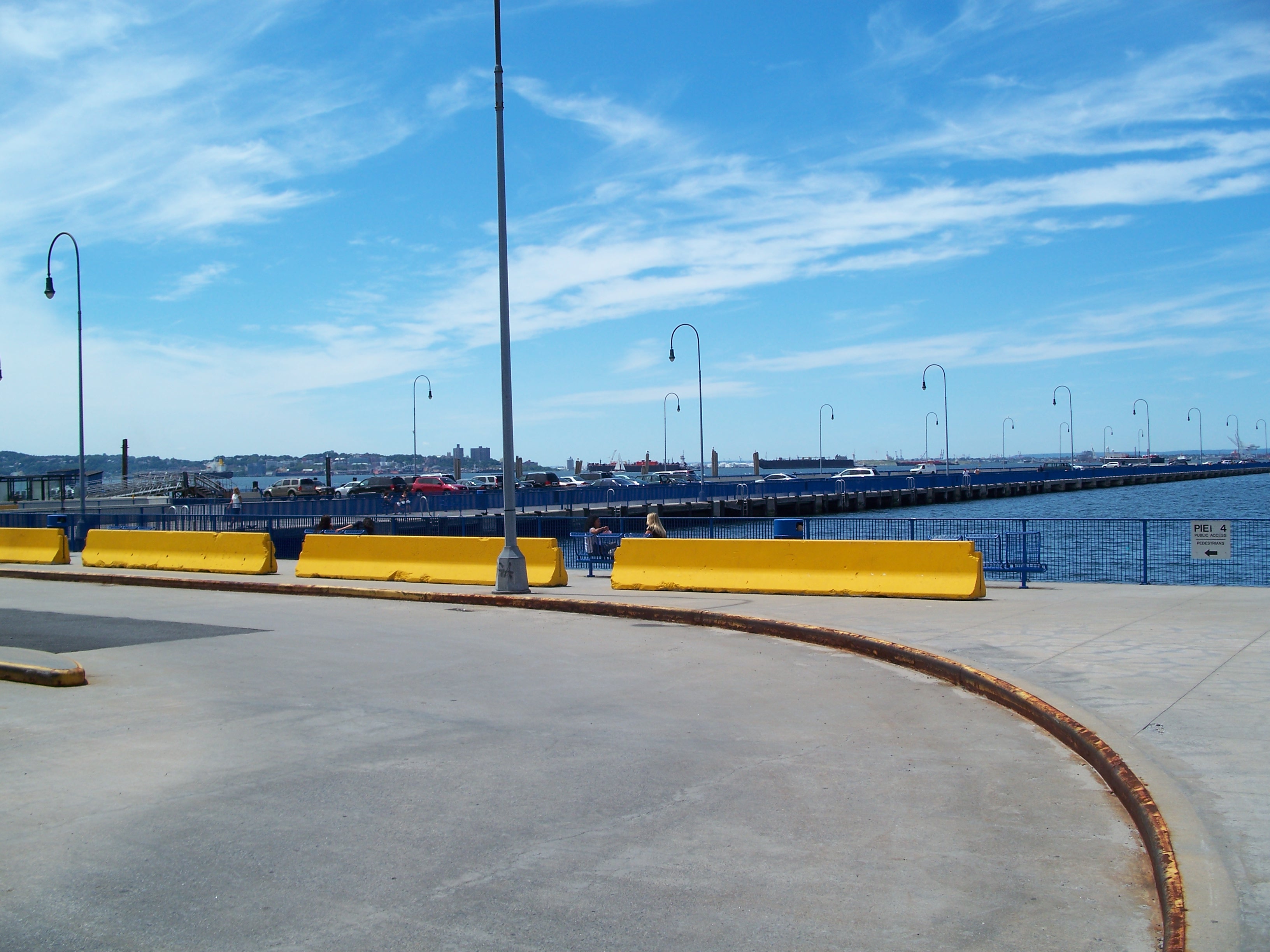 Part of open pier 1 and all of warehouse piers 2 and 3 have been demolished. Pier 4 was rebuilt with automobile parking to support commuter ferry service to Manhattan by NY Water Taxi.