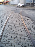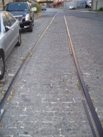 Buried Bush Terminal RR siding off 2nd Ave at 32nd St
