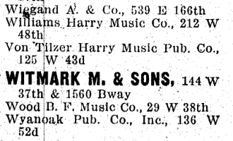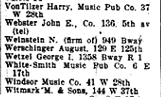 - 37 West 28th: Harry VonTilzer Music Pub Co.