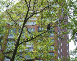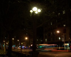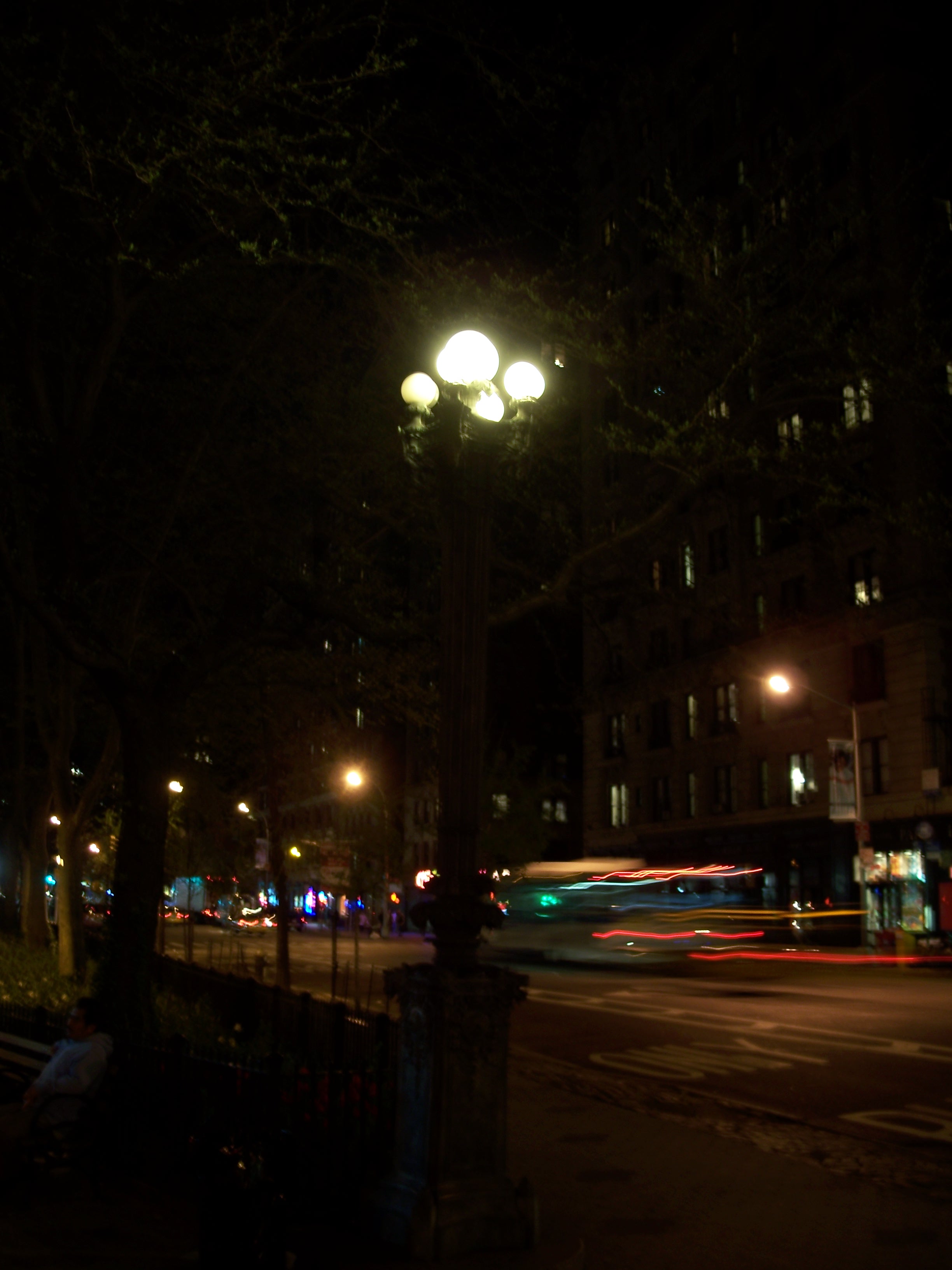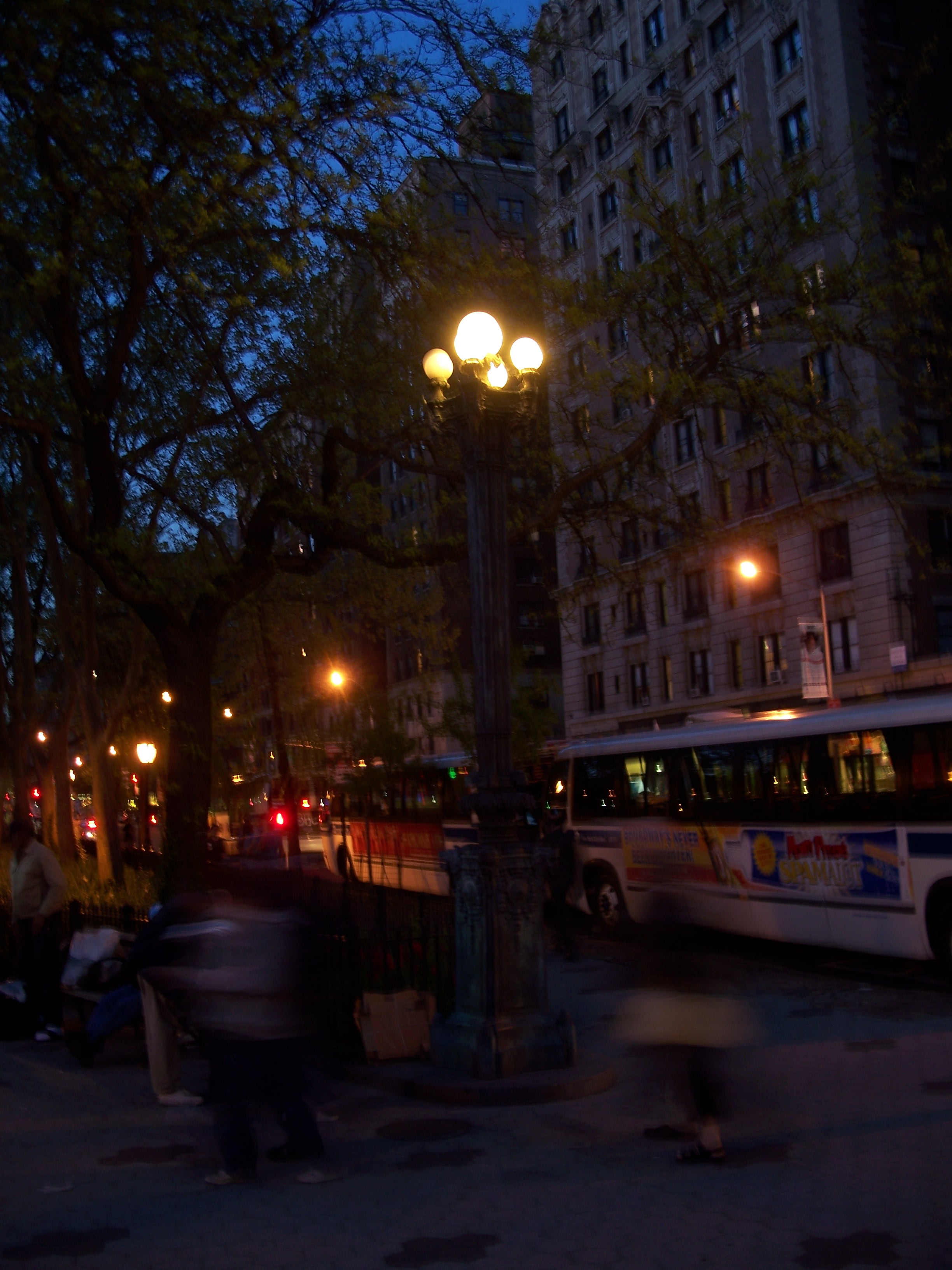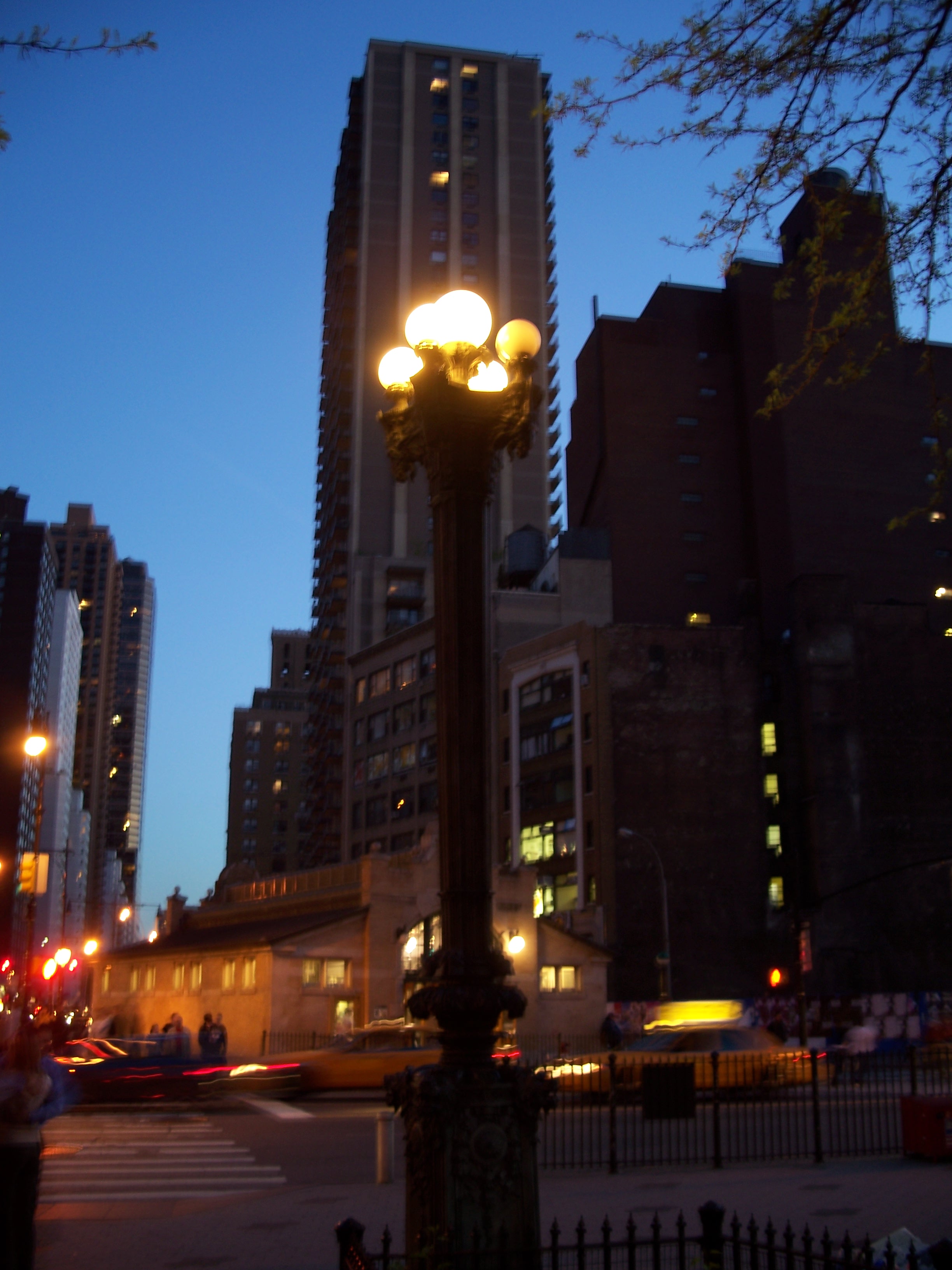 The lamppost near the corner of Amsterdam and 72nd St. is a luminaire, an ornate 5-lamp structure that was one of a pair built between 1913 and 1935 that originally flanked the staircase to the Fireman's Memorial on Riverside Drive at 100th Street. The poles were vandalized in the 1970s and the survivor was placed in storage. The lamp was restored and placed here in the fall of 2004. (reference)