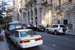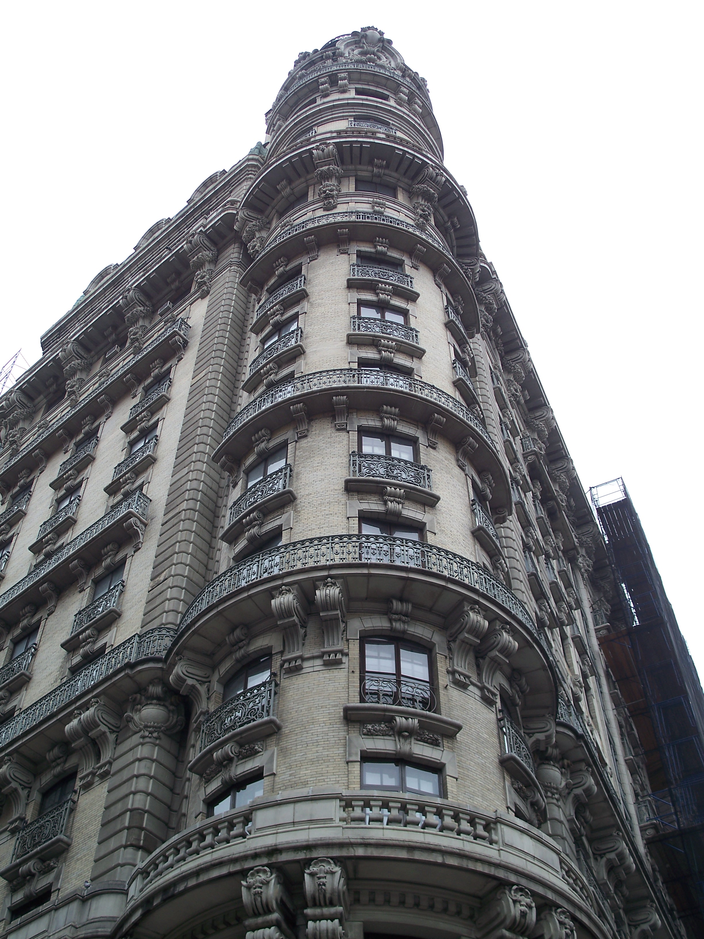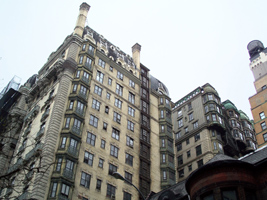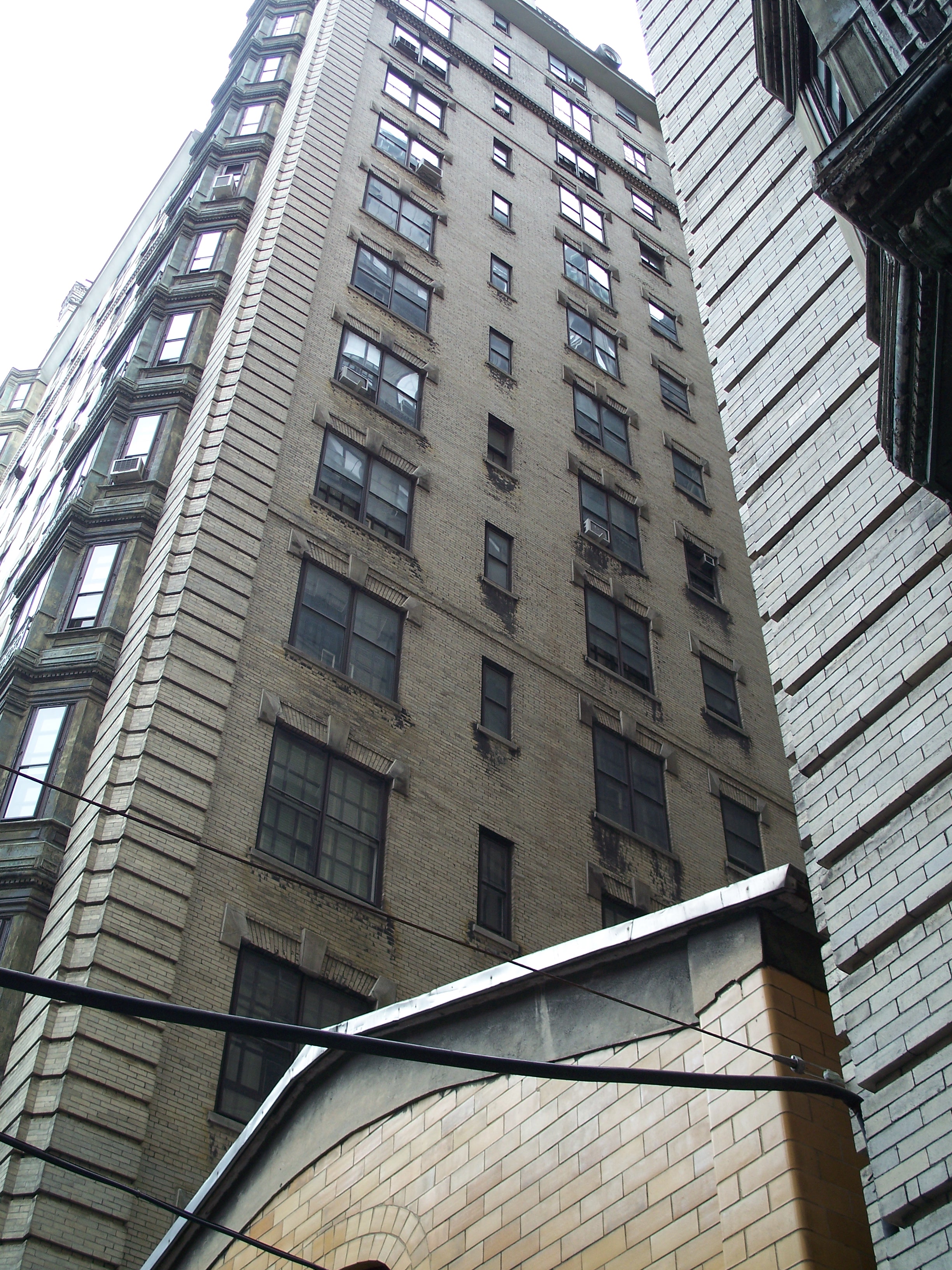 By the 1950s, most of the apartments had been subdivided into studios and one-bedroom apartments. The state of the building reflected the general decline of the city, leading to serious consideration of demolition in the late 1960s. One of the sequence of predatory owners removed and sold much of the copper ornamentation, including the rooftop lanterns. The basement bathhouse became home to the Continental Baths (a gay sex club) and Plato's Retreat (a club for heterosexual "swinger" couples). The first floor became the home of The American Musical and Dramatic Academy, a musical theatre training conservatory. When I attended AMDA from in the early 1990s, I lived for a semester in one of the few student apartments the school maintained in the building.