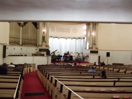 This church building was designed by George M. Kaiser (who also designed the Apollo Theatre) and was dedicated in 1894. A balcony was added in 1903, raising the seating capacity to 1,000 around the time the new IRT subway stop opened just steps from its front door. The building serves a conservative, evangelical congregation that was founded in 1760 and has an association with the General Association of Regular Baptist Churches. The building is also used as a rental by other congregations.